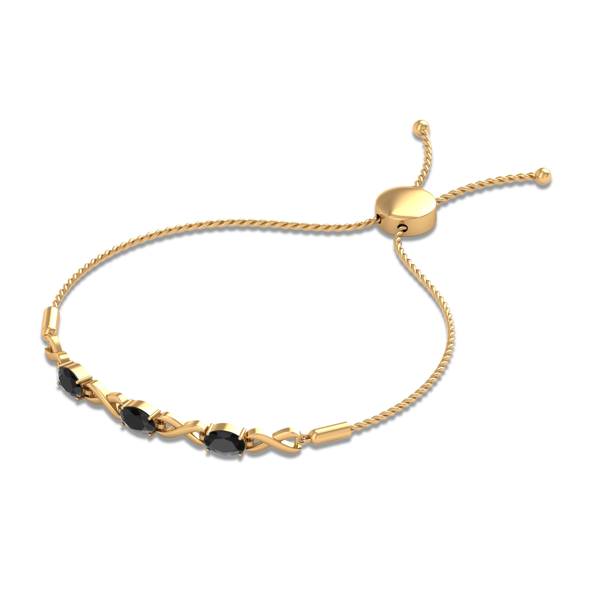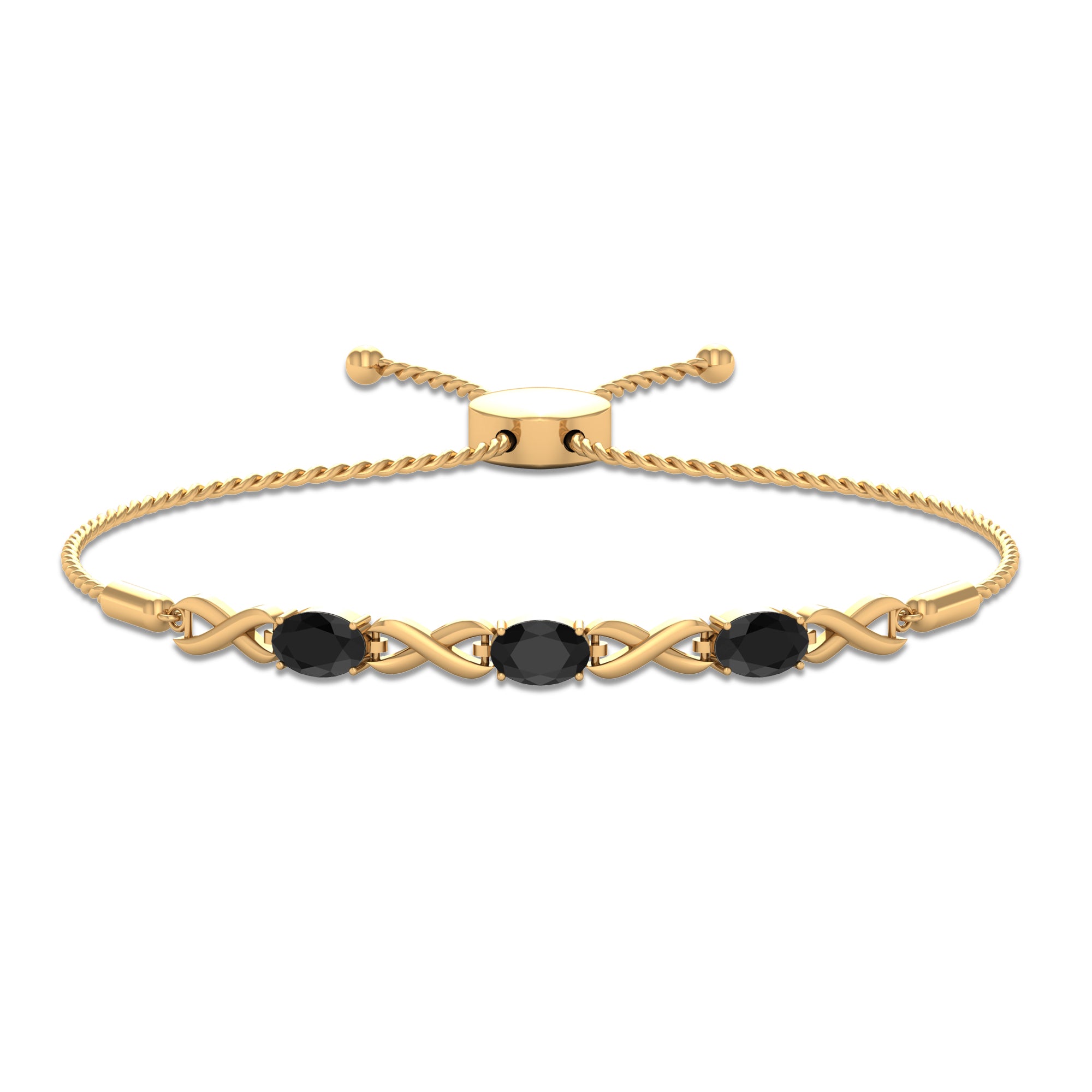 Montrez votre amour et votre affection le jour de la Saint-Valentin avec ce superbe bracelet Bolo à maillons infinis fabriqué en or massif. Orné d'une pierre précieuse d'onyx noir de taille ovale sertie à griffes, ce bracelet alterne entre la pierre précieuse et un symbole de l'infini en or. C'est un moyen idéal pour qu'elle se sente spéciale et aimée.