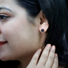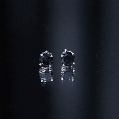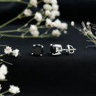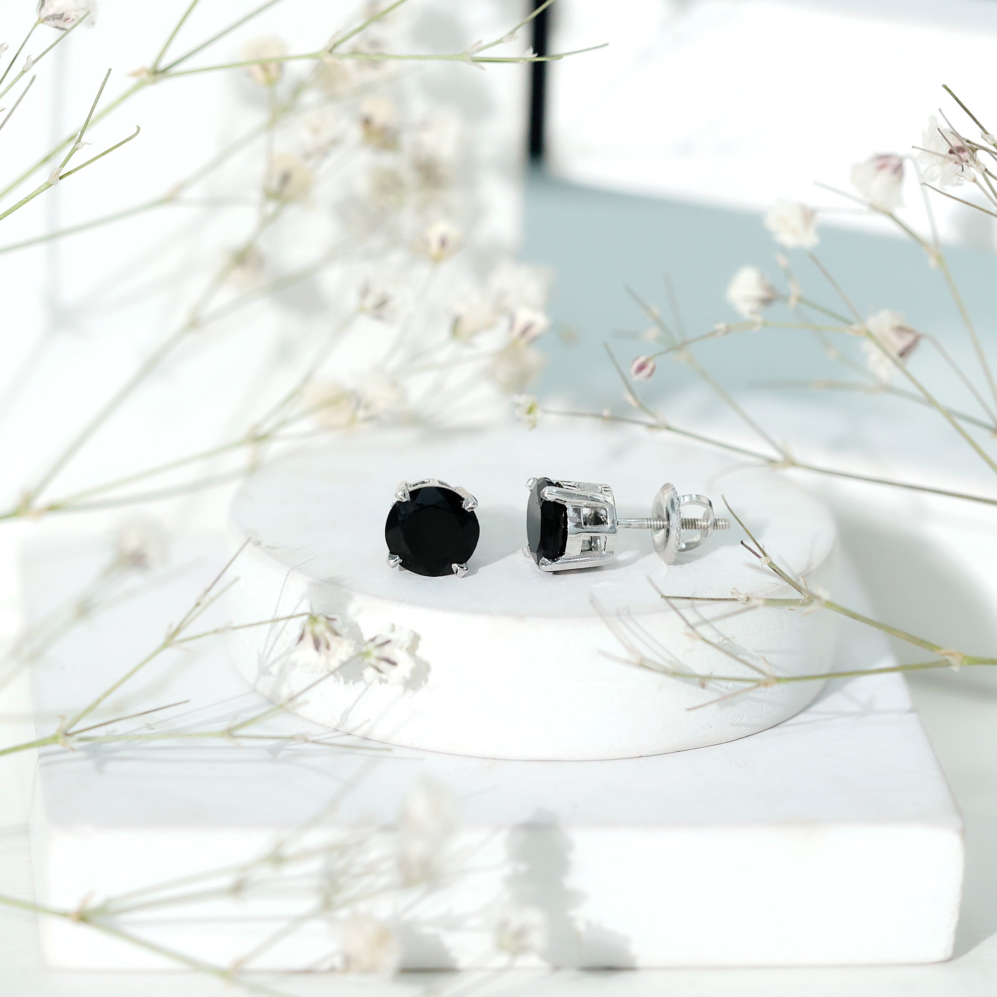 Boucles d'oreilles solitaires en onyx noir taille ronde 6,5 x 6,5 mm en serti 4 griffes