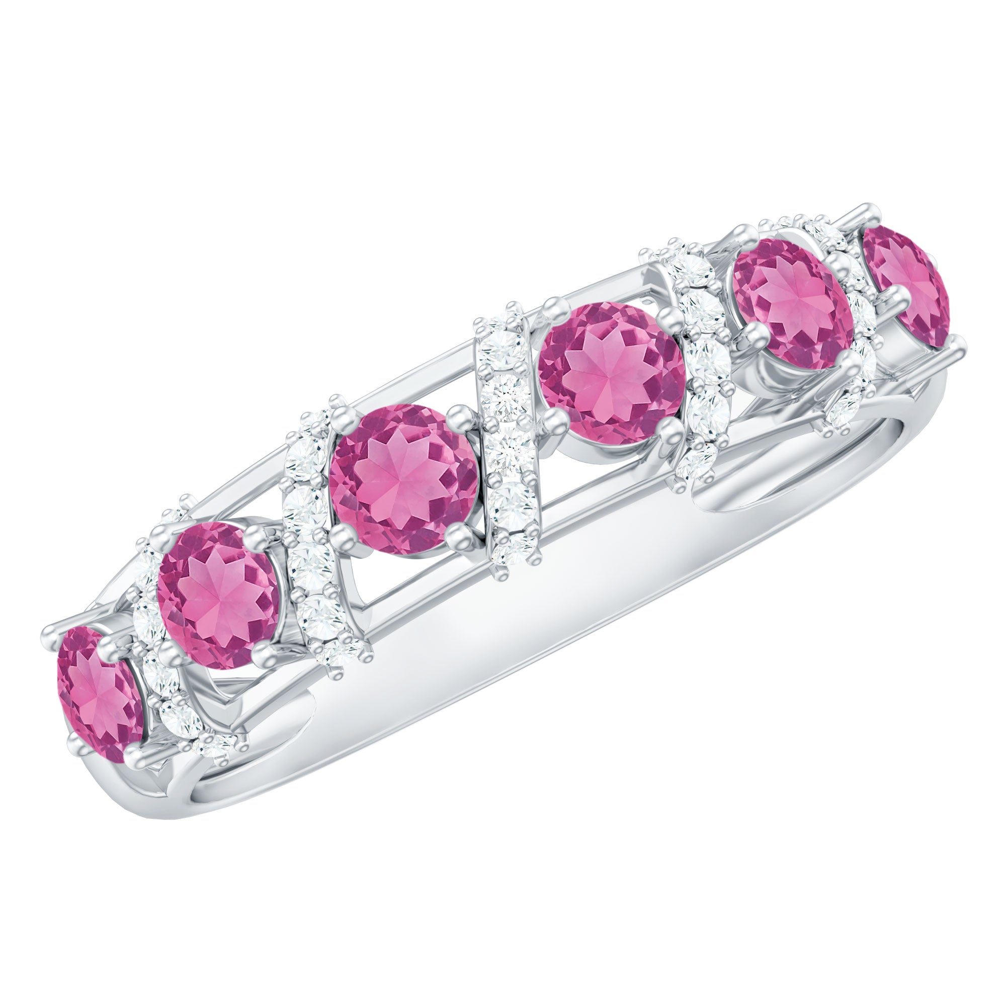 Marquez vos moments spéciaux avec cette bague d'anniversaire de créateur. La tourmaline rose et le diamant créent un symbole captivant d'amour et de célébration.