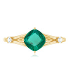 Si vous recherchez une bague de fiançailles qui respire la sérénité et l'éclat à porter au quotidien, la bague solitaire émeraude créée est le choix parfait. Cette bague à tige fendue présente une émeraude créée en taille coussin sertie comme un solitaire, avec des pierres de diamant ornant la tige fendue. Cette bague émeraude créée est une pièce intemporelle qui présente une apparence simple mais élégante.