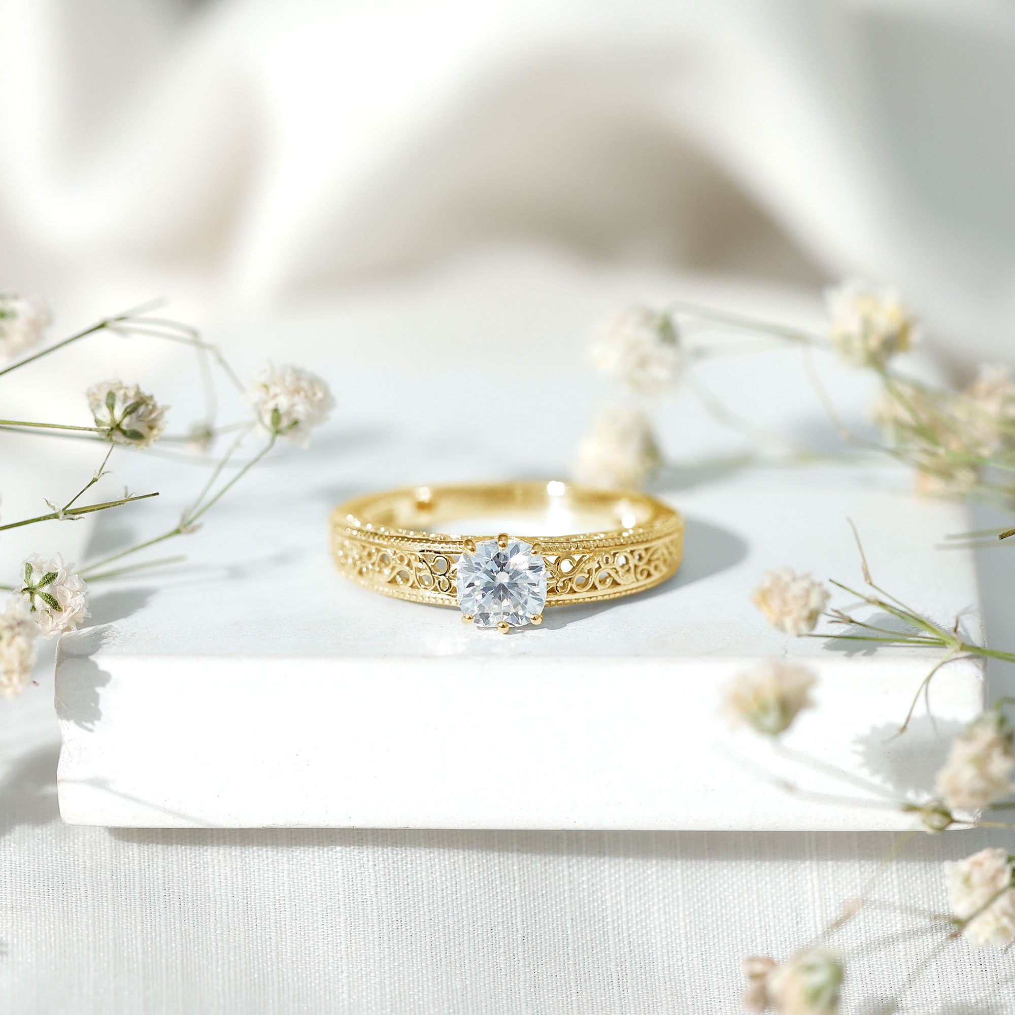 Bague de fiançailles en or filigrane de moissanite solitaire taille coussin