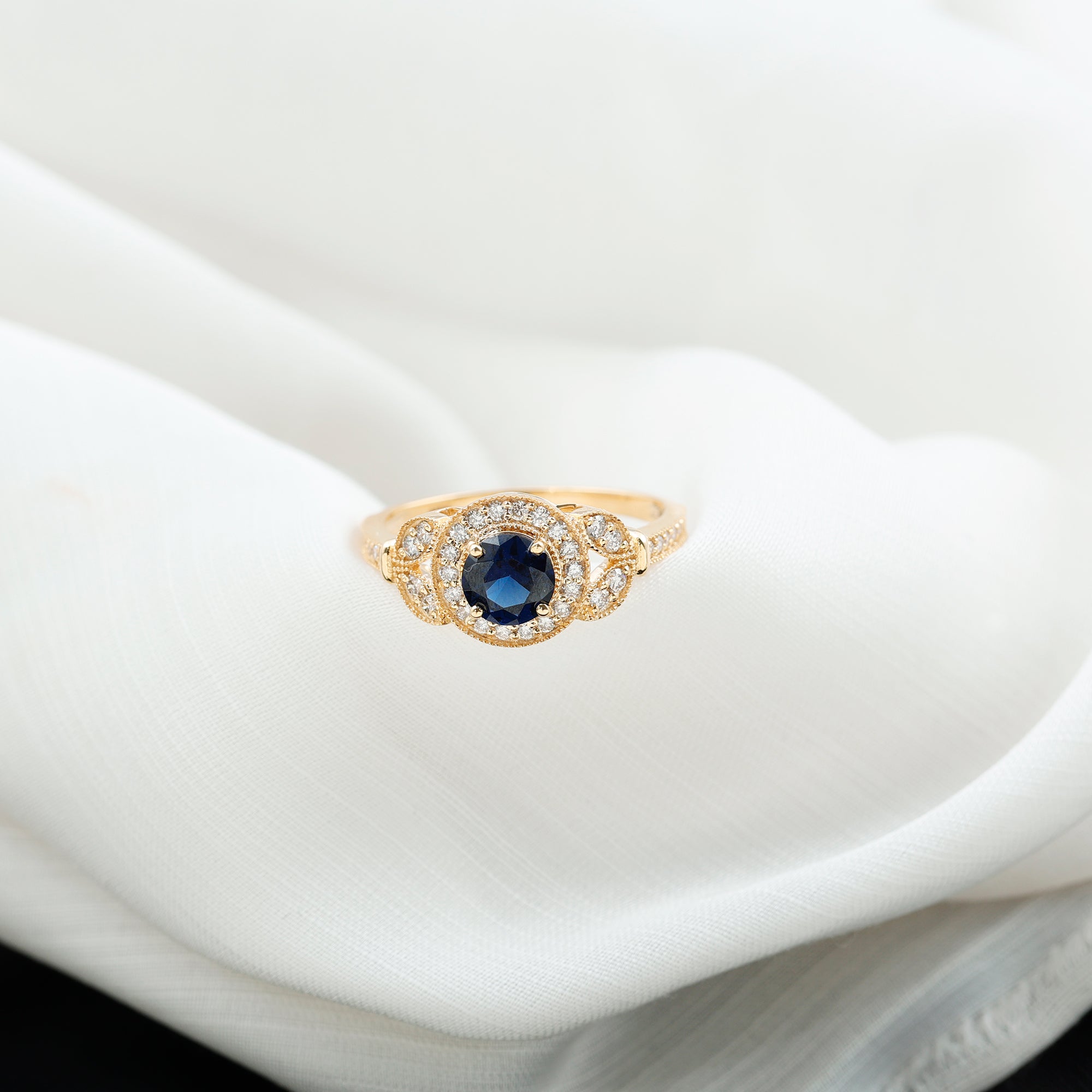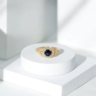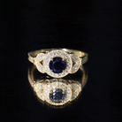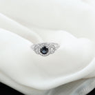 Bague de fiançailles en saphir bleu et diamant d'inspiration vintage