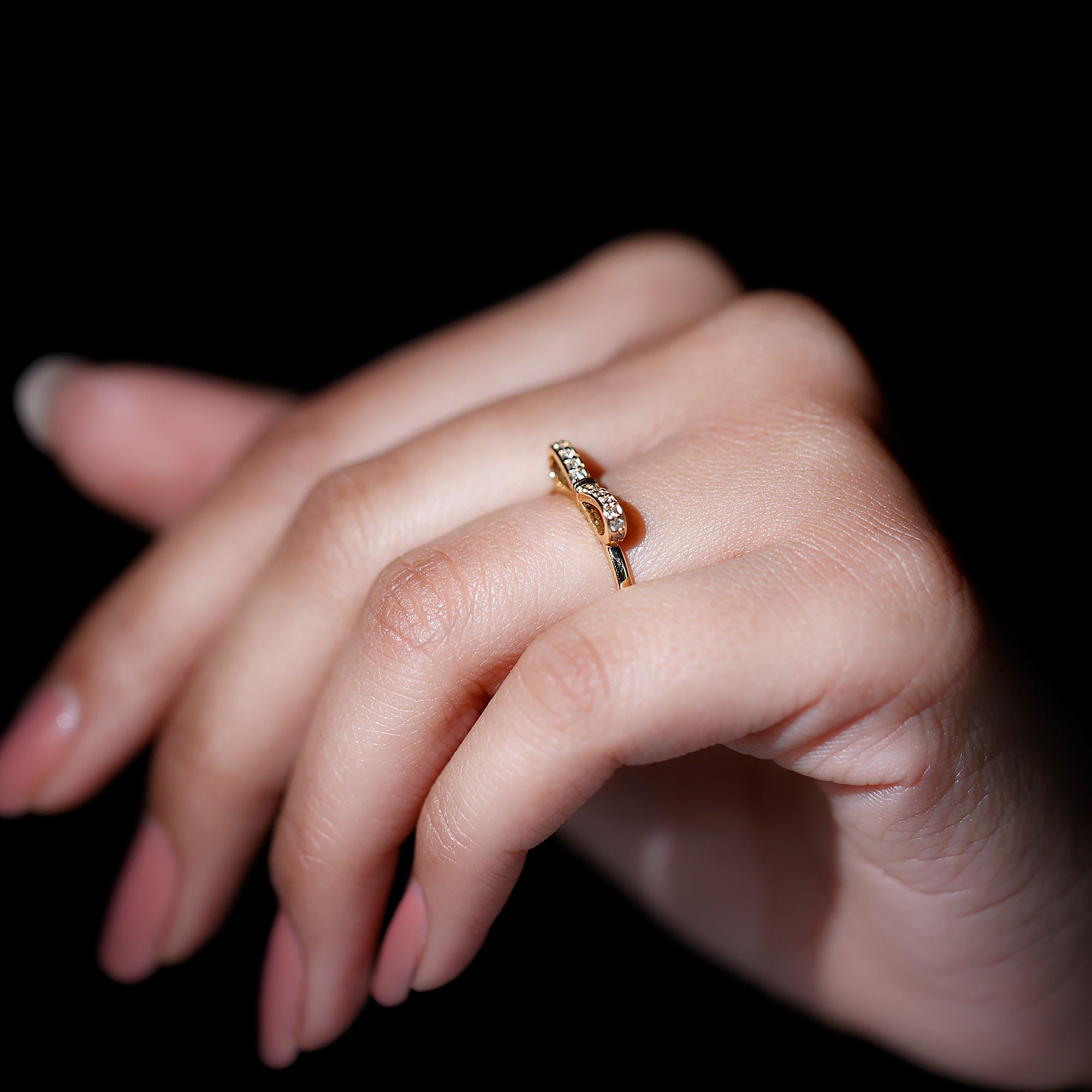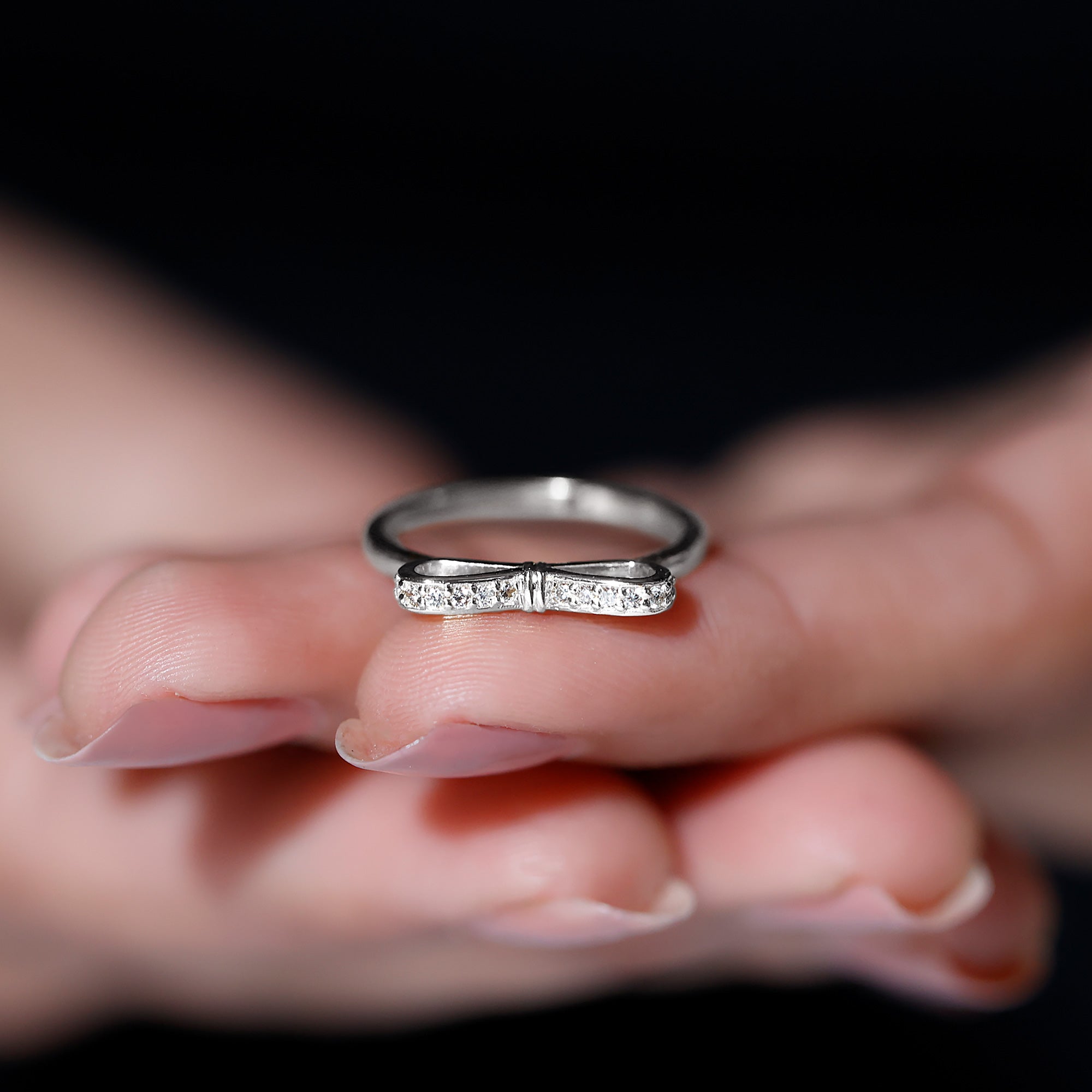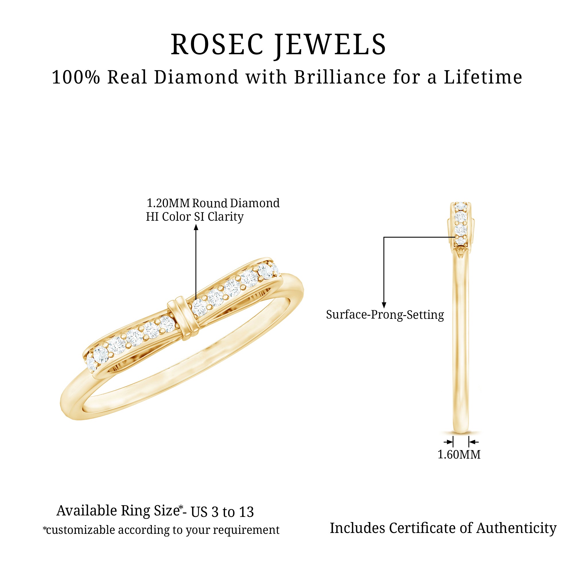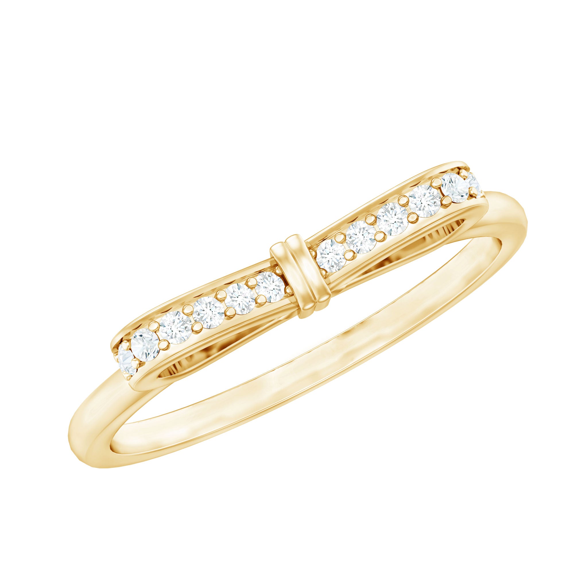 Une jolie bague en diamant avec nœud papillon est ornée d'un diamant rond brillant dans le serti pavé qui fait magnifiquement briller le nœud. Nous fabriquons une bague fine en diamant en or massif. Cette bague simple et délicate fera une superbe déclaration lorsqu'elle sera superposée à d'autres bijoux. Un merveilleux cadeau pour votre moitié.