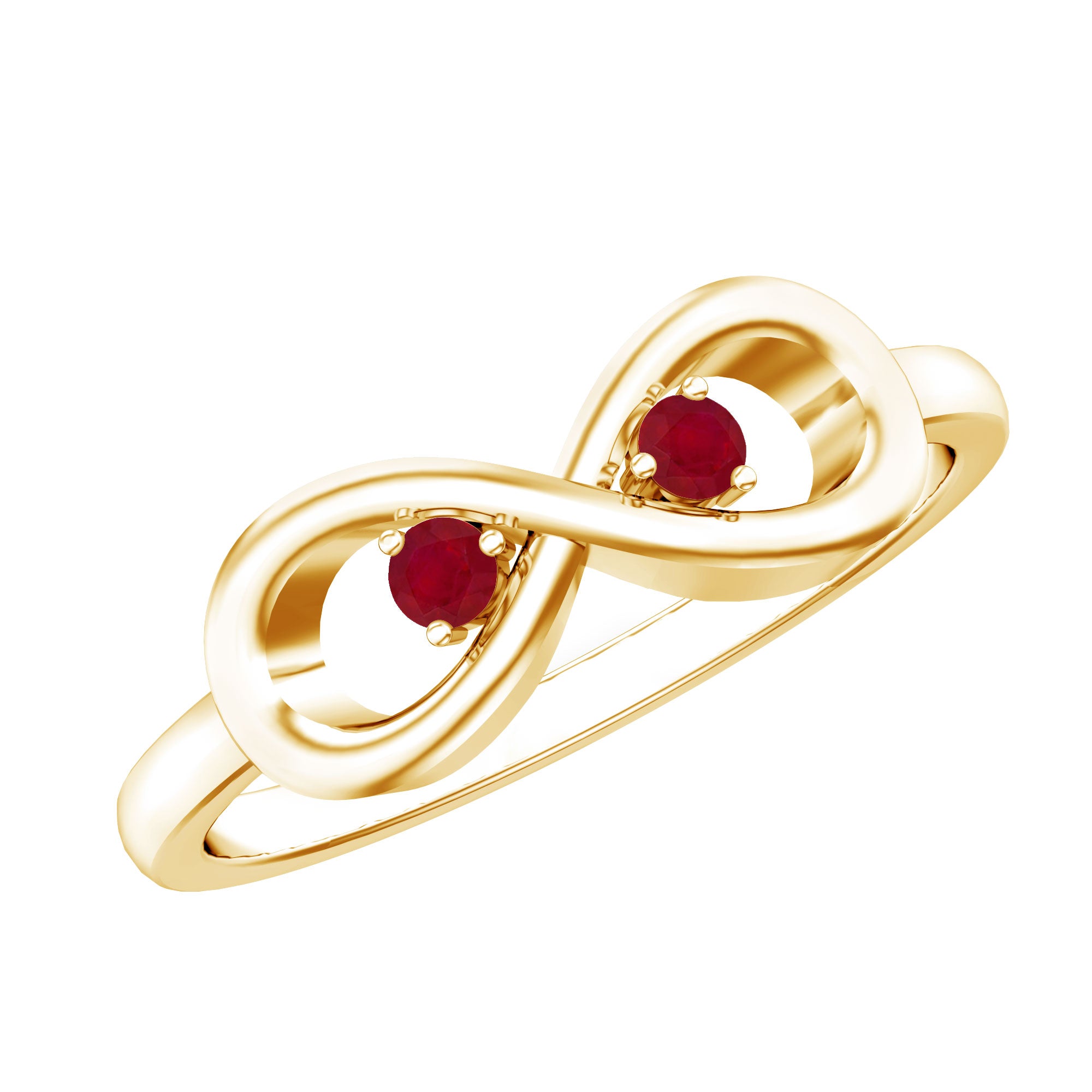 L'élégante bague Ruby Infinity est conçue avec le symbole de l'infini gravé avec des pierres précieuses rubis de forme ronde serties dans un sertissage à griffes. La bague de promesse est fabriquée en or massif.
