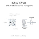 Boucles d'oreilles à tige en moissanite certifiées taille princesse solitaire 6 mm