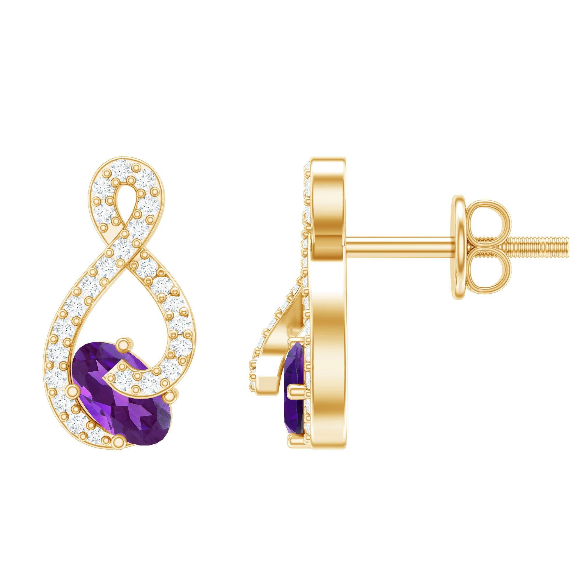 Adoptez un look tendance accrocheur en portant ces boucles d'oreilles à tige infini ornées d'améthyste de taille ovale serties sur griffes et d'un diamant de forme ronde.