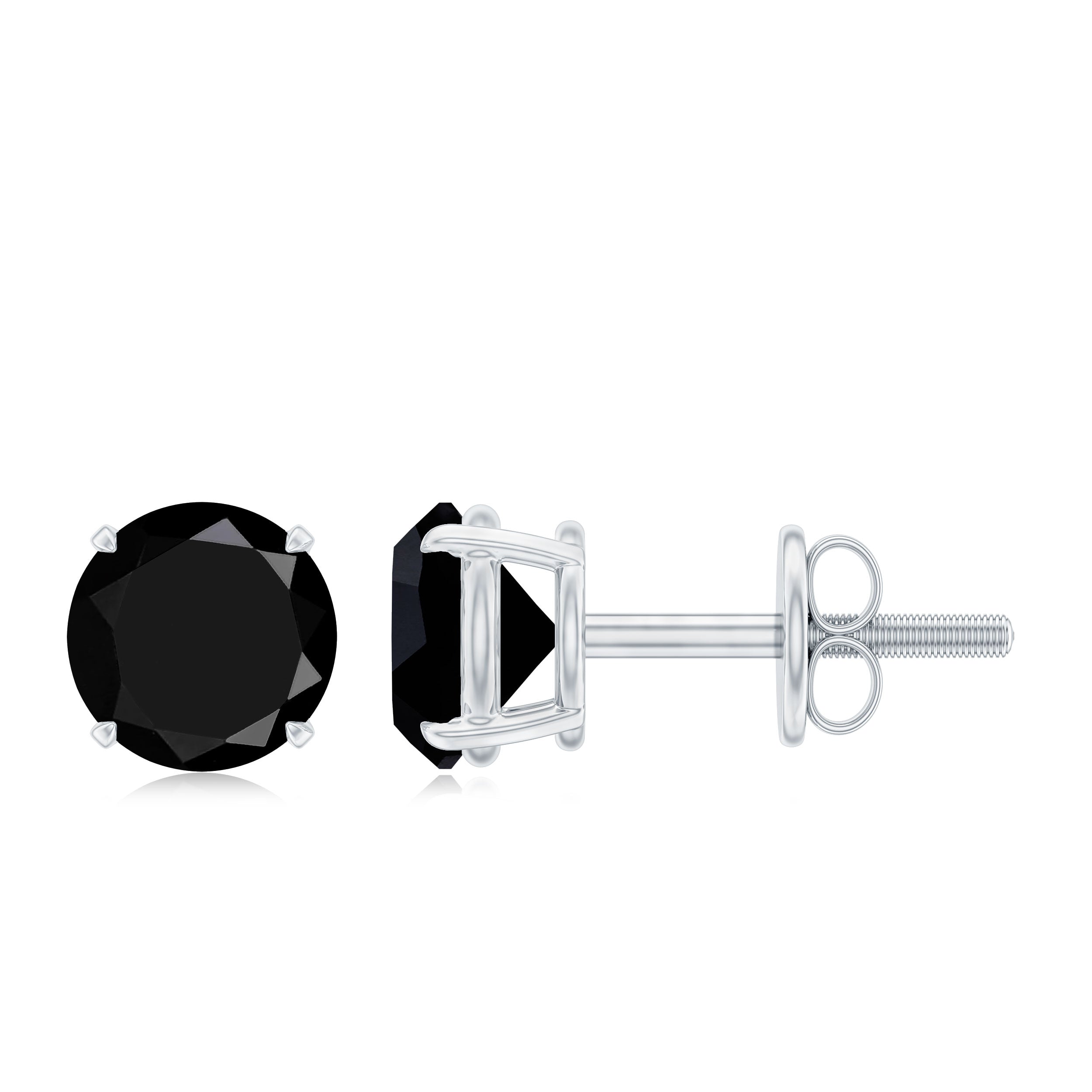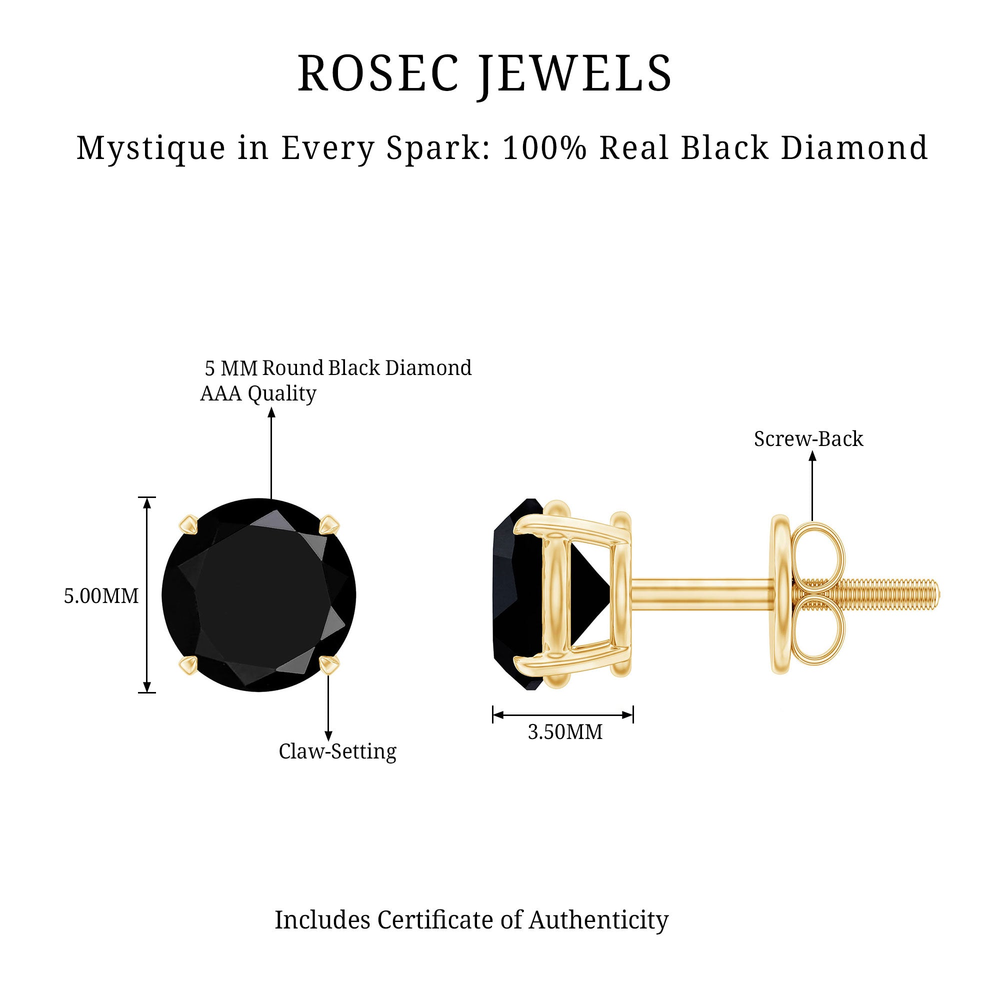 Boucles d'oreilles solitaires à diamant noir rond de 5 mm en serti griffe