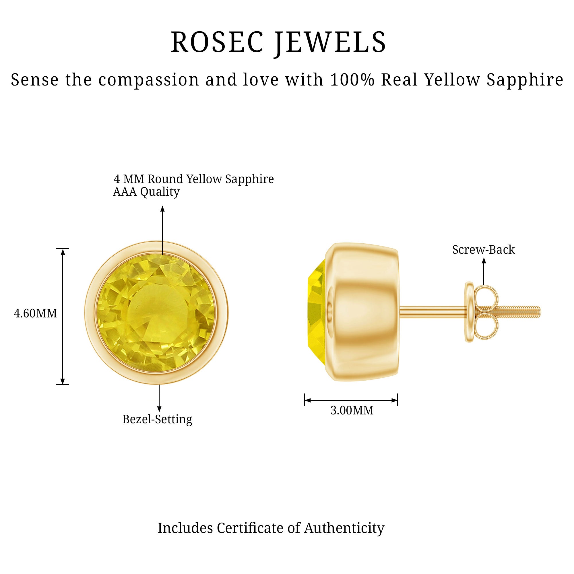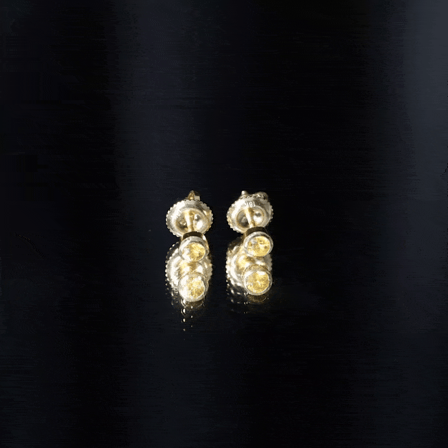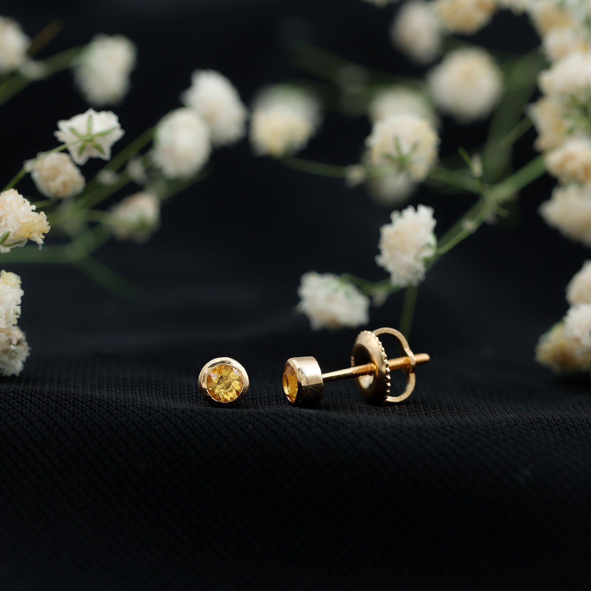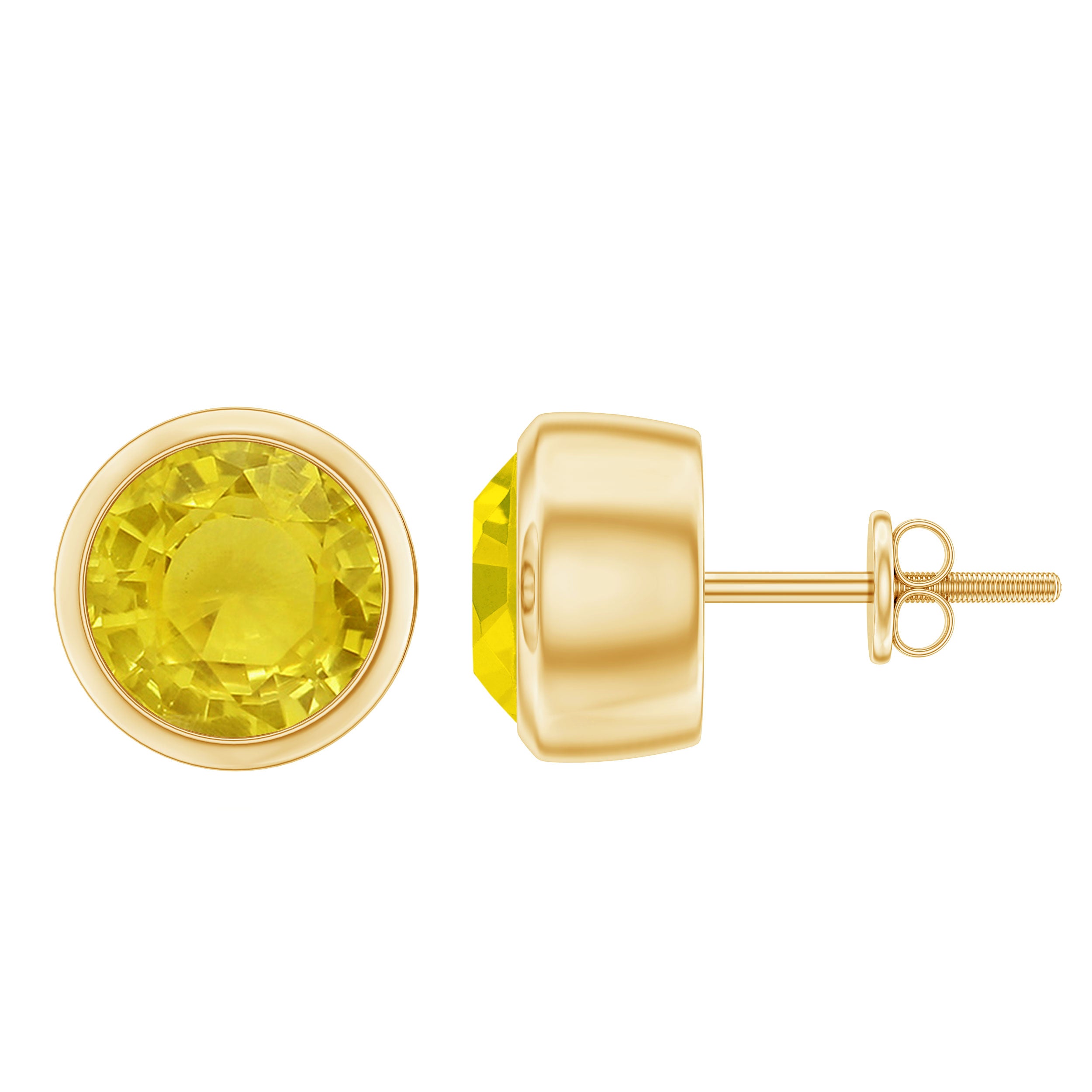 Boucles d'oreilles solitaires en saphir jaune naturel en serti clos