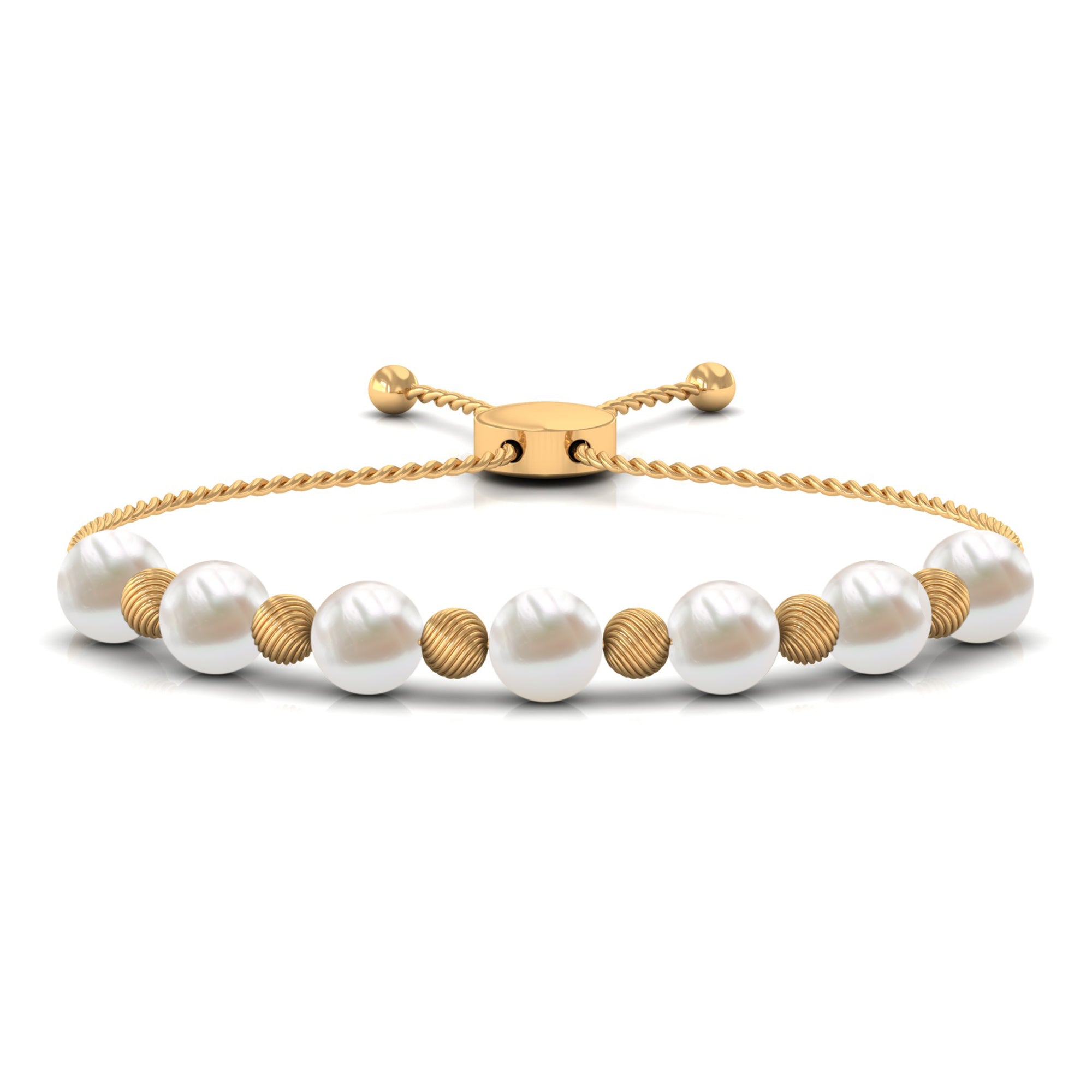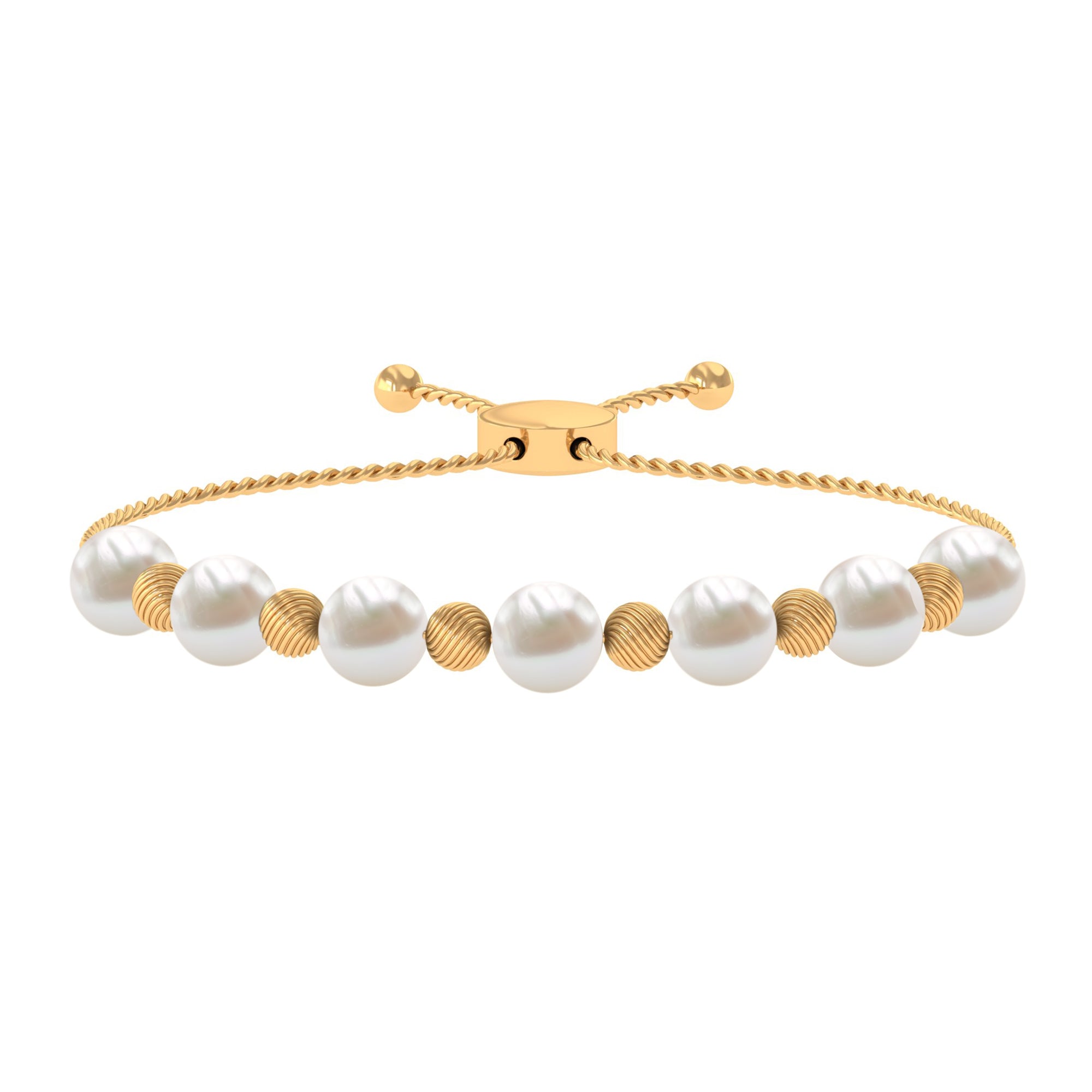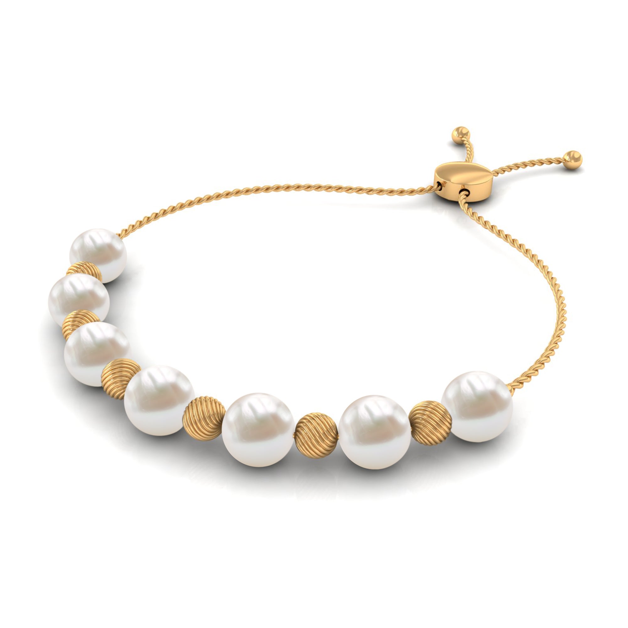 Bracelet Bolo en perles d’eau douce avec perles texturées dorées