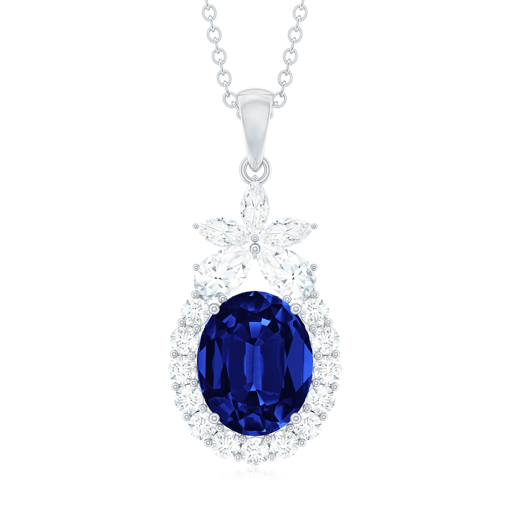 Pendentif à déclaration florale en saphir bleu et moissanite de coupe ovale