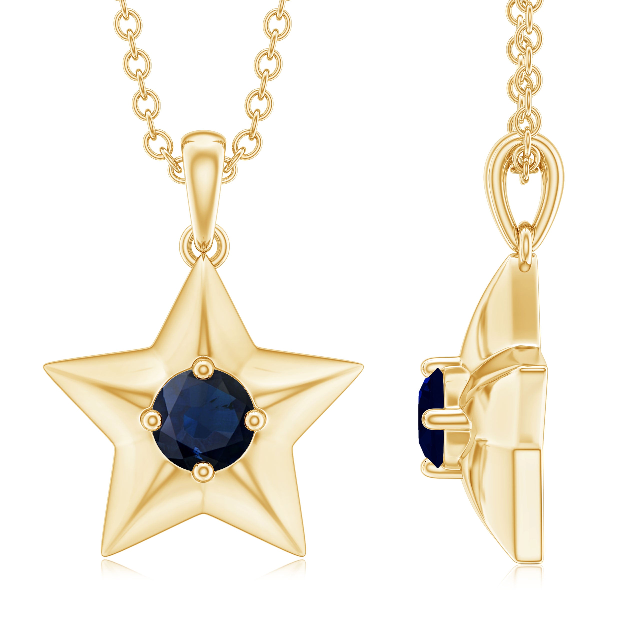This Gold Star Pendant is embellished with Round Shape Blue Sapphire in Prong Setting. It will be an amazing Birthday gift for a woman to wear that she will adore a lot.