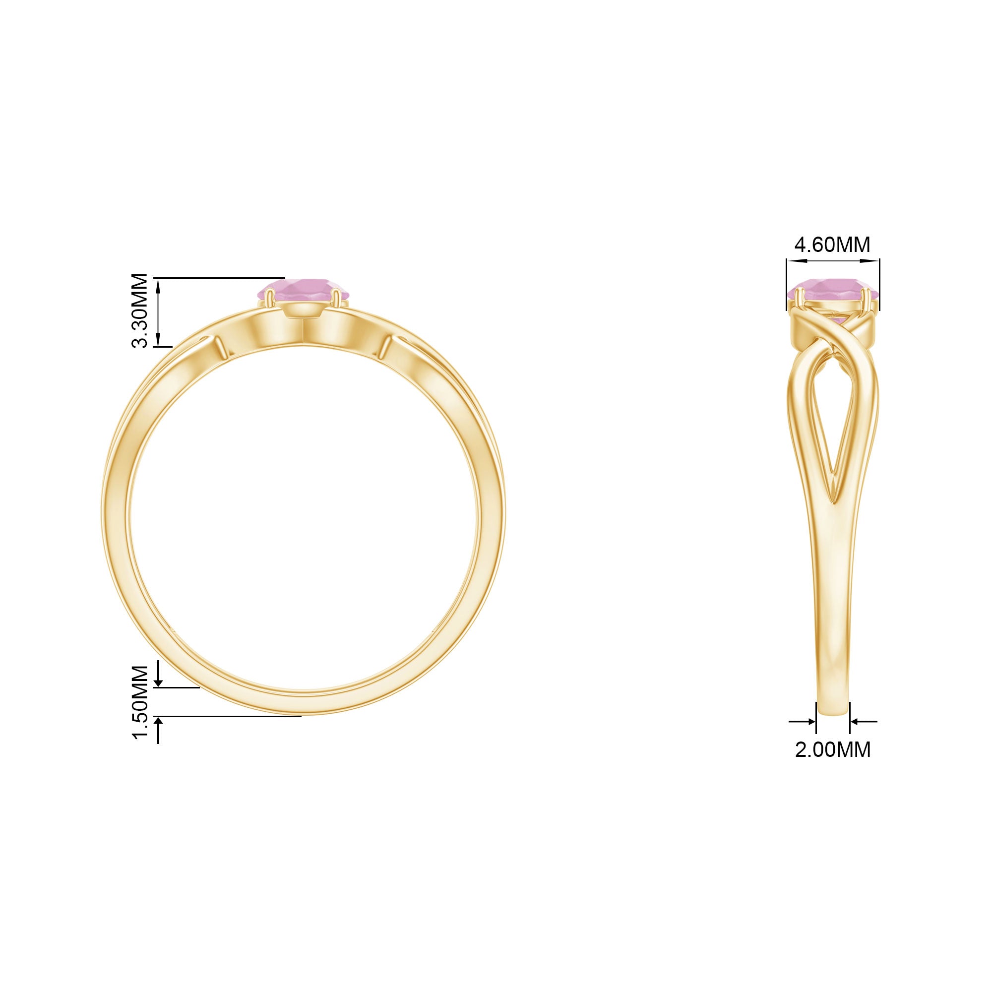 Create a stylish look by wearing this elegant Crossover Solitaire Ring embellished with Round Cut Rose Quartz in a Prong Setting. Crafted with Gold, this Rose Quartz Solitaire Ring will bring more charm and elegance to your look. Surprise your special person with this alluring Rose Quartz Gold Ring and make her feel special.
