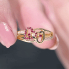 0.25 CT Interlock Heart Ring with Ruby and Moissanite in Gold