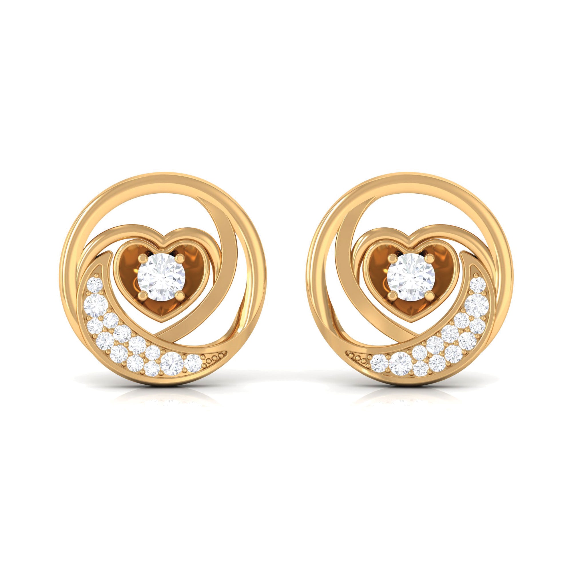 Make a statement with these unique Half Moon and Heart pattern Stud Earrings, crafted in gold and adorned with Round Cut Moissanite in a prong setting. The screw back closure ensures a secure fit, making these Moissanite earrings a perfect choice for everyday wear to express your individuality.
