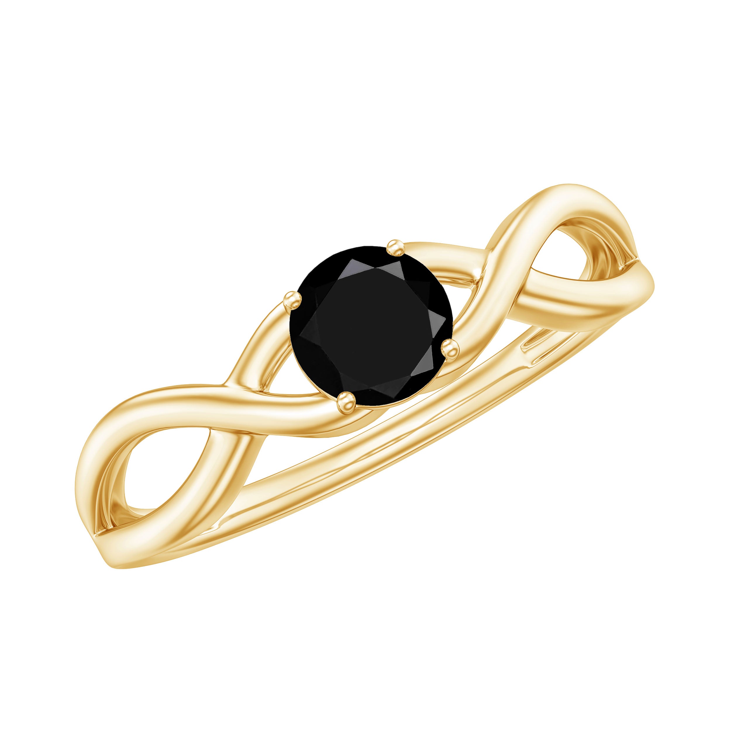 0.25 CT Solitaire Black Spinel Crossover Ring in Gold