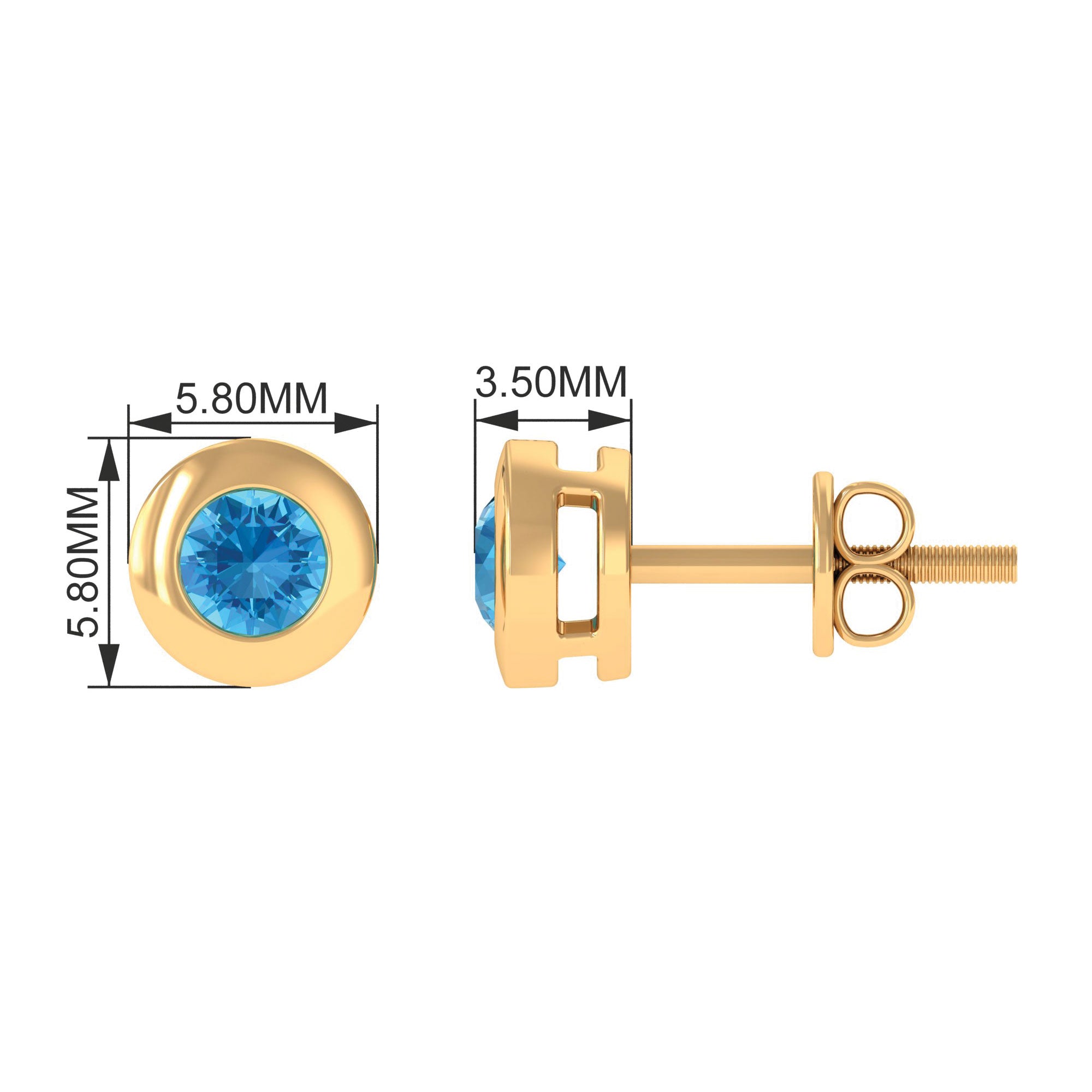 These delicate Swiss Blue Topaz Earrings are perfect for celebrating any occasion. Featuring a Round Shape Swiss Blue Topaz secured in Bezel Setting set as a Solitaire. The Screw Back Closure will keep these Simple Earrings secured in place. Shine all day in these Blue Topaz Stud Earrings for Women as you pair them with your casual, formal, or evening attire.