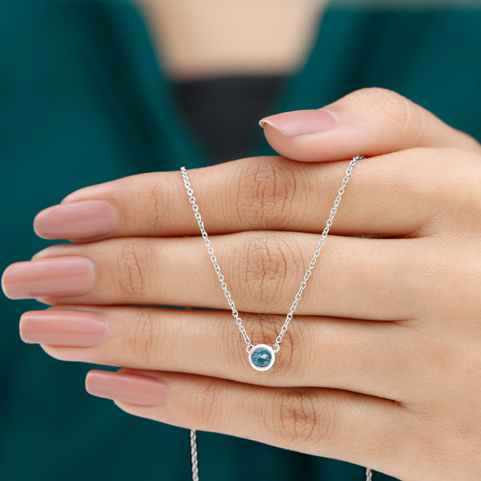 0.5 CT London Blue Topaz Solitaire Necklace in Bezel Setting