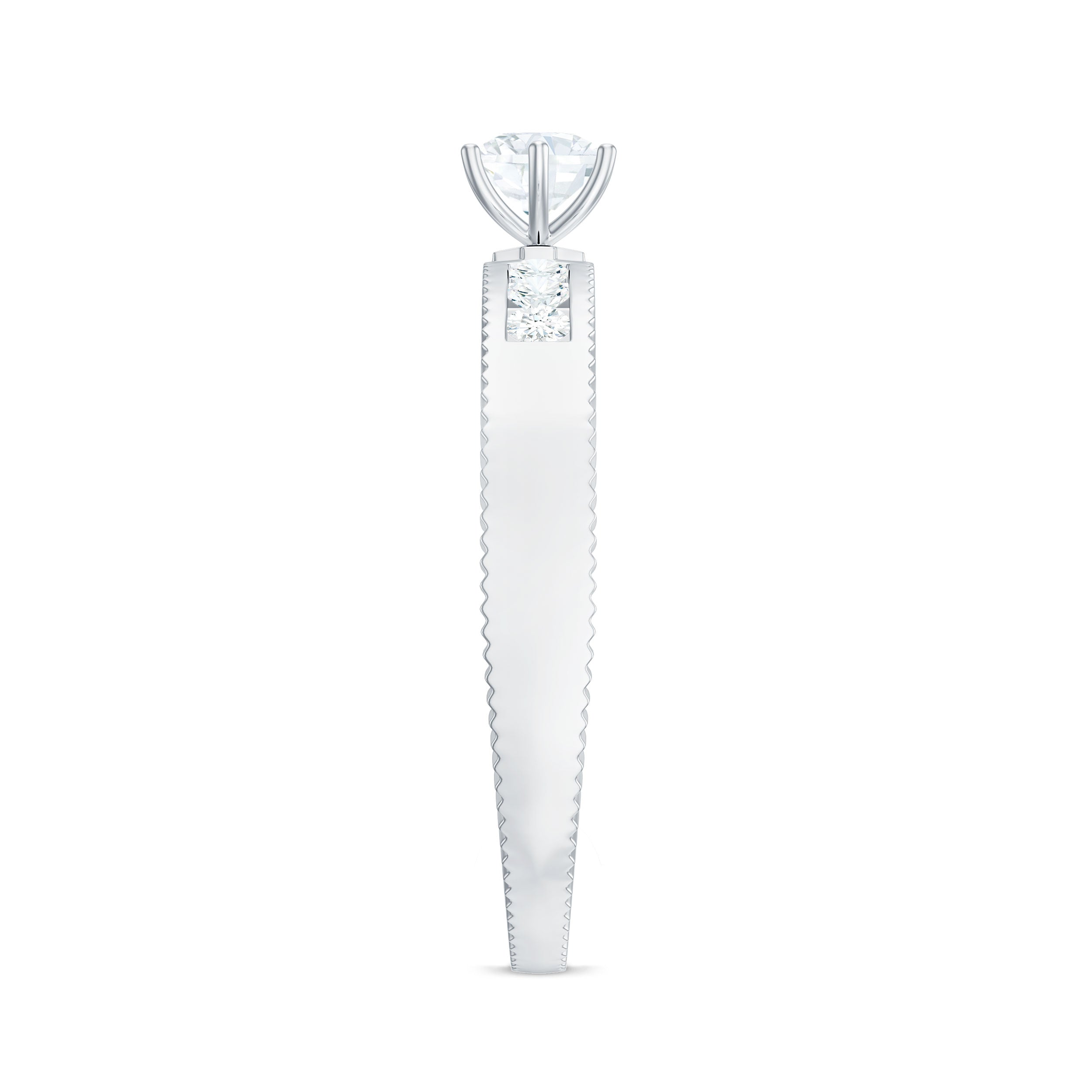 This ring boasts a striking zigzag pattern along the edges and is adorned with sparkling diamonds on the sides. The basket set diamond at the center creates a distinctive and eye-catching look.