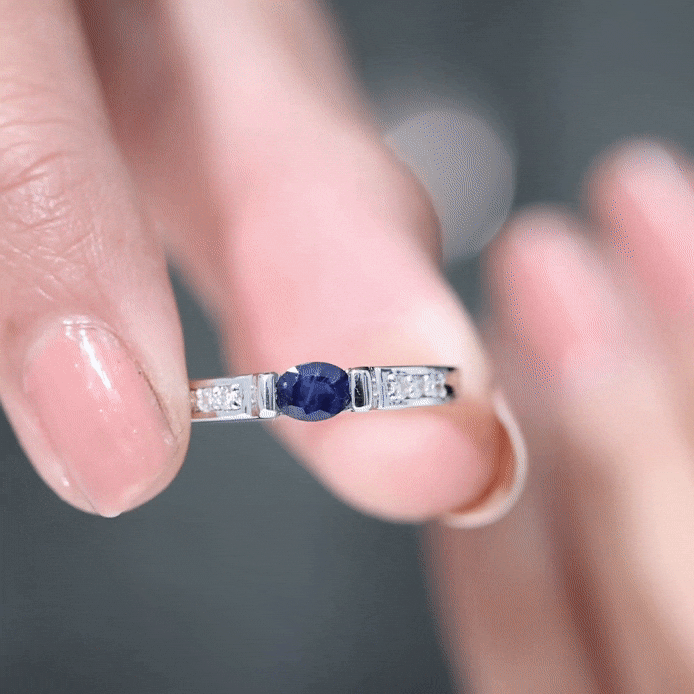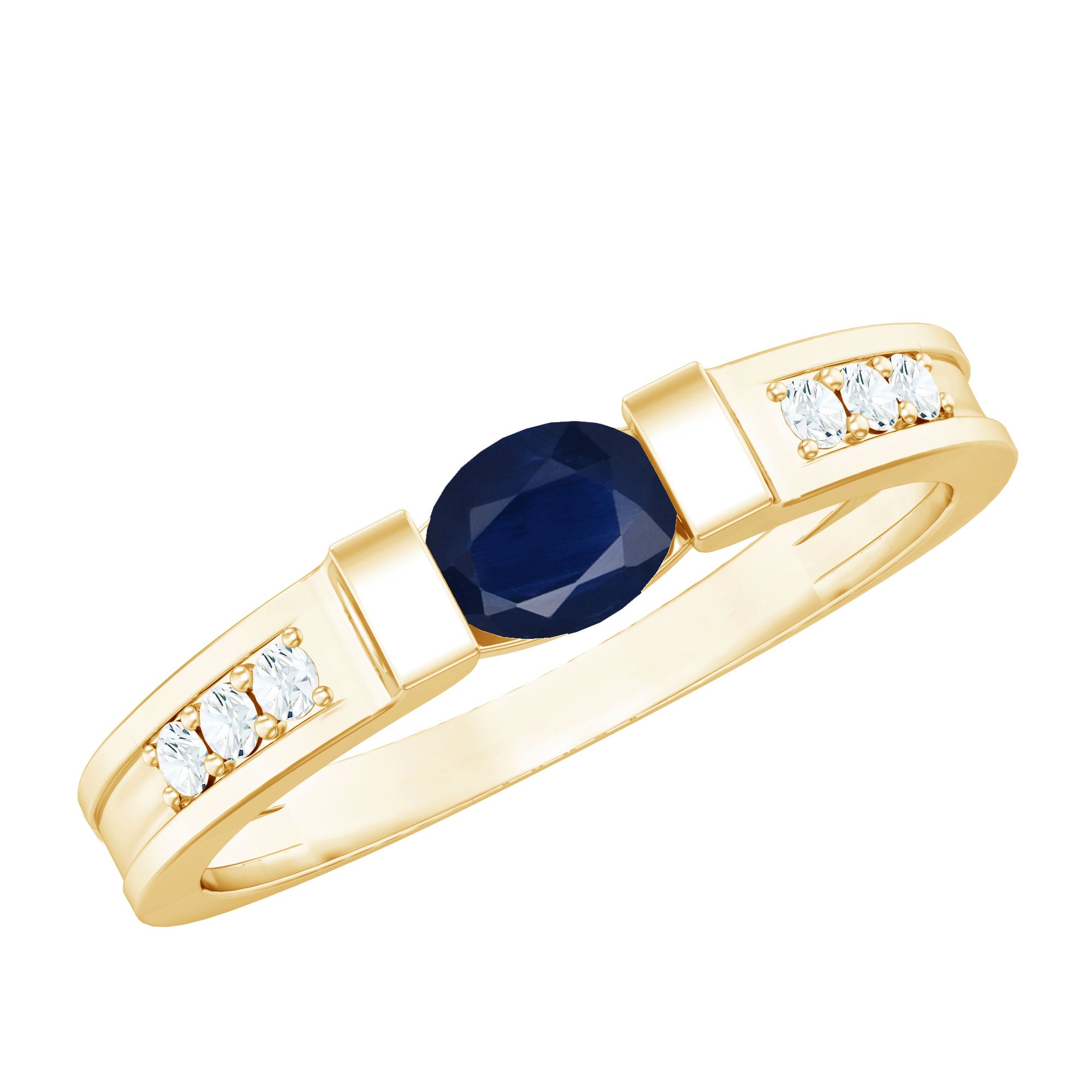 0.5 CT Oval Blue Sapphire East West Solitaire Ring with Diamond