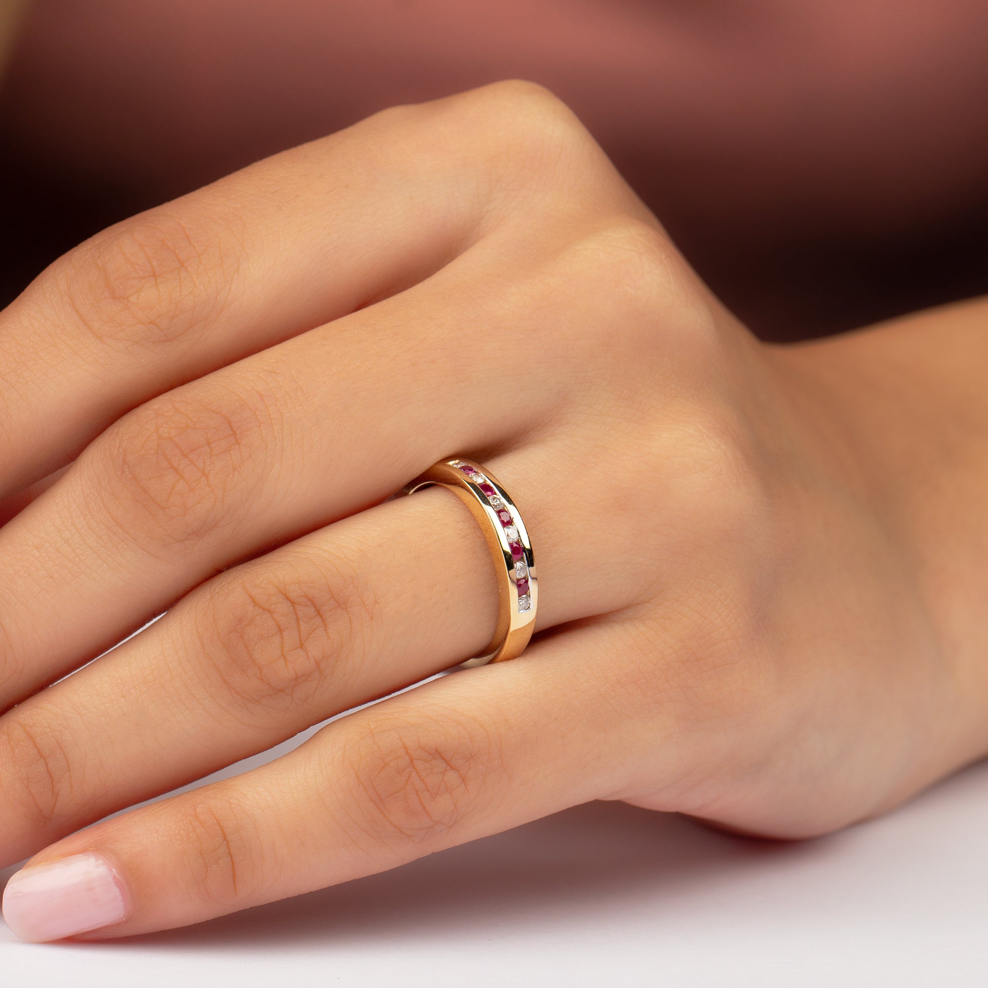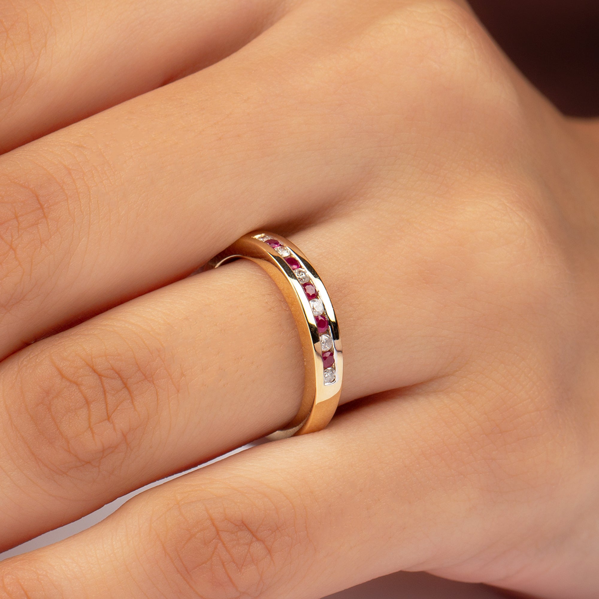 0.5 CT Ruby and Diamond Minimal Band Ring in Channel Setting