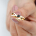 Create a striking and elegant impression with this Black Onyx Infinity Ring. Featuring 5 mm round shape Black Onyx set at the center as solitaire in a prong setting having infinity style shank embellished with round shape diamonds, making it a must have choice. Our Solitaire Engagement Ring isnt just a promise of forever; its a celebration of timeless elegance. Allow your heart to express itself in brilliance with this stunning Black Onyx Engagement Ring, a creation that elegantly embodies the spirit of love, commitment, and timeless sophistication. Crafted to transform feelings into treasured heirlooms, this Infinity Engagement Ring serves as a luminous tribute to the union of two souls. The distinctive silhouette makes a romantic impression with each glance, bold, feminine, and unforgettable. The band showcases an elegant infinity crossover shank, embellished with meticulously set round diamonds that intertwine gracefully like two paths merging into one. Representing unity and eternity, the flowing lines symbolize a connection that strengthens with each passing moment. Ideal for a proposal, an anniversary, or as a treasured symbol of commitment, this Black Onyx Ring will enchant hearts, just as yours has. Whether intended for your partner, fiancée, or as a significant gift for someone special, this Solitaire Infinity Ring articulates the essence of love in its most genuine form.