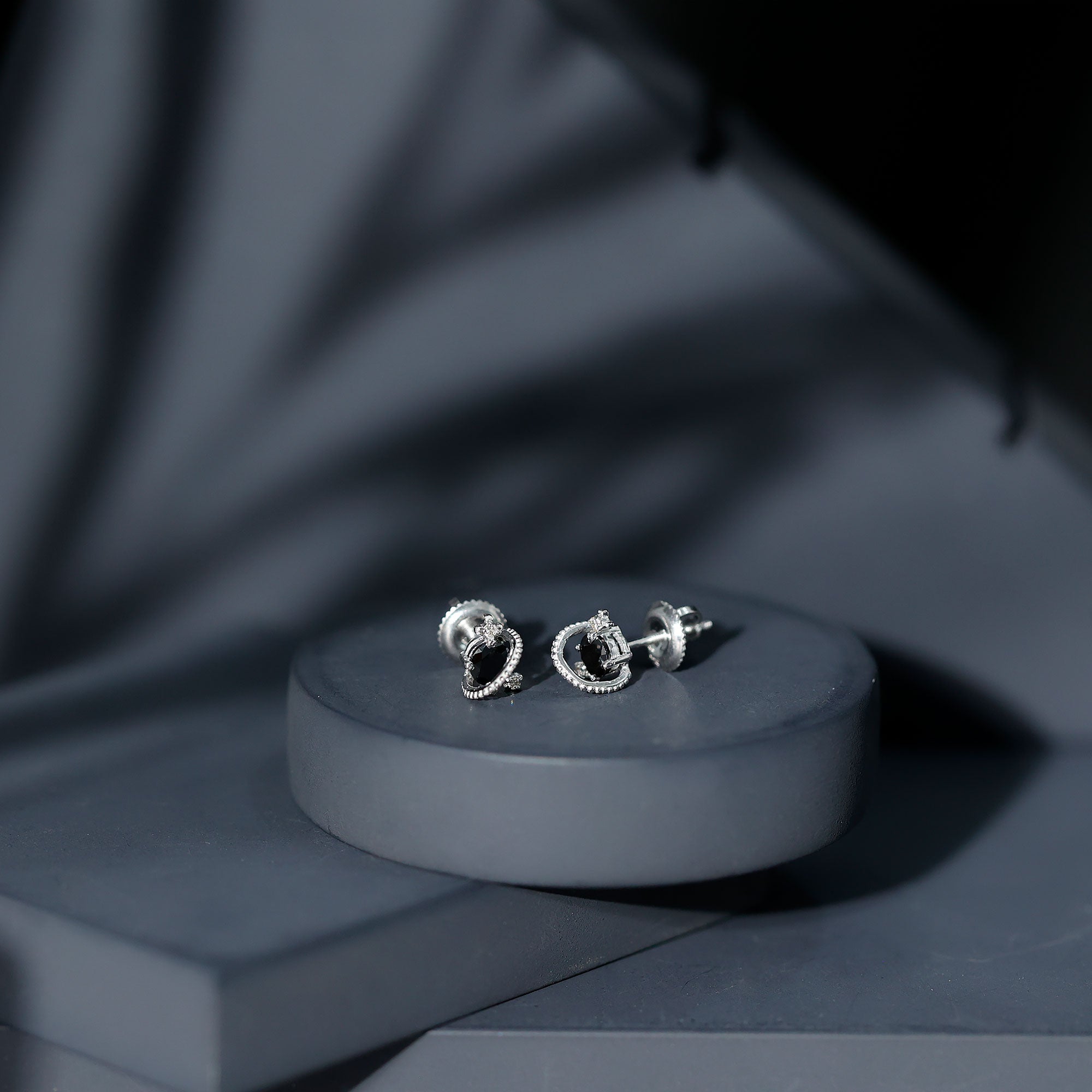0.50 CT Created Black Diamond and Diamond Celestial Stud Earrings