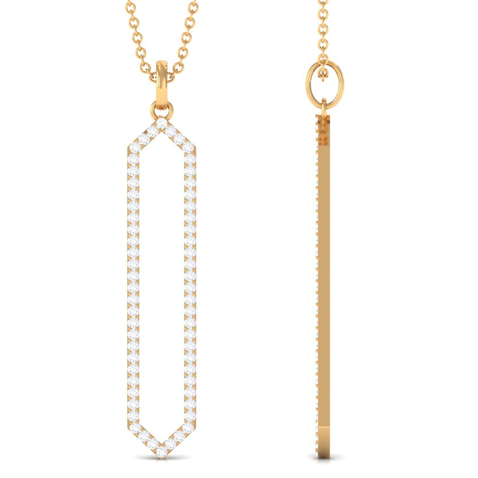Embodying elegance, this Diamond Pendant Necklace offers a unique and modern allure. The captivating interplay of geometric lines and contemporary shapes sparks with a sophisticated aesthetics. Appreciating elegance and avant-garde style, this Geometric Necklace is a meticulously crafted work of art designed for the modern individual. It is adorned with Round brilliant cut Diamond on a geometric pattern. These precise lines and contemporary shape have a harmonious design that truly stands out. As a statement piece that speaks volumes about your refined taste and appreciation, this Hexagon Necklace is sure to become a cherished addition to your collection. Catering to a delicate and minimalist style, this Pendant features with modern, geometric design that sparkles with HI-SI Quality Diamond. The geometric lines of the modern world were created for this gorgeous and modern twilight hexagon-shaped diamond pendant, while drawing attention to the neck area.