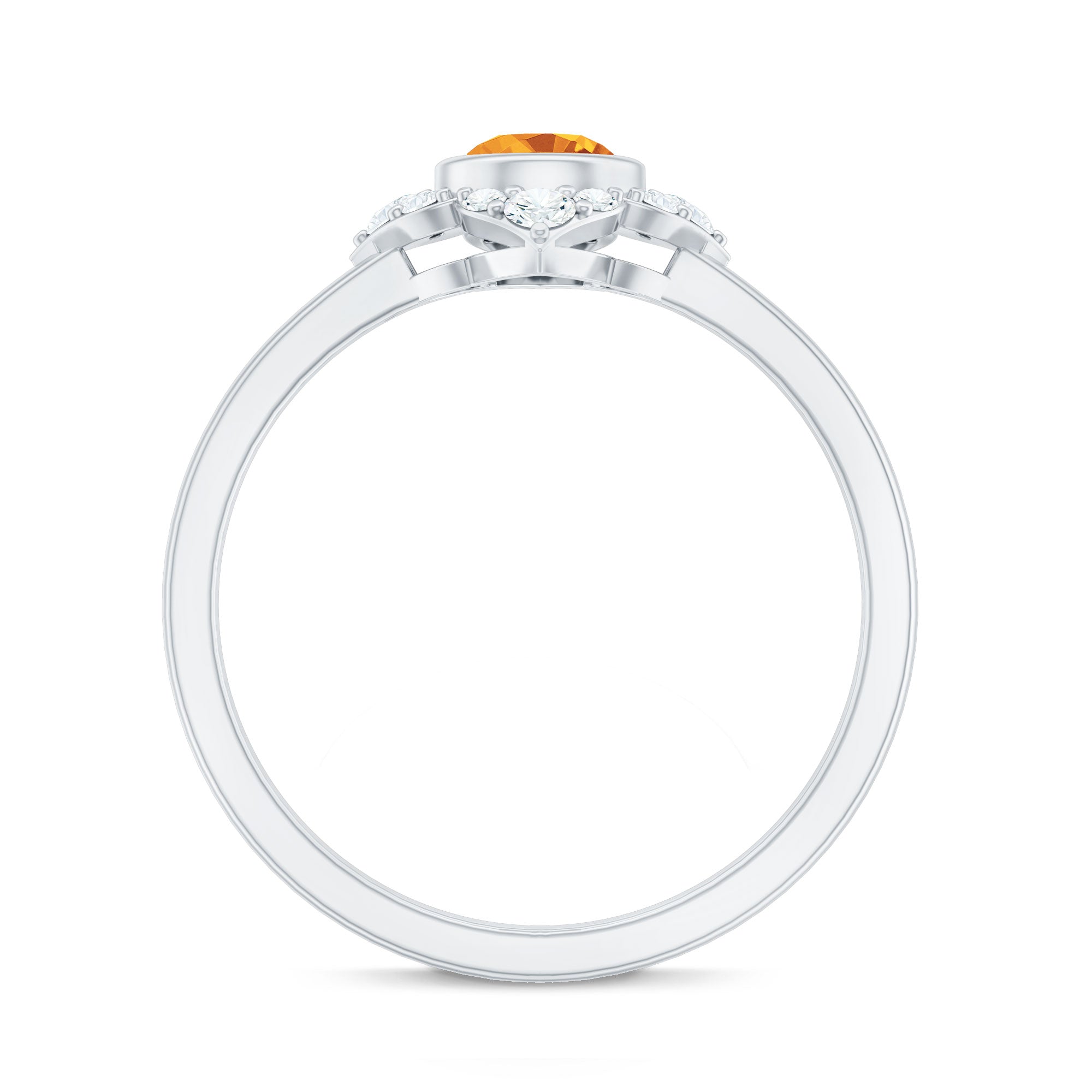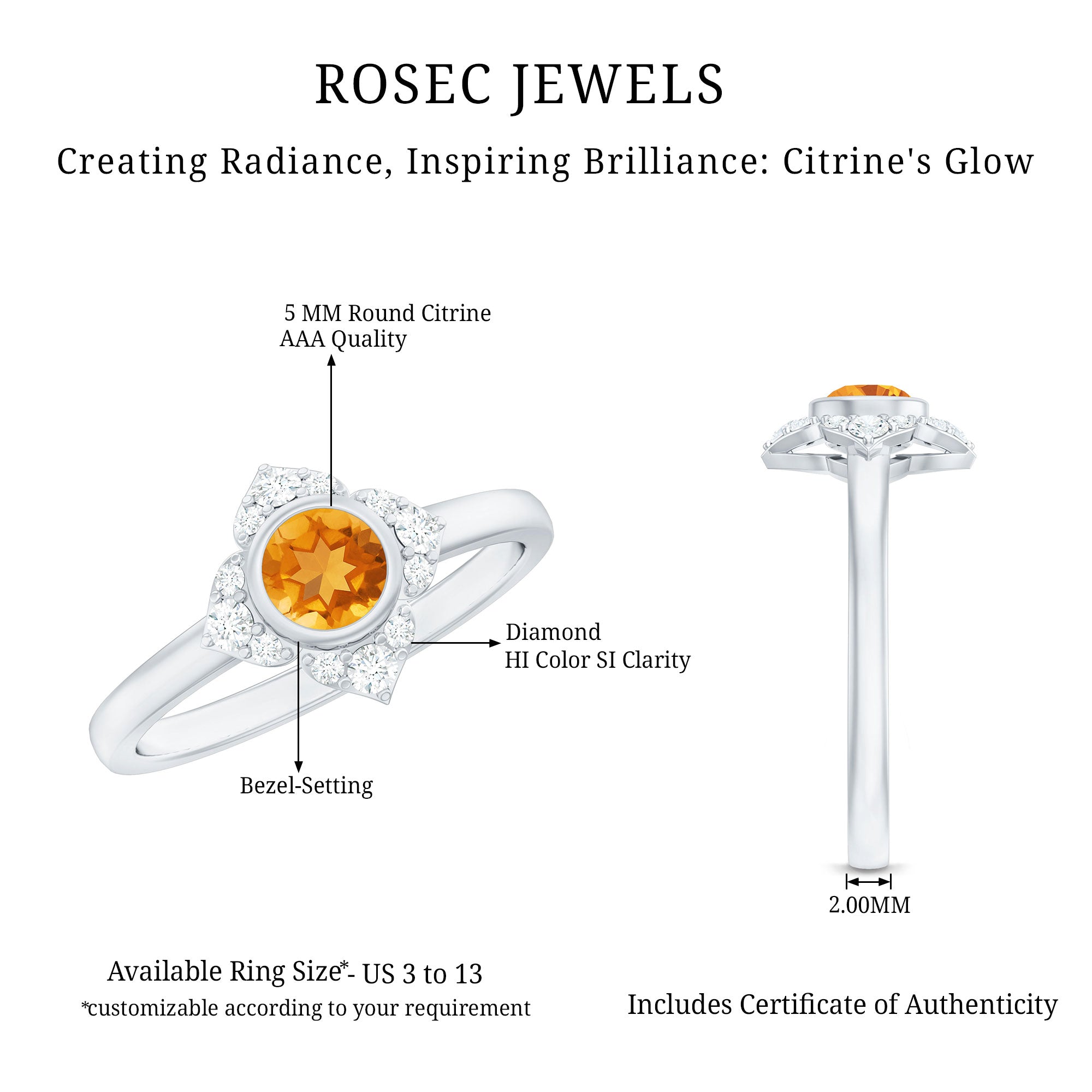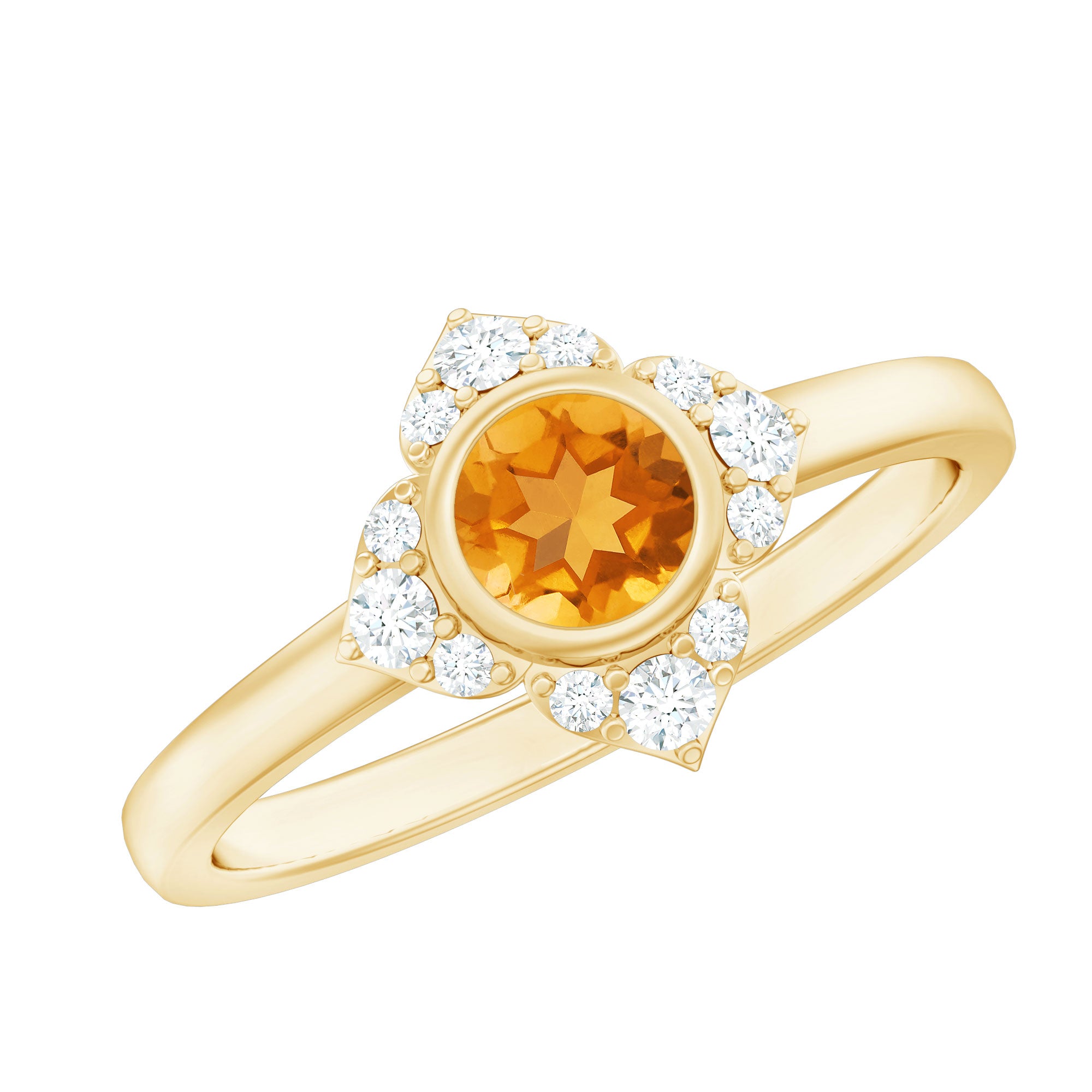 0.50 CT Natural Citrine Floral Engagement Ring with Diamond Accent