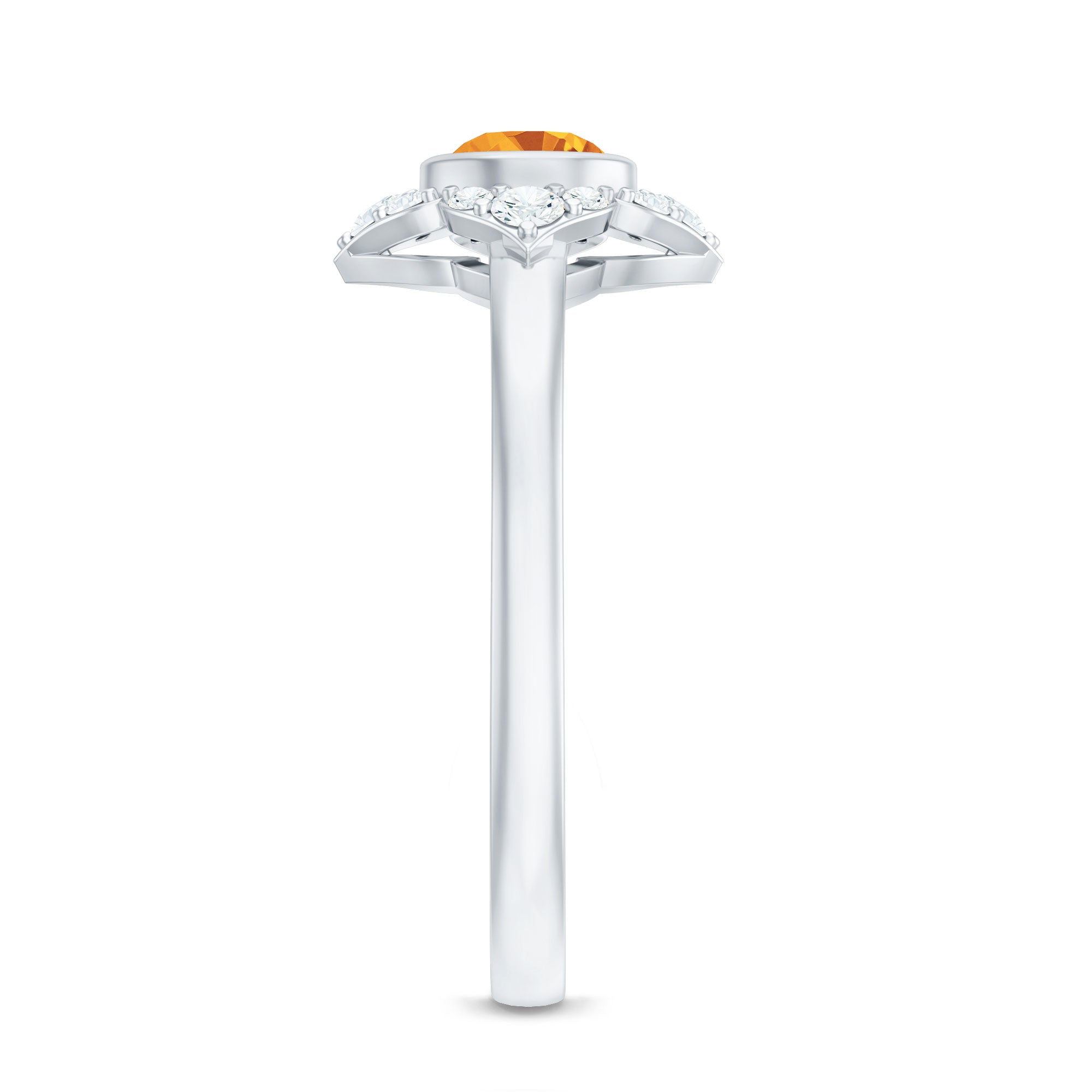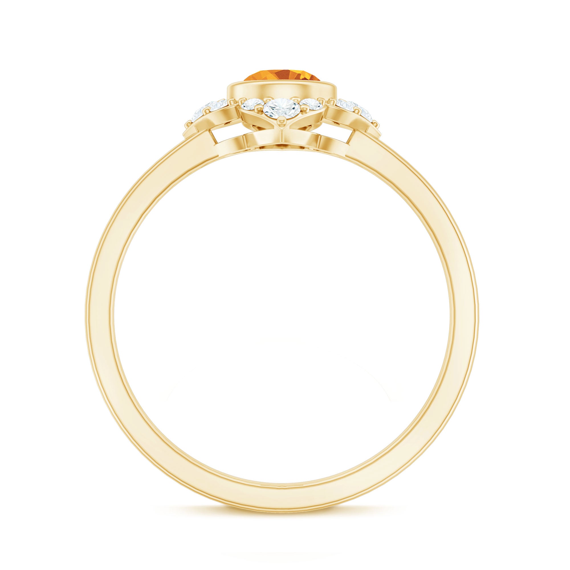 Embrace her with this elegant Engagement Ring embellished with Round Shape Citrine in Bezel Setting with Round Shape Citrine Accent. This Citrine Engagement Ring is crafted with Gold to give her a stand out look on the special day. This Citrine and Diamond Ring will bring intense shine and elegance to your look.