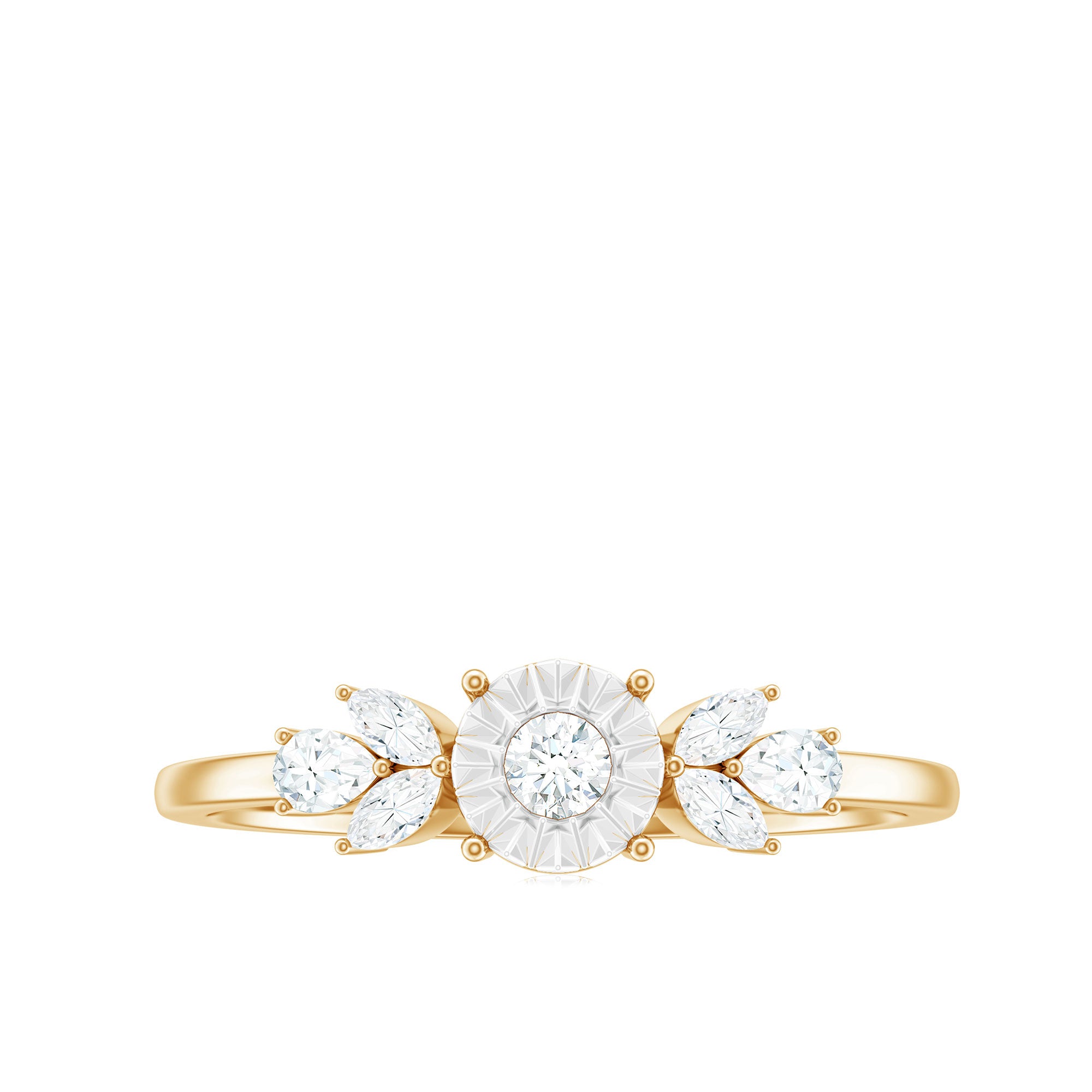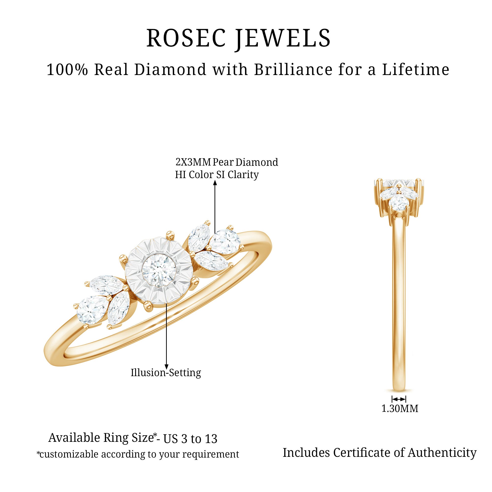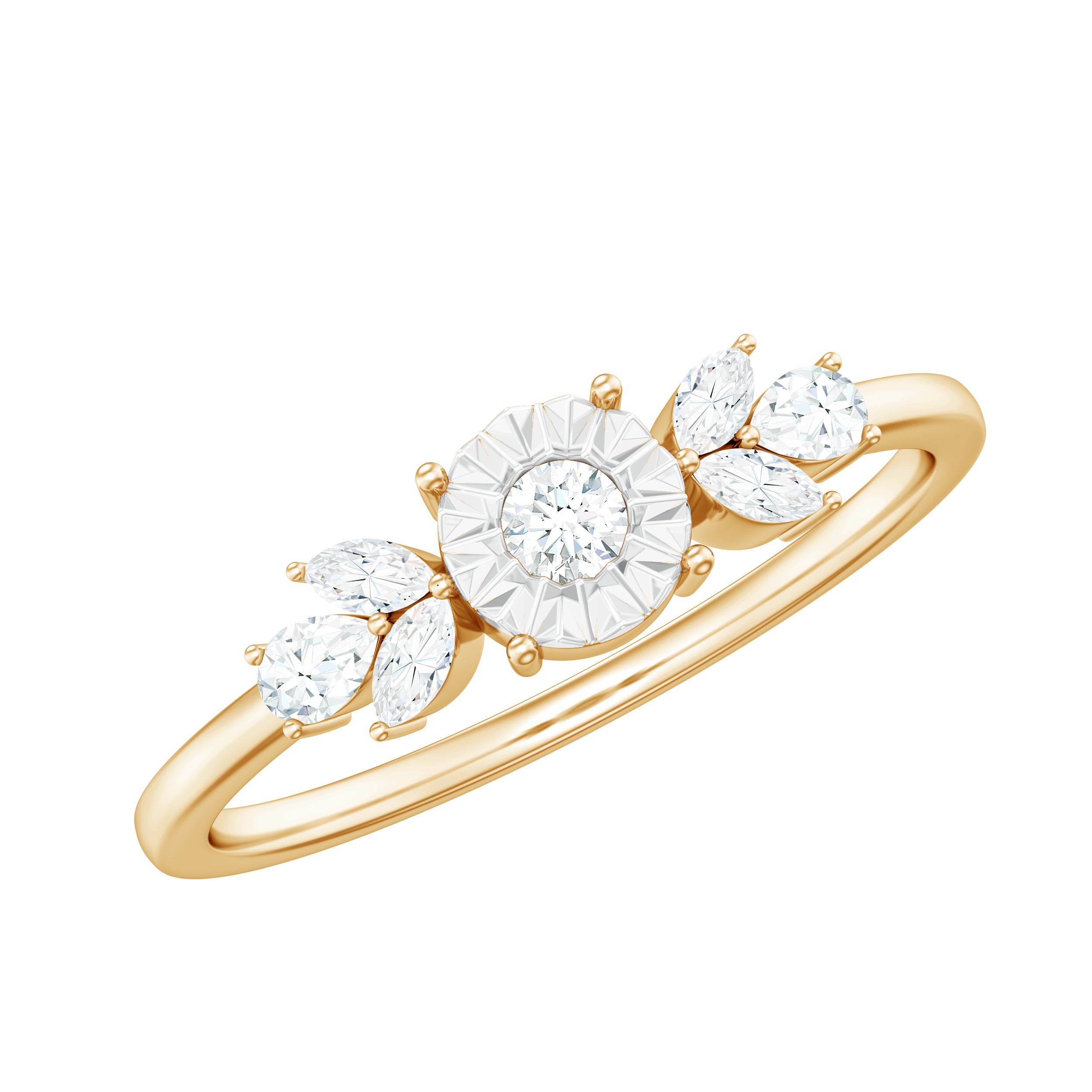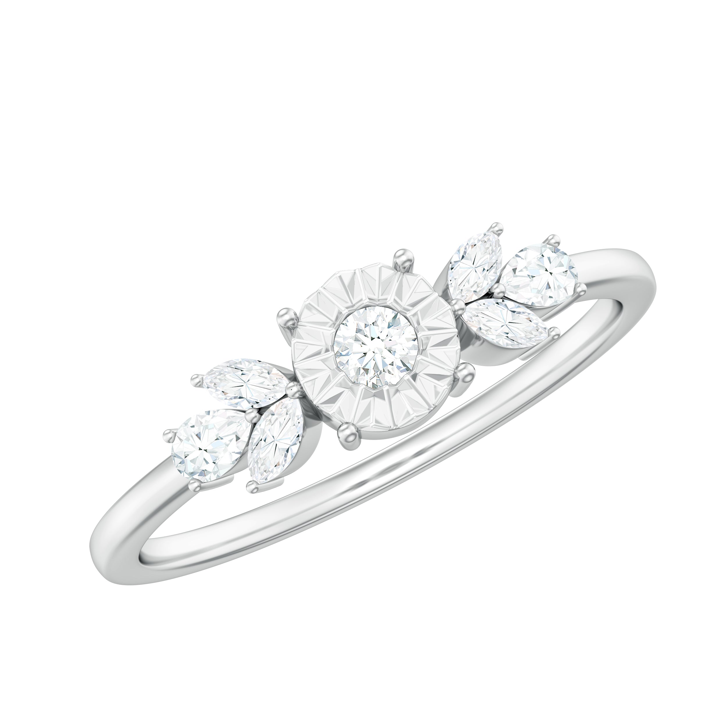 Capture her heart with this gorgeous Promise Ring, featuring a leaf motif and a dazzling diamond center stone surrounded by a miracle plate in an illusion setting. Made from solid gold, this leaf-shaped ring is perfect for a woman born in April.
