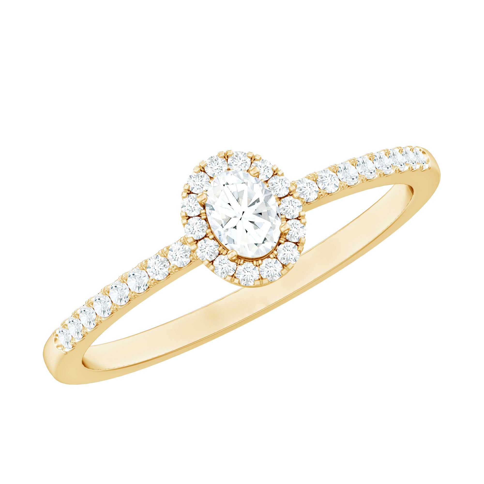 0.50 CT Oval Cut Diamond Halo Engagement Ring in Gold
