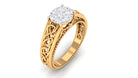 This Diamond Cluster Ring is a stunning piece of jewelry that is sure to make a bold style statement. Made with yellow, white, and rose gold, the ring features a round cluster of diamonds at its center and an interlocking filigree design with beads that adds to its beauty. The combination of gold and diamonds make it an ideal gift for an anniversary or any special occasion. The ring is sure to add some shine to any outfit.