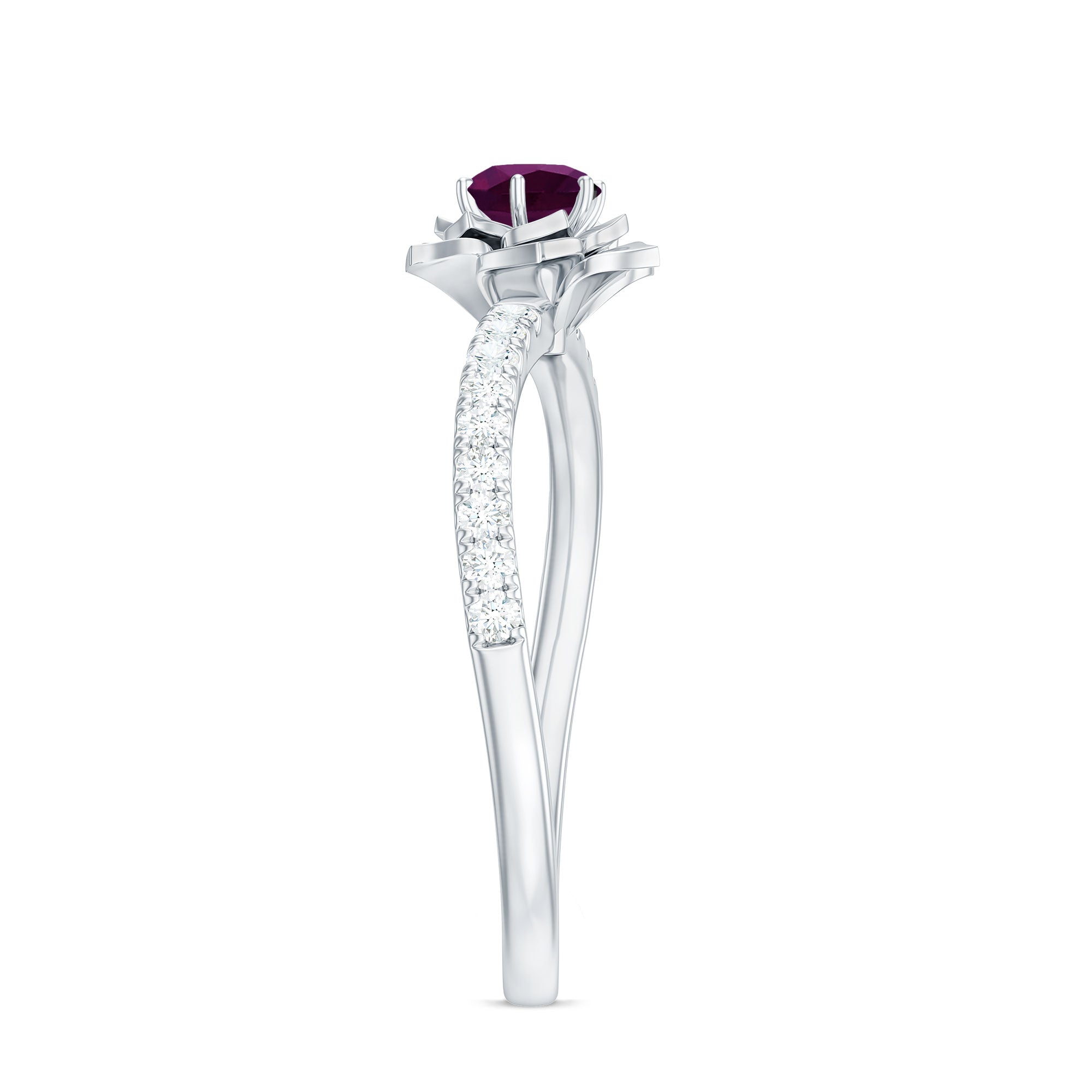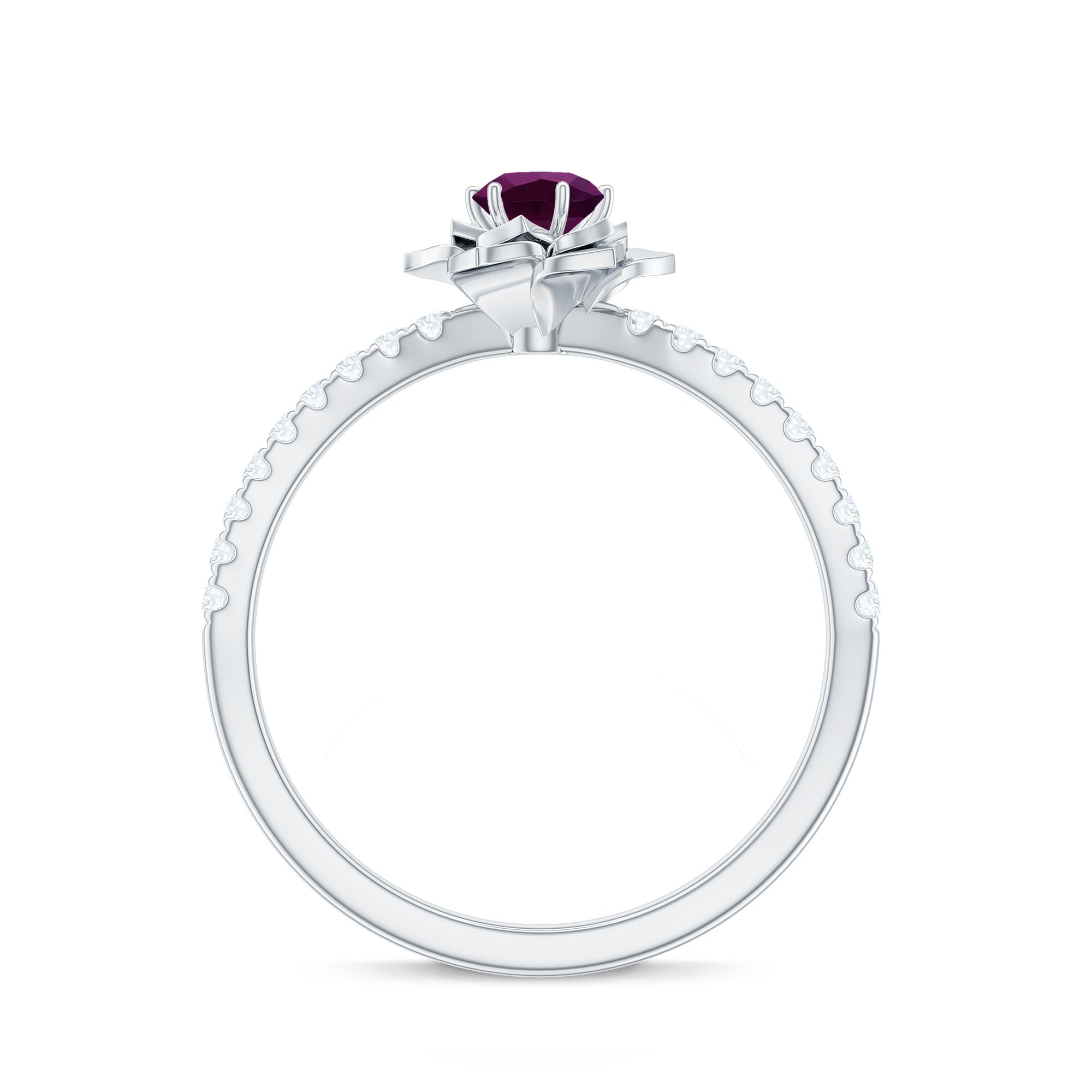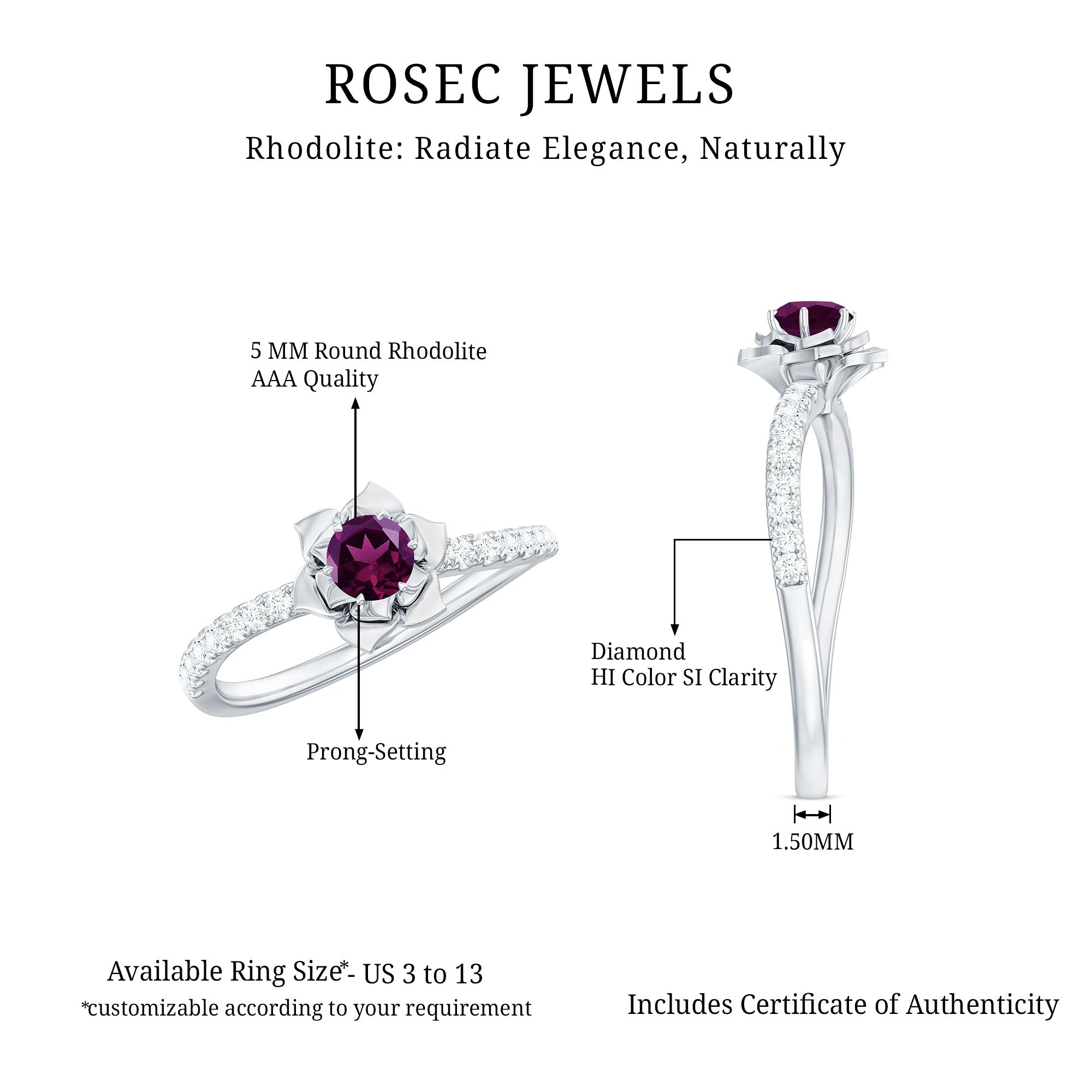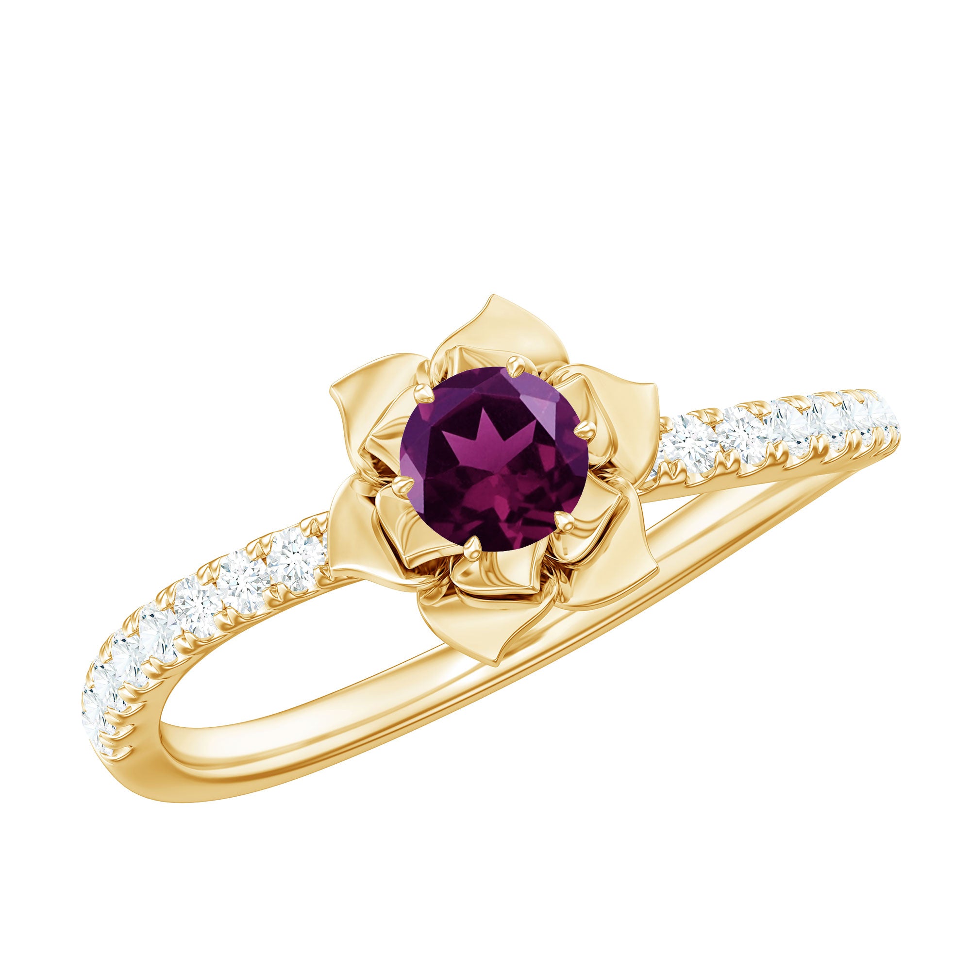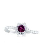 0.50 CT Real Rhodolite Floral Engagement Ring with Diamond Side Stones