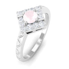 0.50 CT Rose Quartz Minimal Textured Ring with Diamond Accent