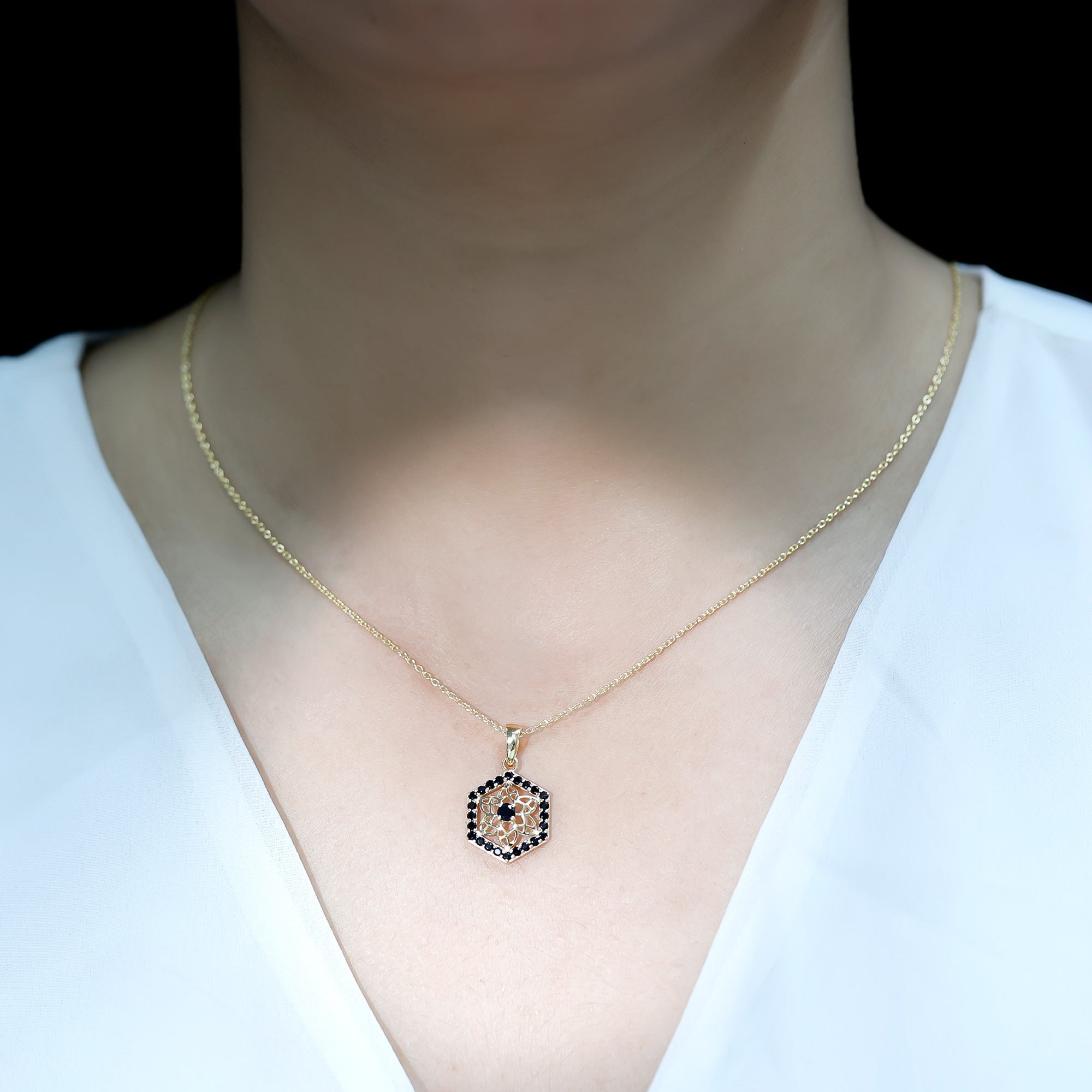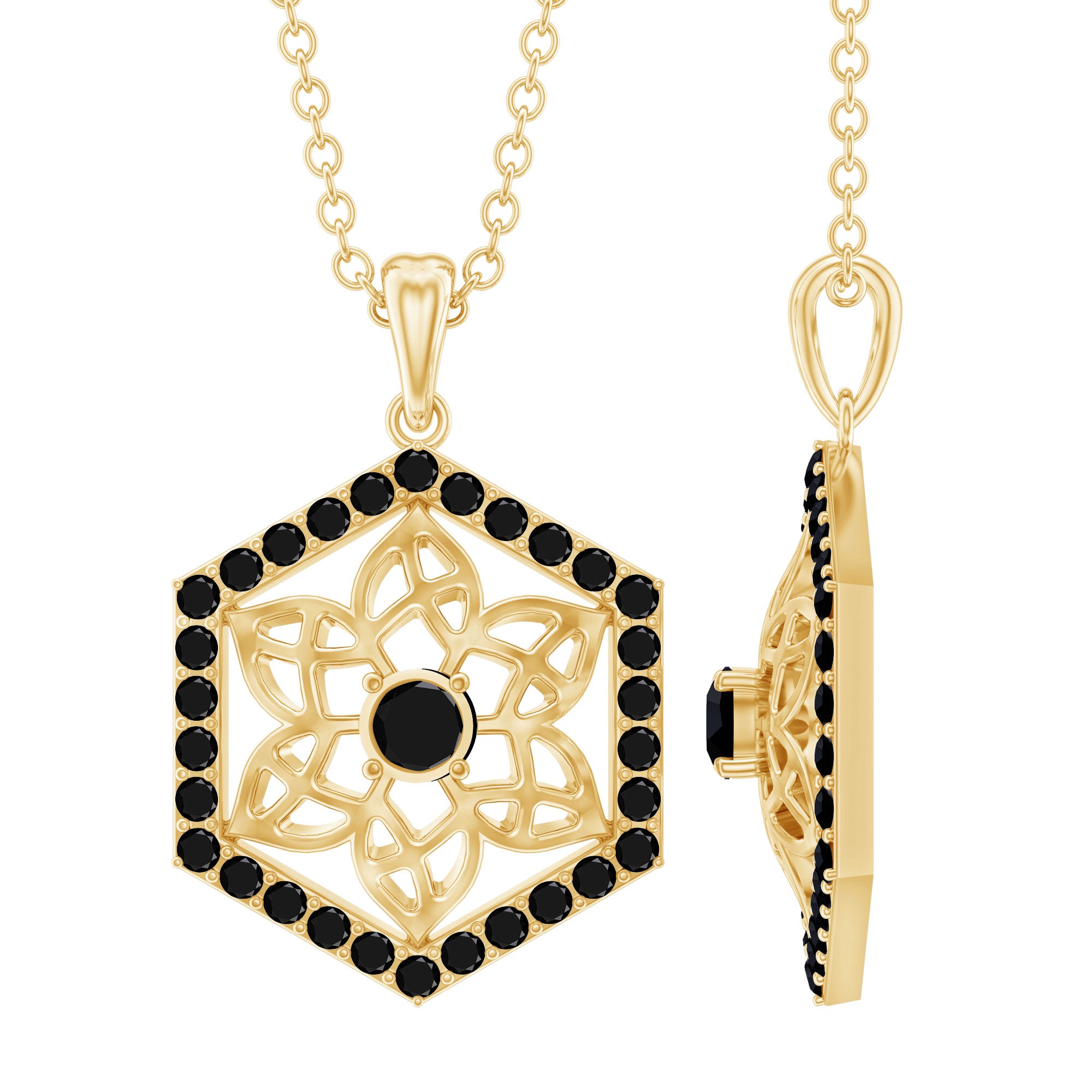 0.50 CT Round Cut Black Onyx Flower Pendant in Gold
