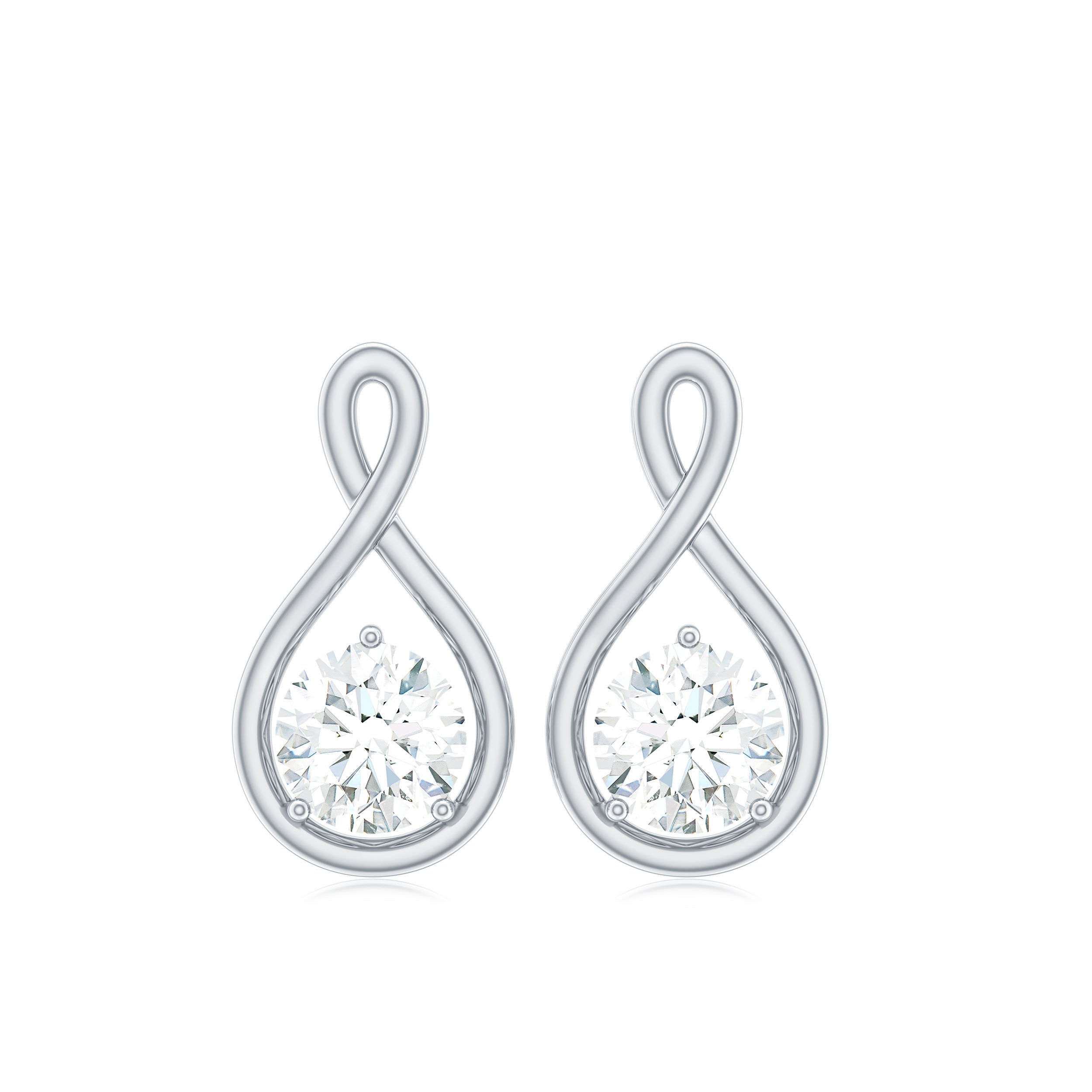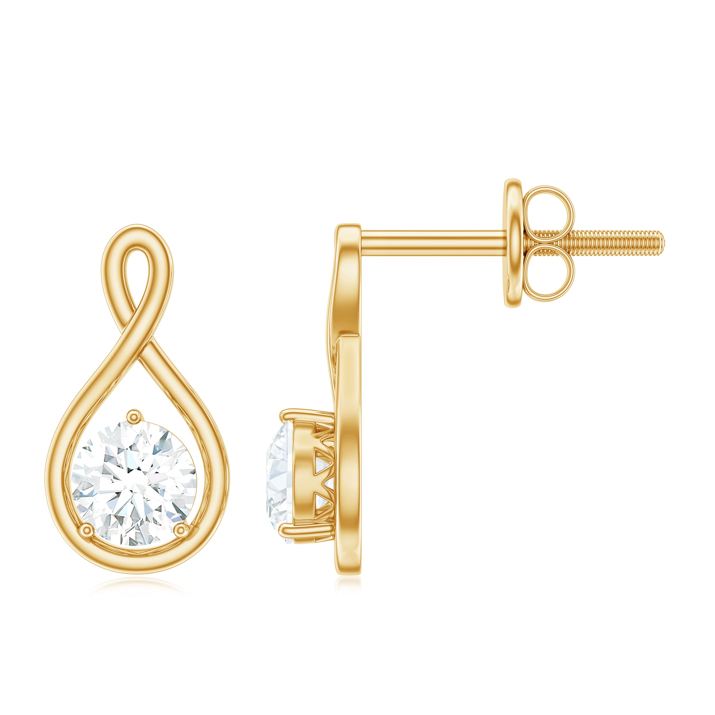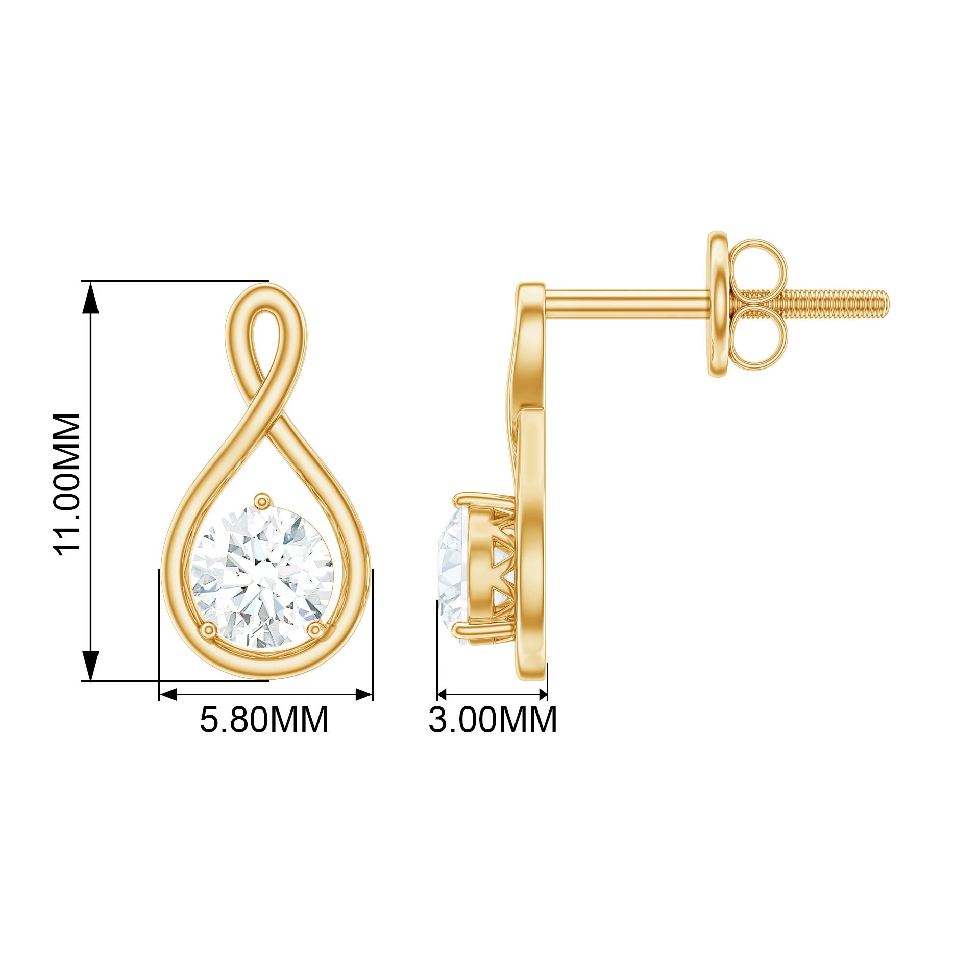 This Infinity Pattern Stud Earrings embellished with Brilliant Round Cut Moissanite is set as Solitaire in a Prong Setting, crafted in a Solid Gold.