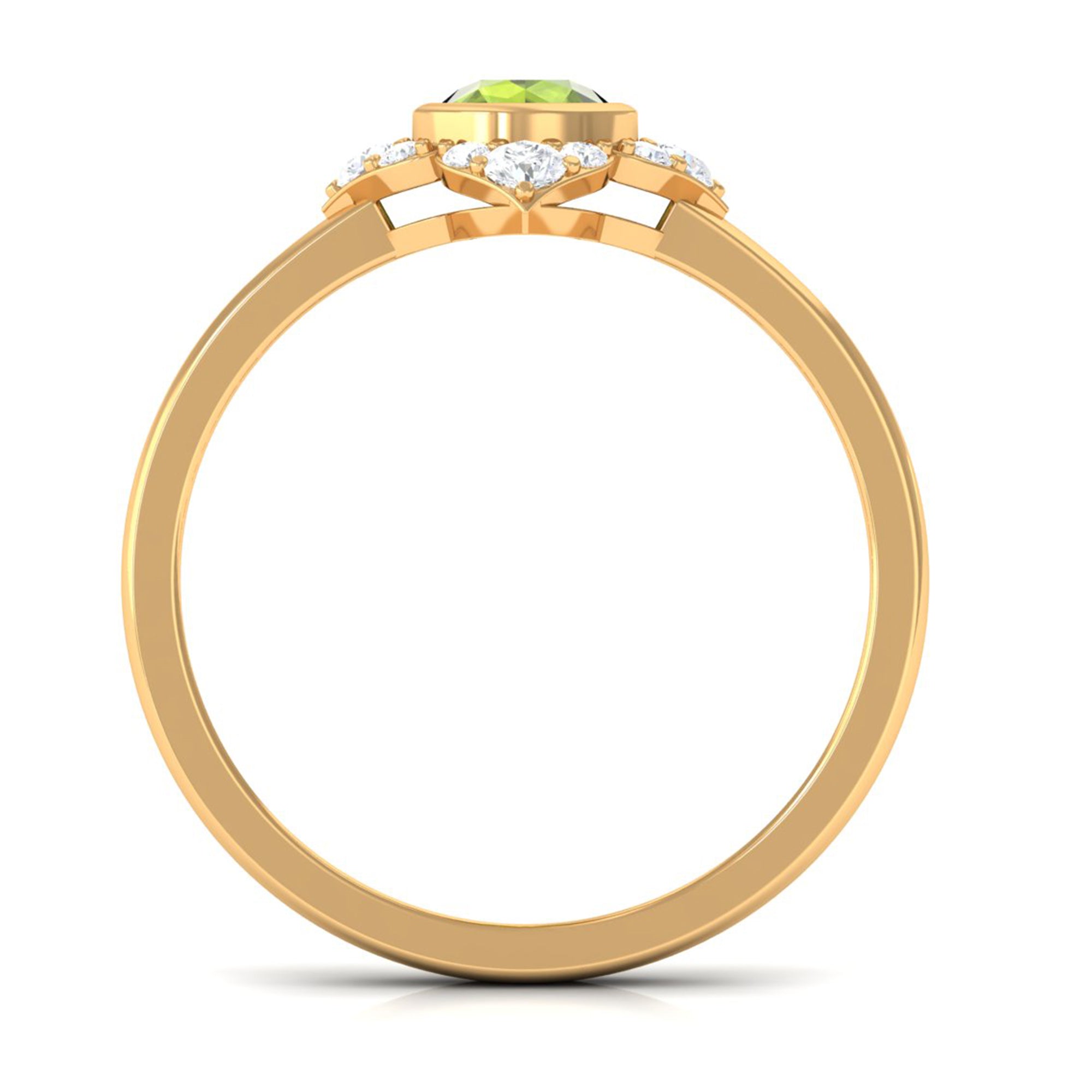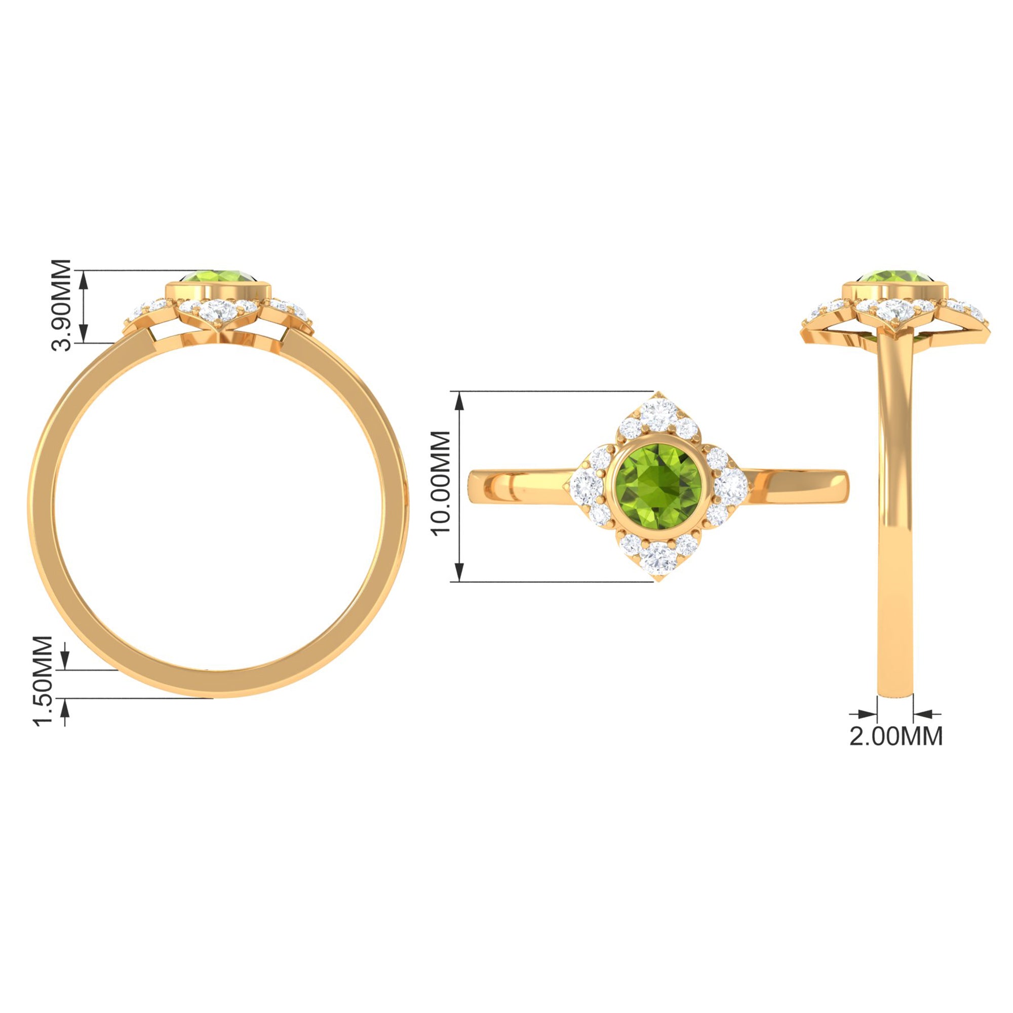 Surprise her with this stunning Vintage Engagement Ring to symbolize your eternal love. Embellished with Round Shape Peridot in Bezel Setting with Diamond Accent, this Flower Engagement Ring is crafted with Gold for a luxurious appearance. This Peridot and Diamond Ring will add more shine to her look and fill her day with compliments.