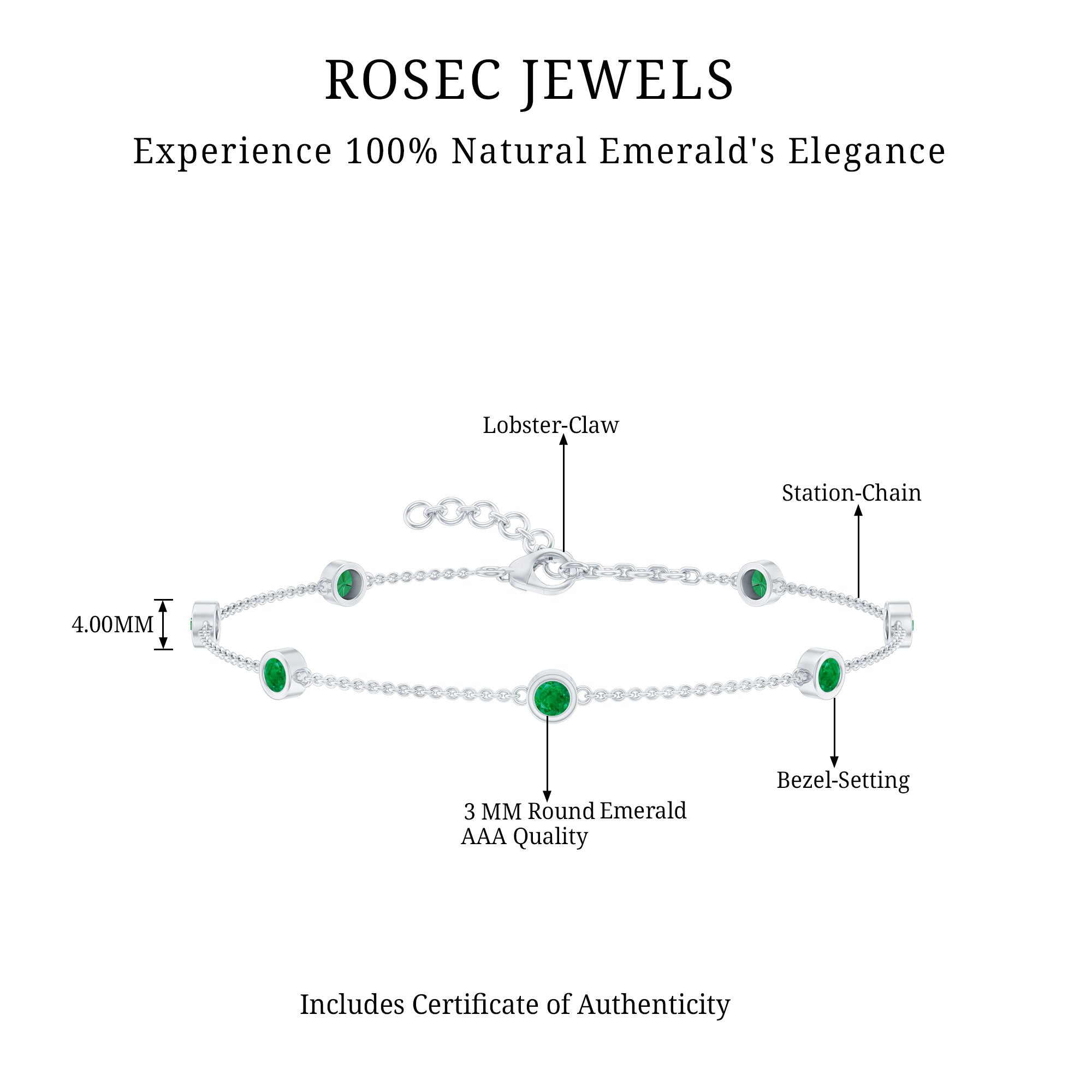 0.75 CT Bezel Set Emerald Seven Stone Station Chain Bracelet