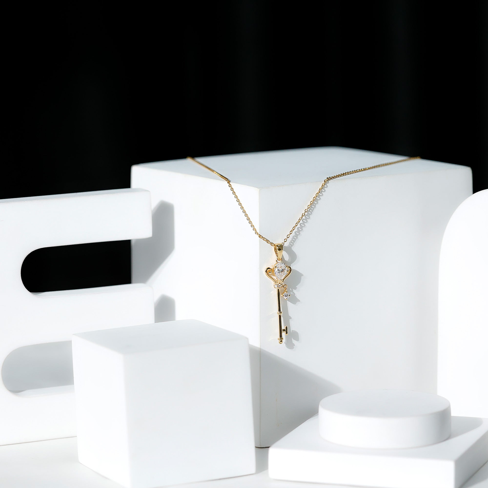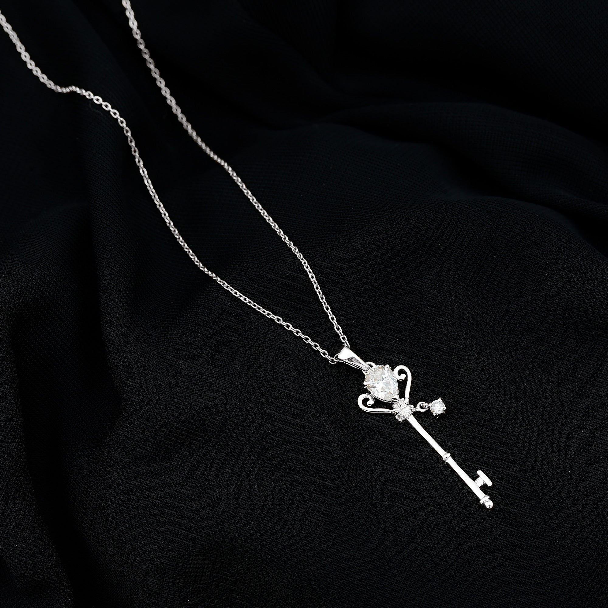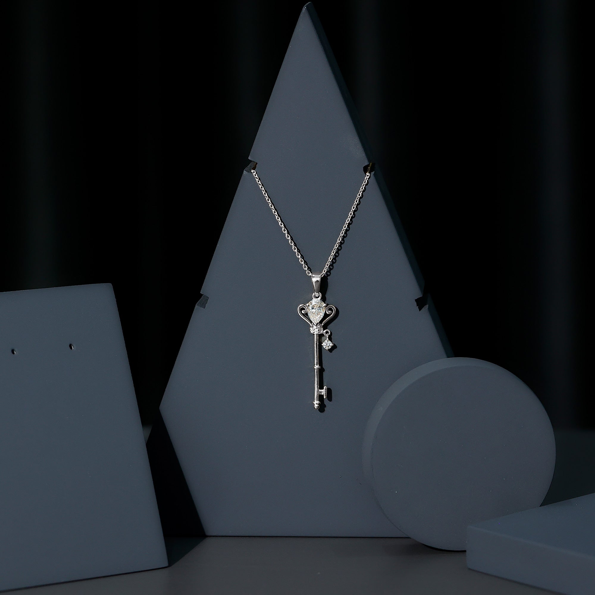0.75 CT Elegant Moissanite Key Pendant in Prong Setting