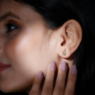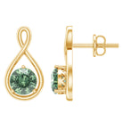 These Infinity Pattern Stud Earrings embellished with Round Cut Green Sapphire is set as Solitaire in a Prong Setting, crafted in a Solid Gold.