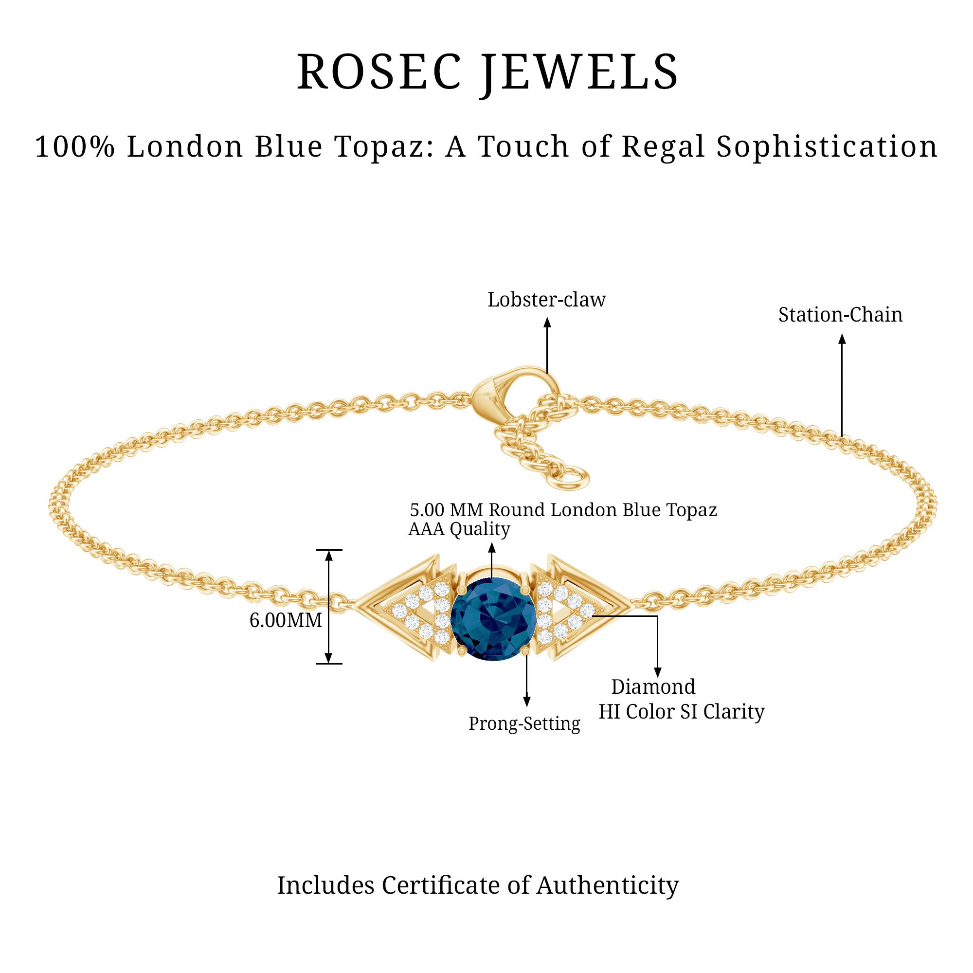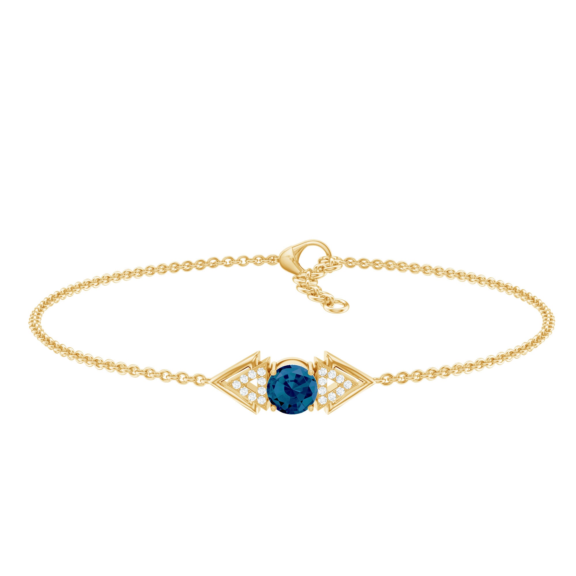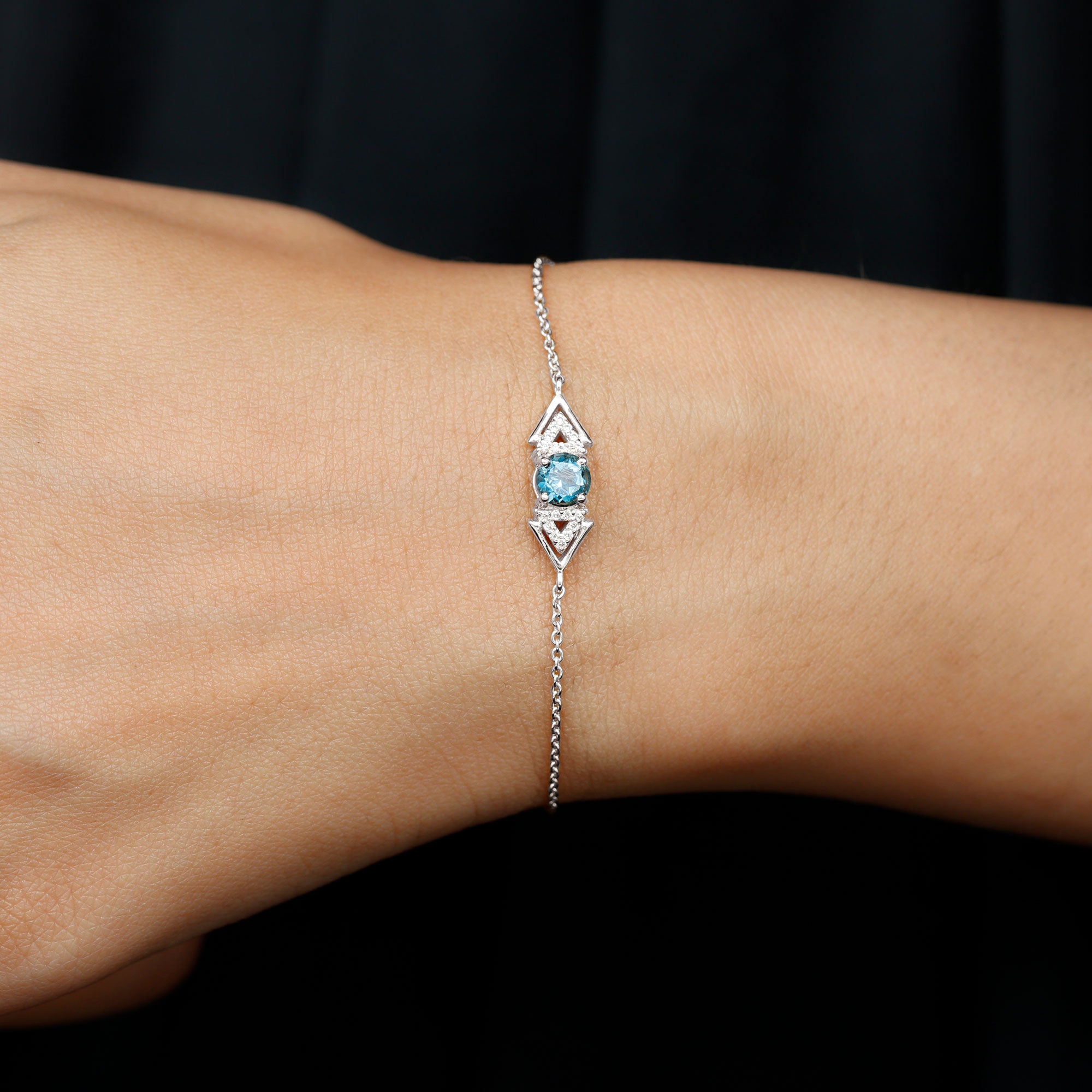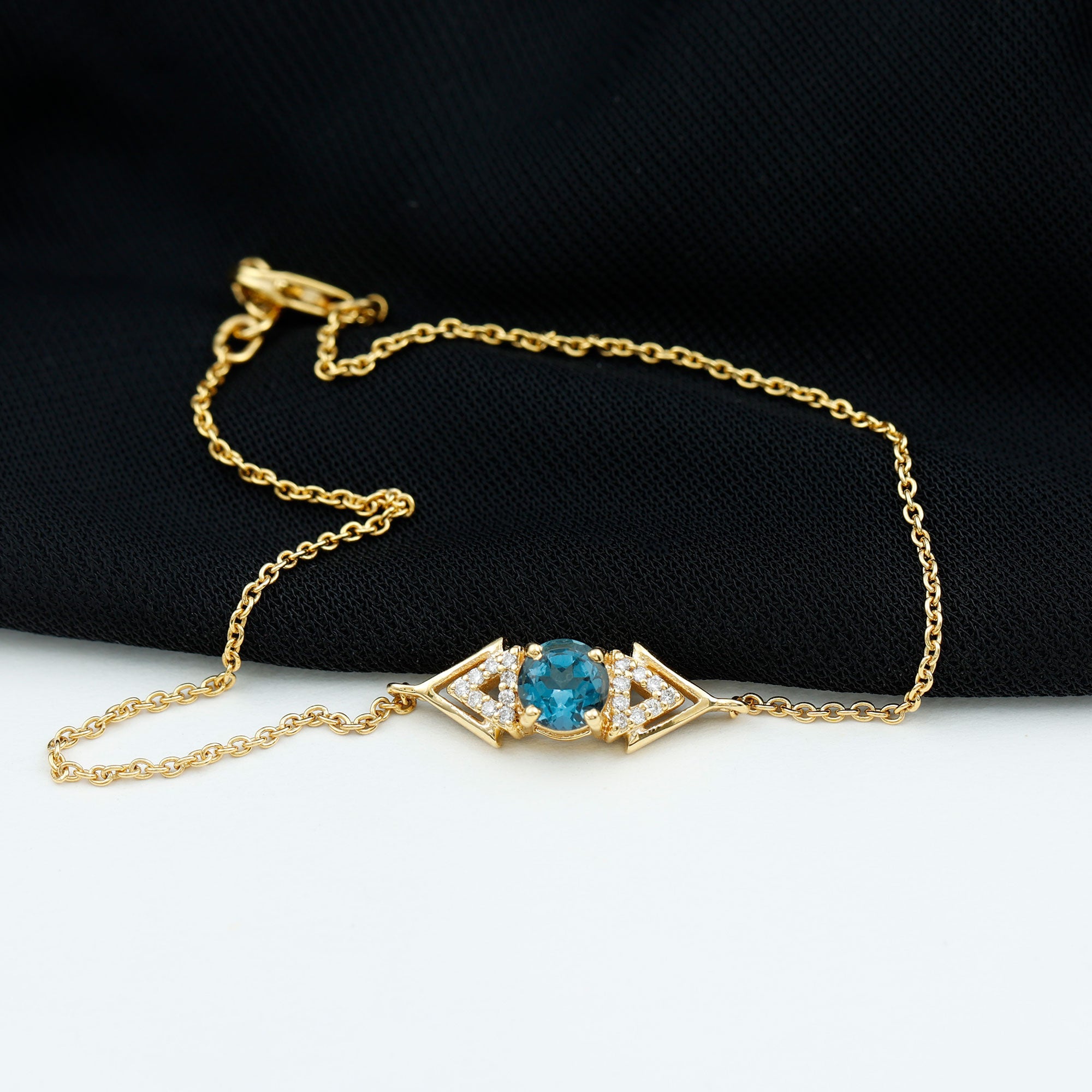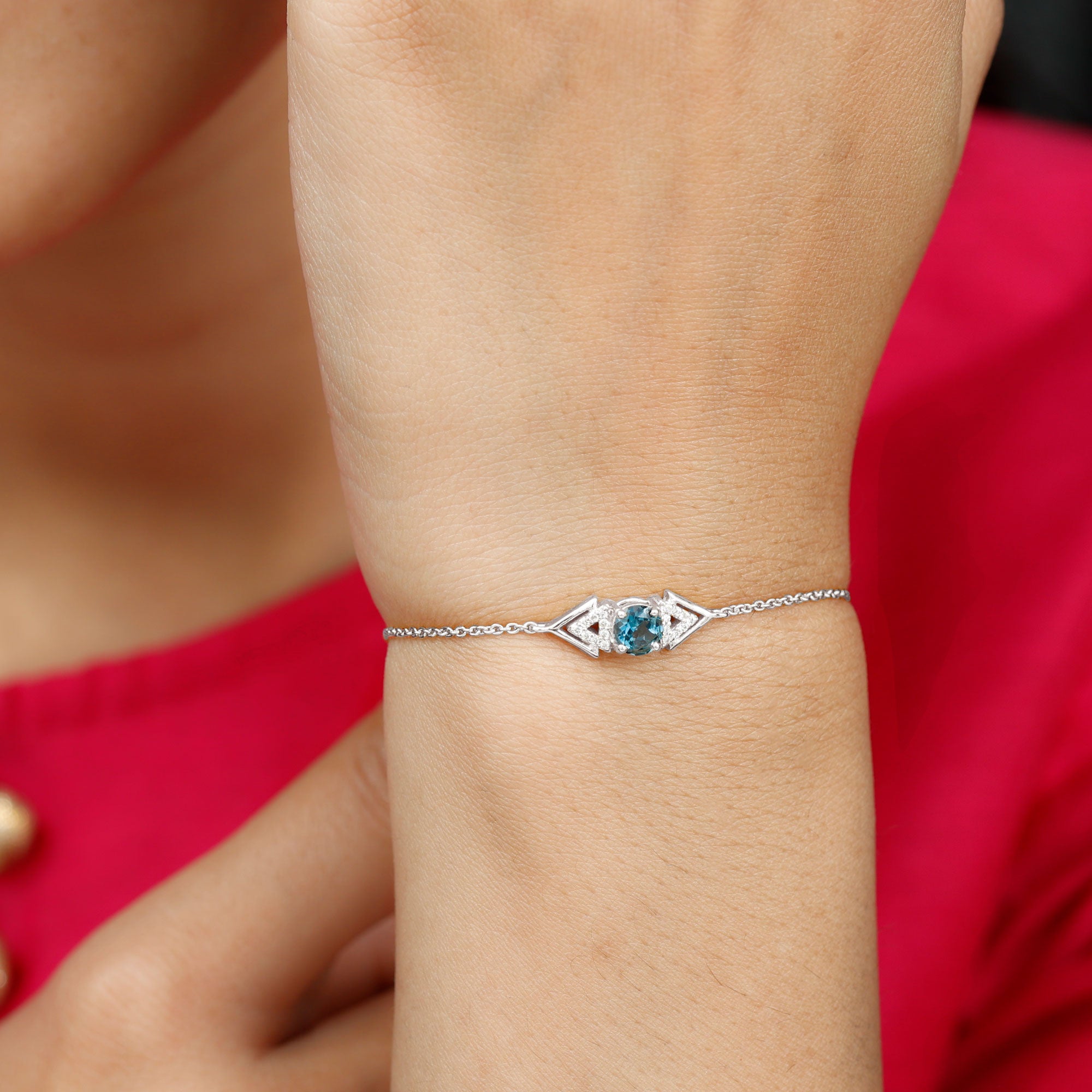 Make her feel special on this Valentines Day by gifting this Beautiful Geometric Chain Bracelet engrafted with Round Shape London Blue Topaz Gemstone is set at the center in a Prong Setting with Diamond Accents embellished in a Triangular shape.