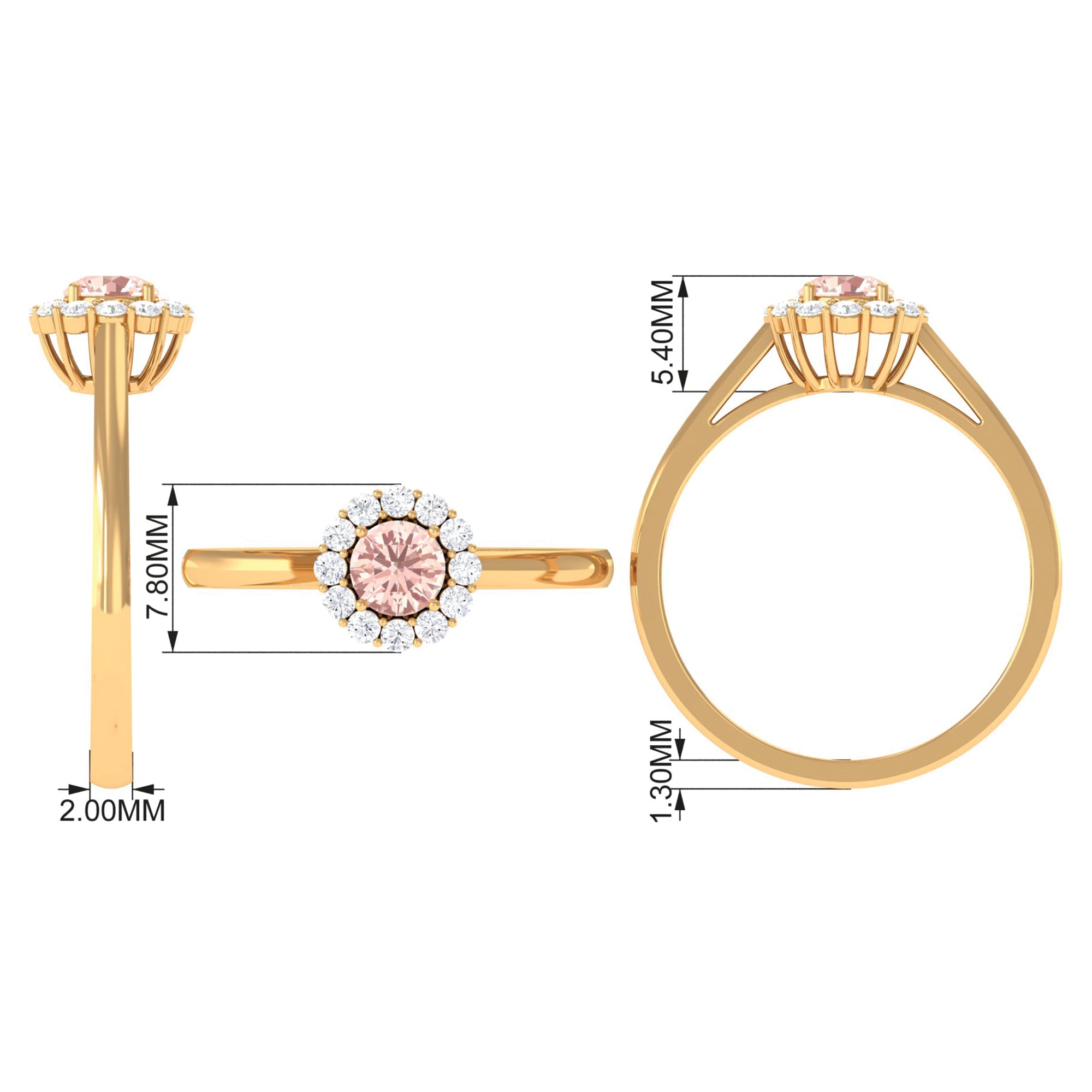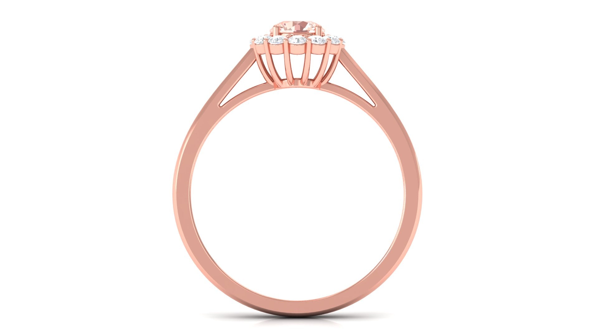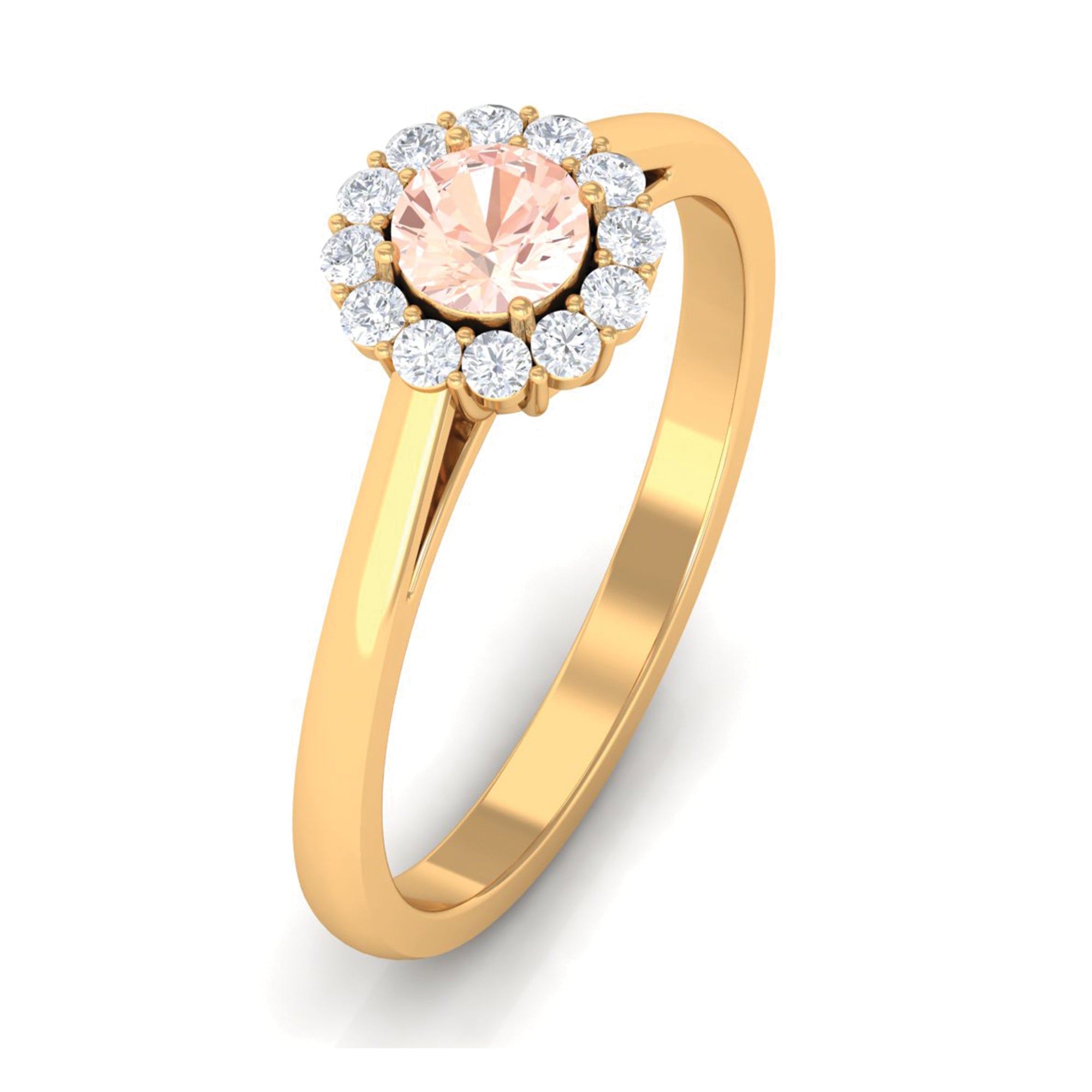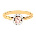 Adorn this simple yet elegant Engagement Ring on your big day and grab everyones attention. Embellished with Round Shape Morganite in Prong Setting along with Diamond Halo, this Morganite Engagement Ring is crafted with Solid Gold for an opulent appeal.