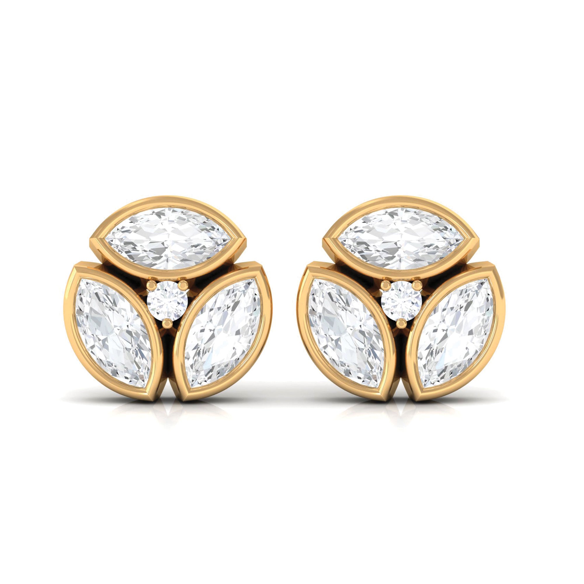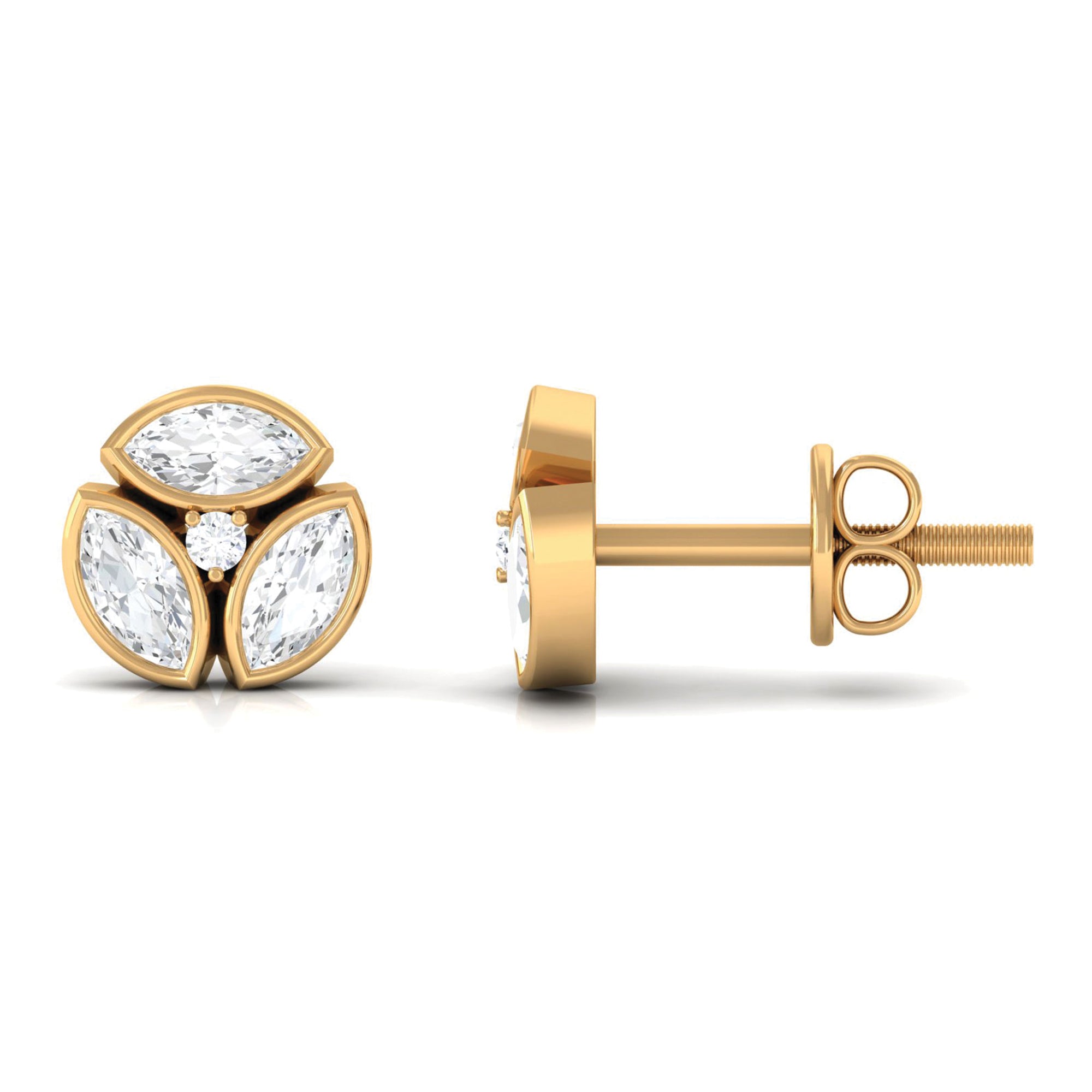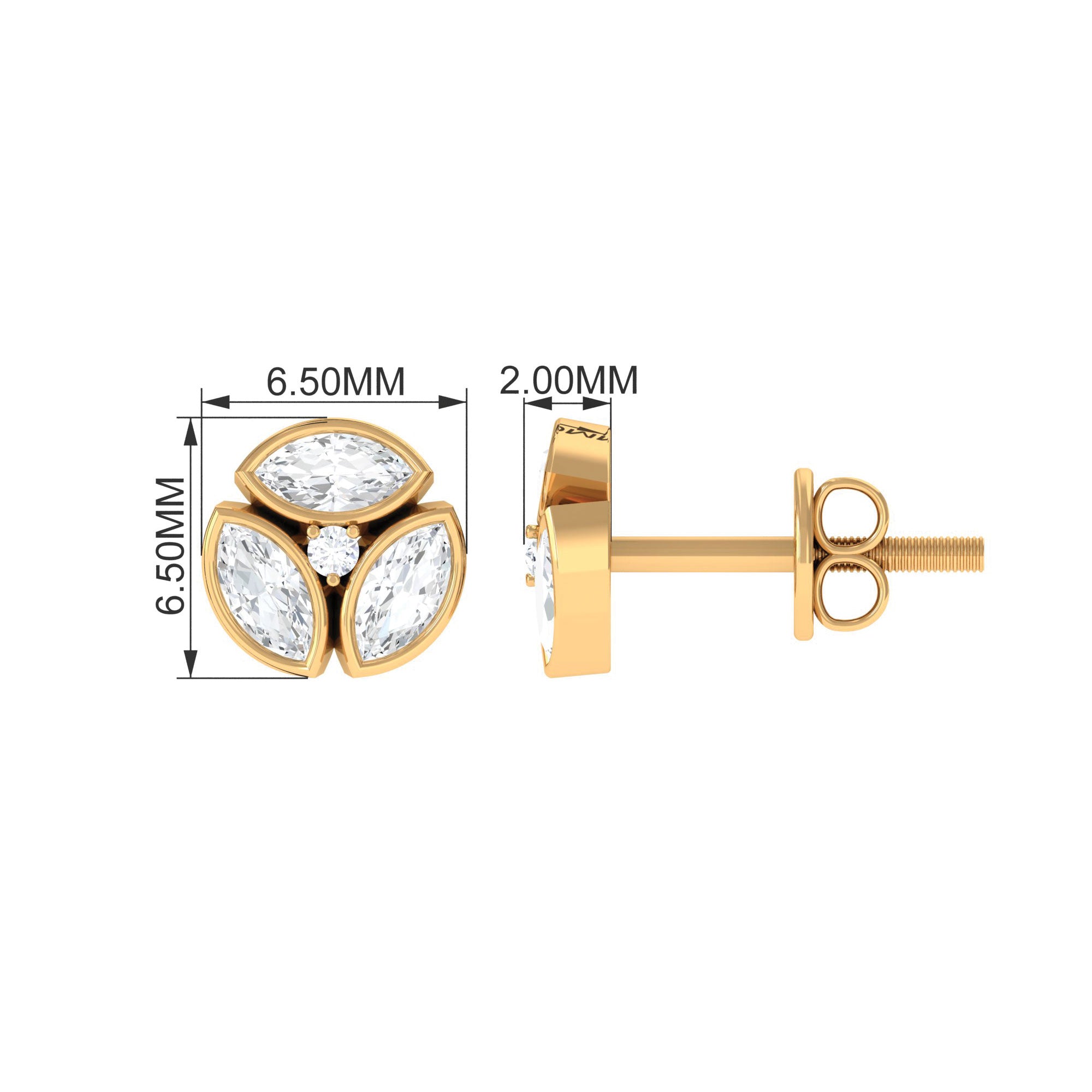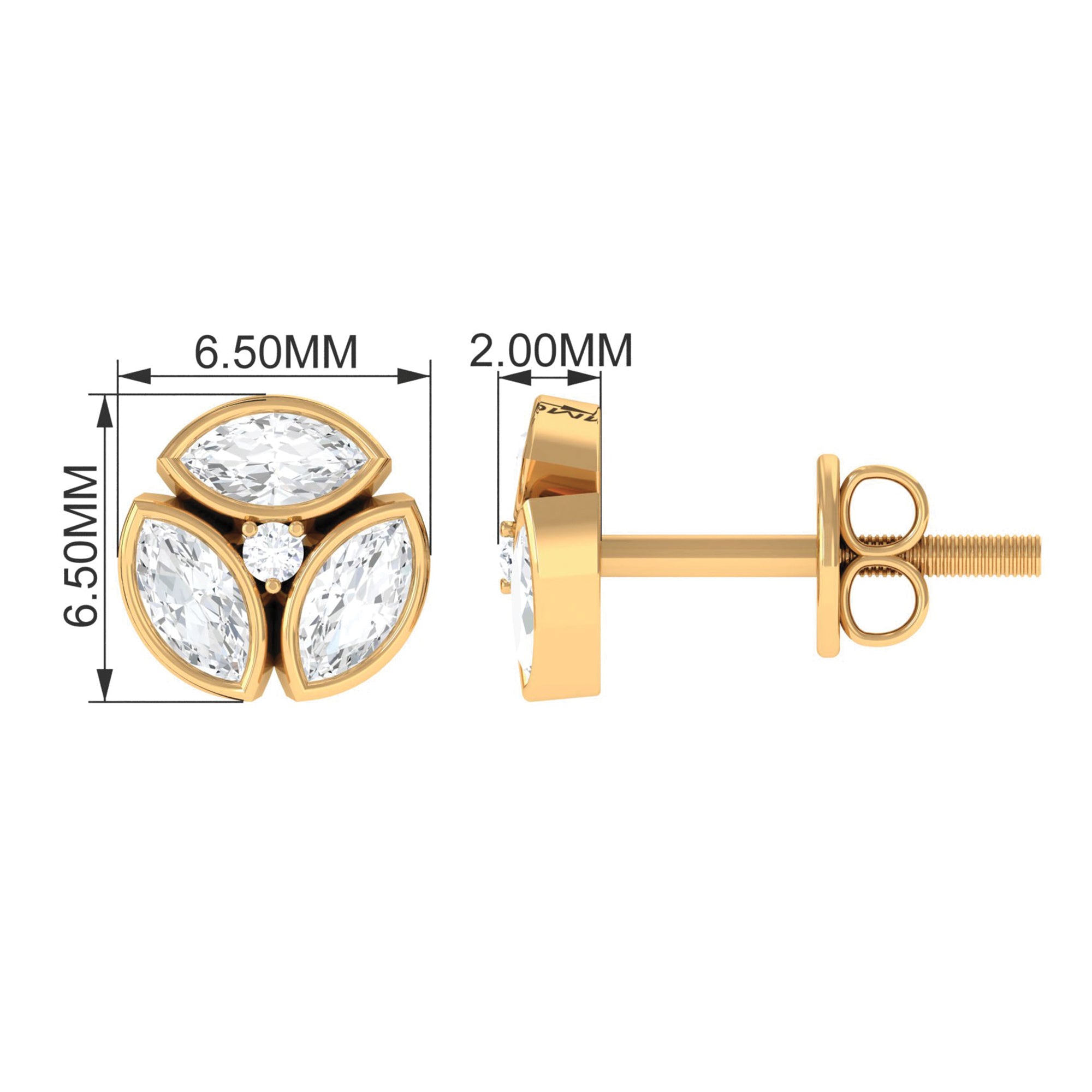 Jewelry has the power to be the one little thing that makes you feel unique. These Minimal Stud Earrings are embellished with Marquise and Round Cut Diamond in Bezel Setting. These Stud Earrings are available in solid gold. Tell your story by wearing these Beautiful Gemstone Stud Earrings that come with a Screw Back Finding.