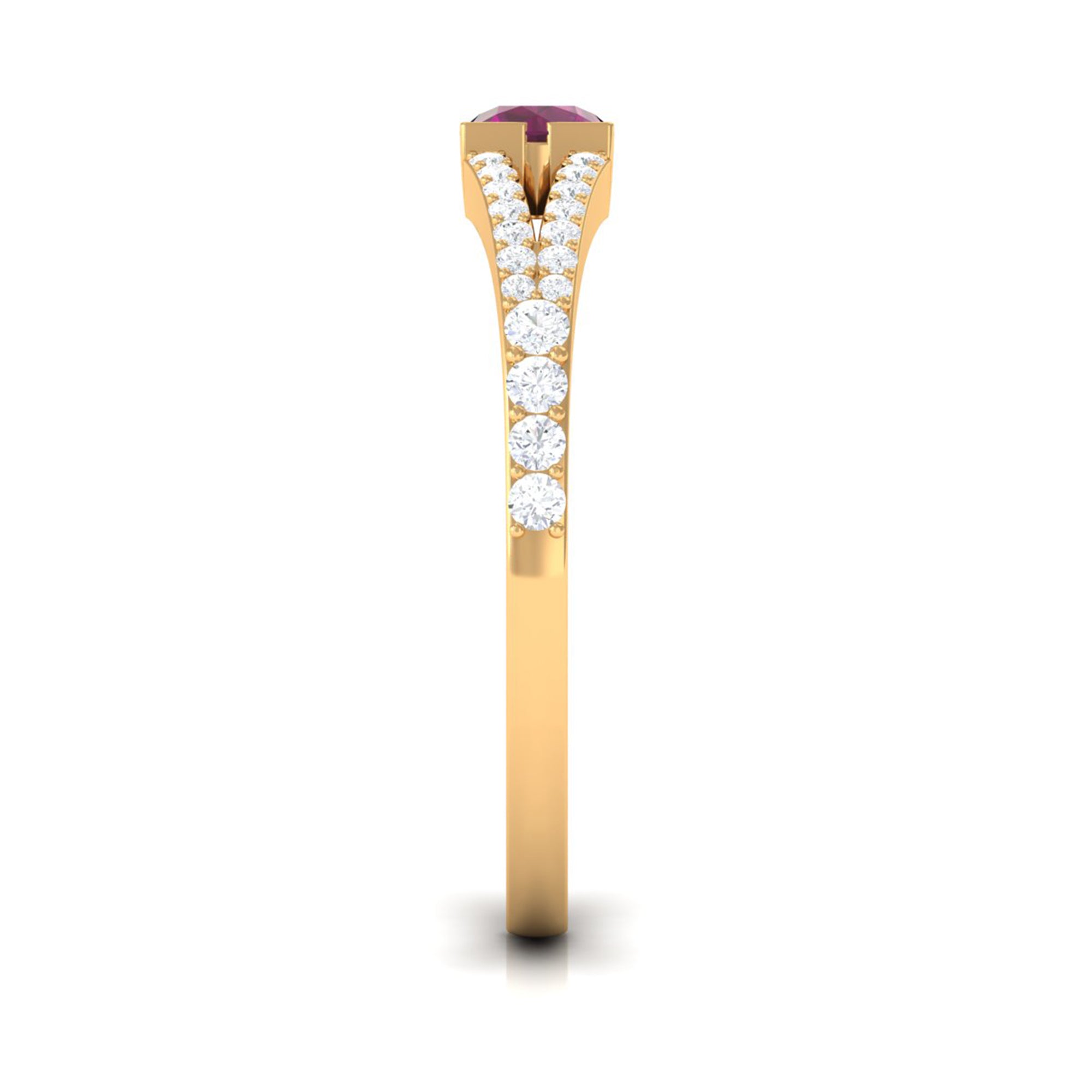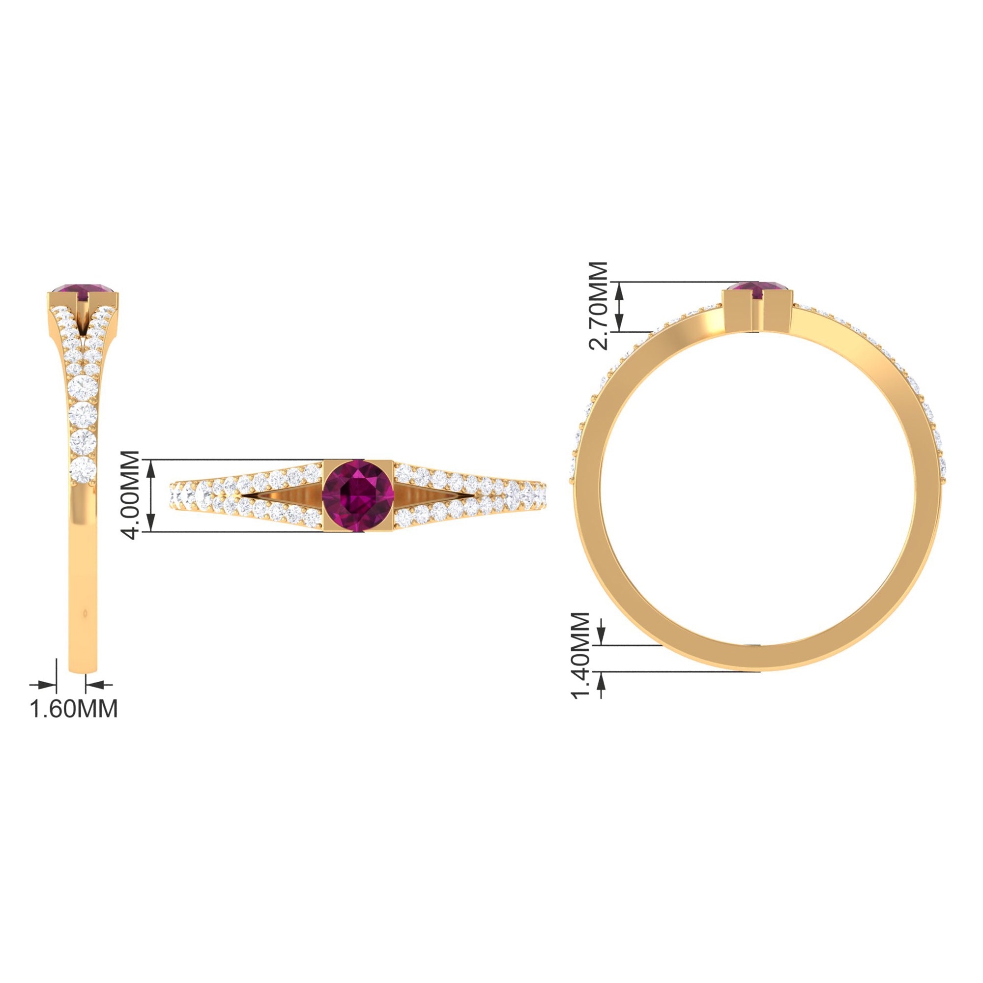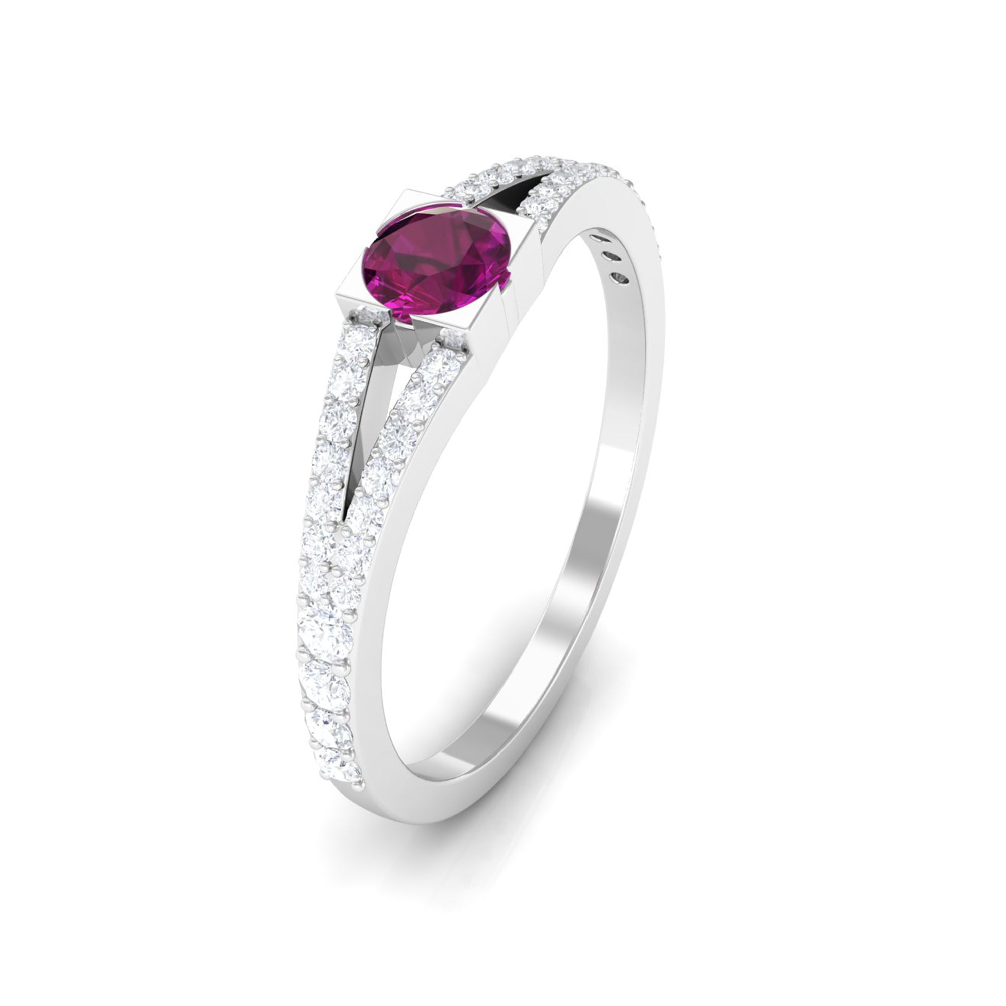 0.75 CT Natural Rhodolite Minimal Promise Ring with Diamond