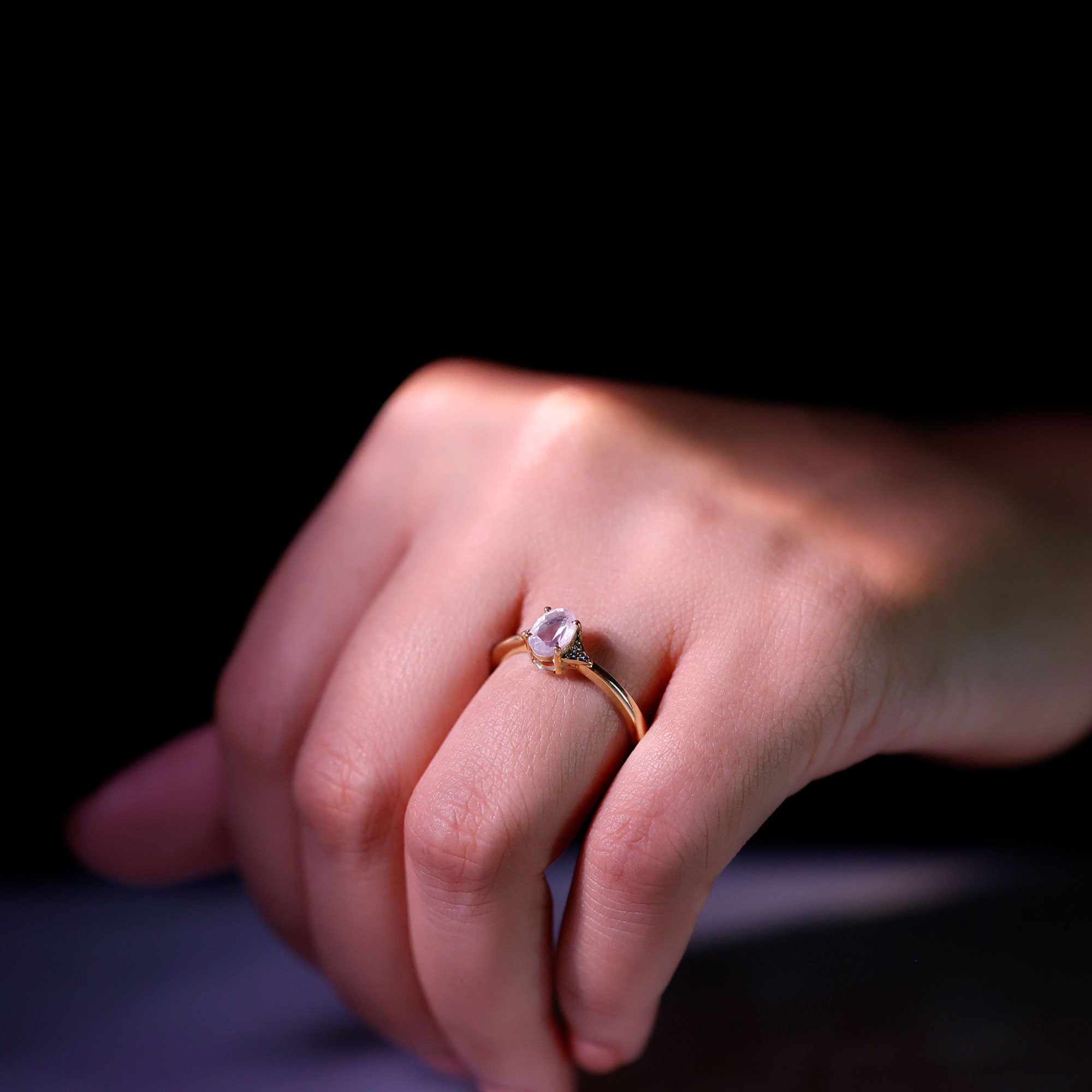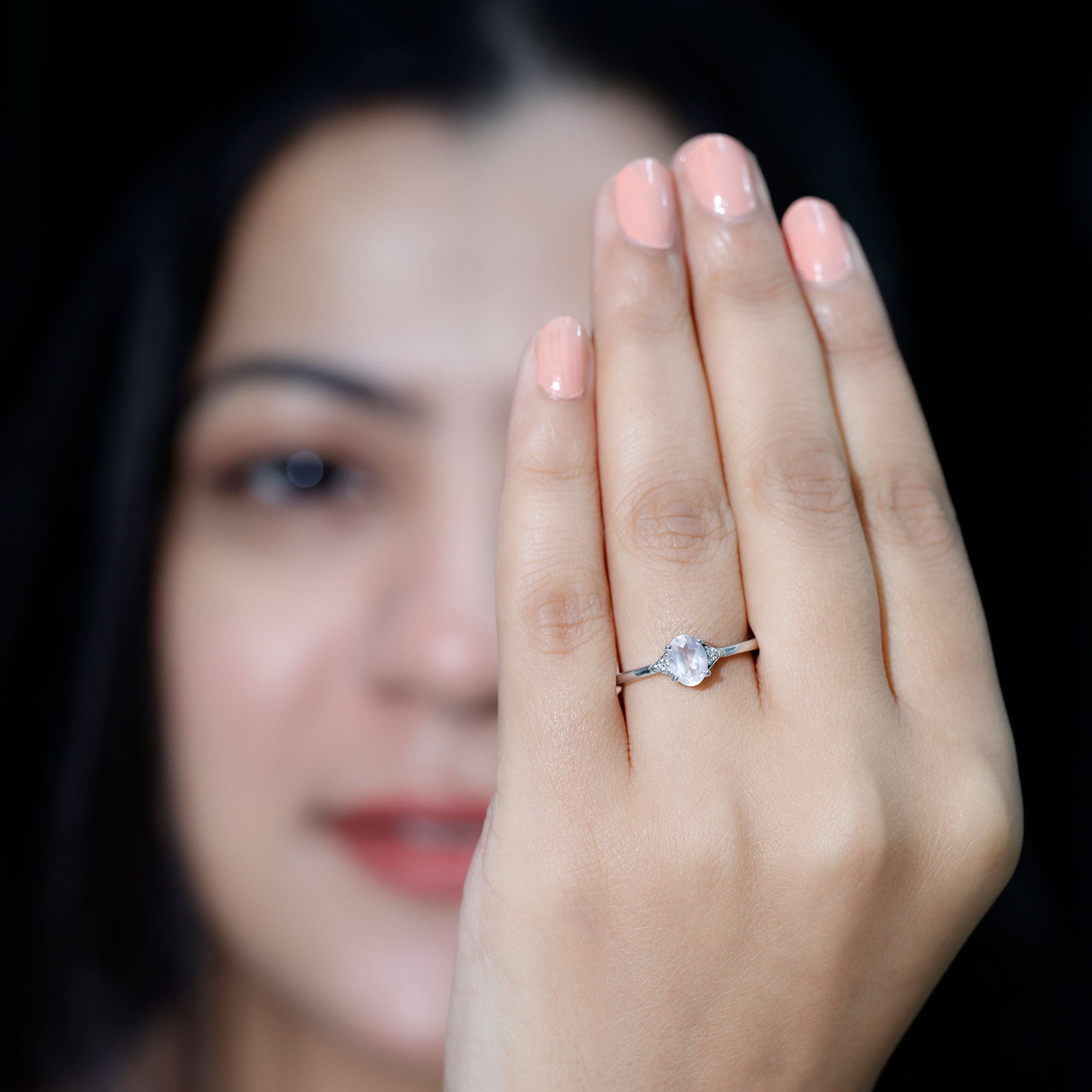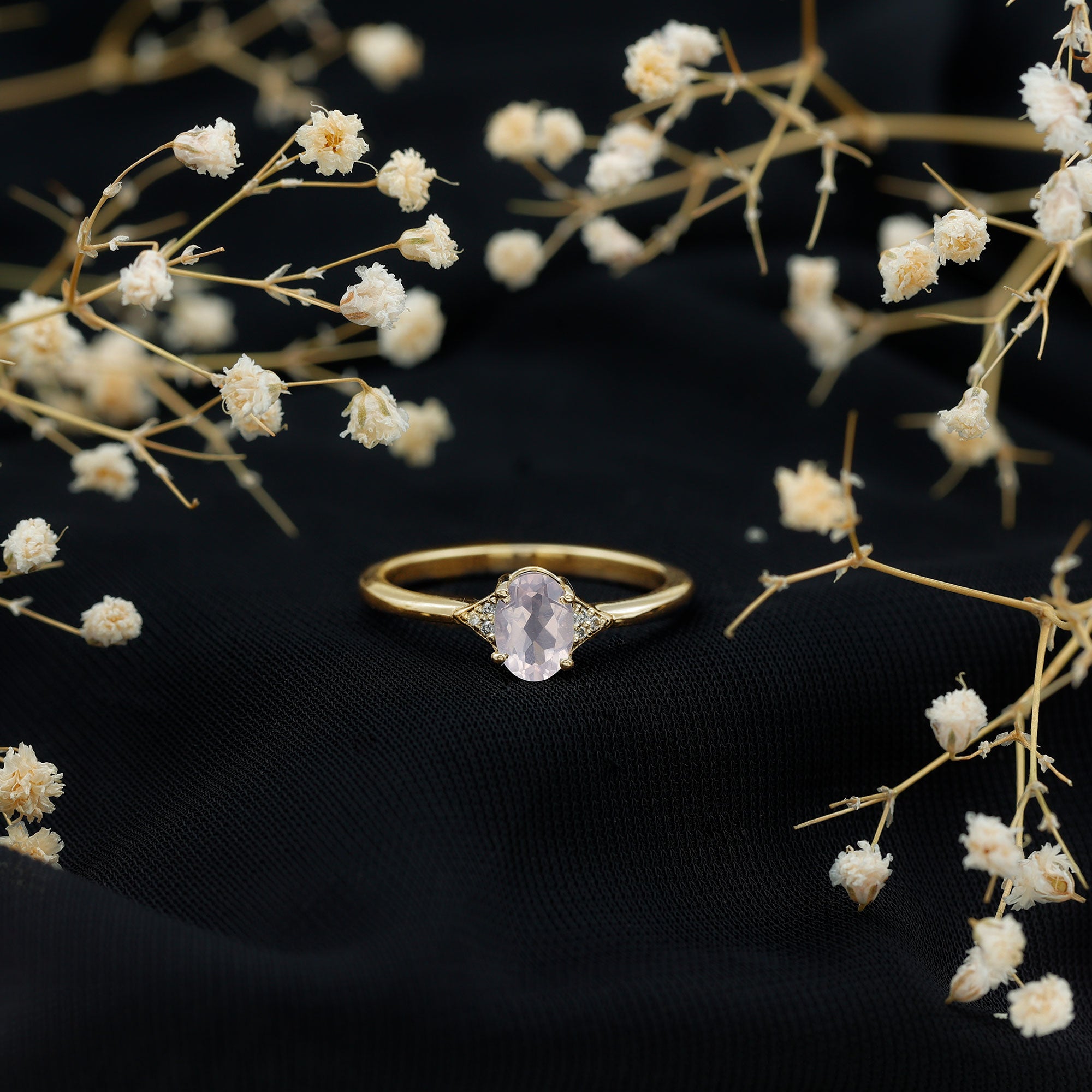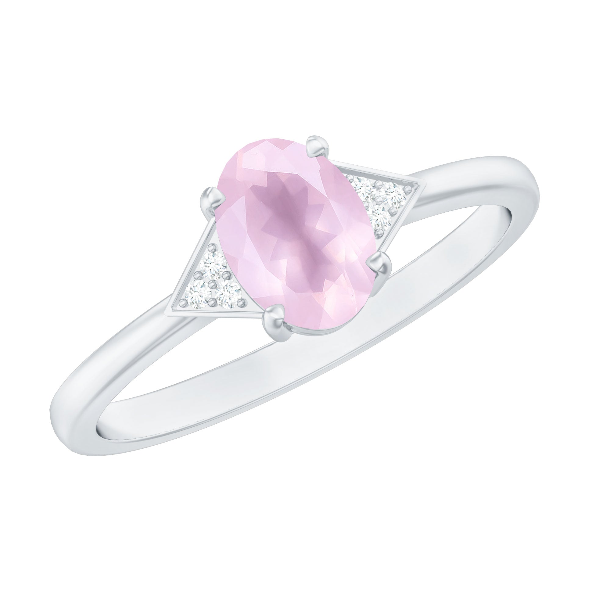 0.75 CT Oval Rose Quartz Solitaire Ring with Diamond Accent