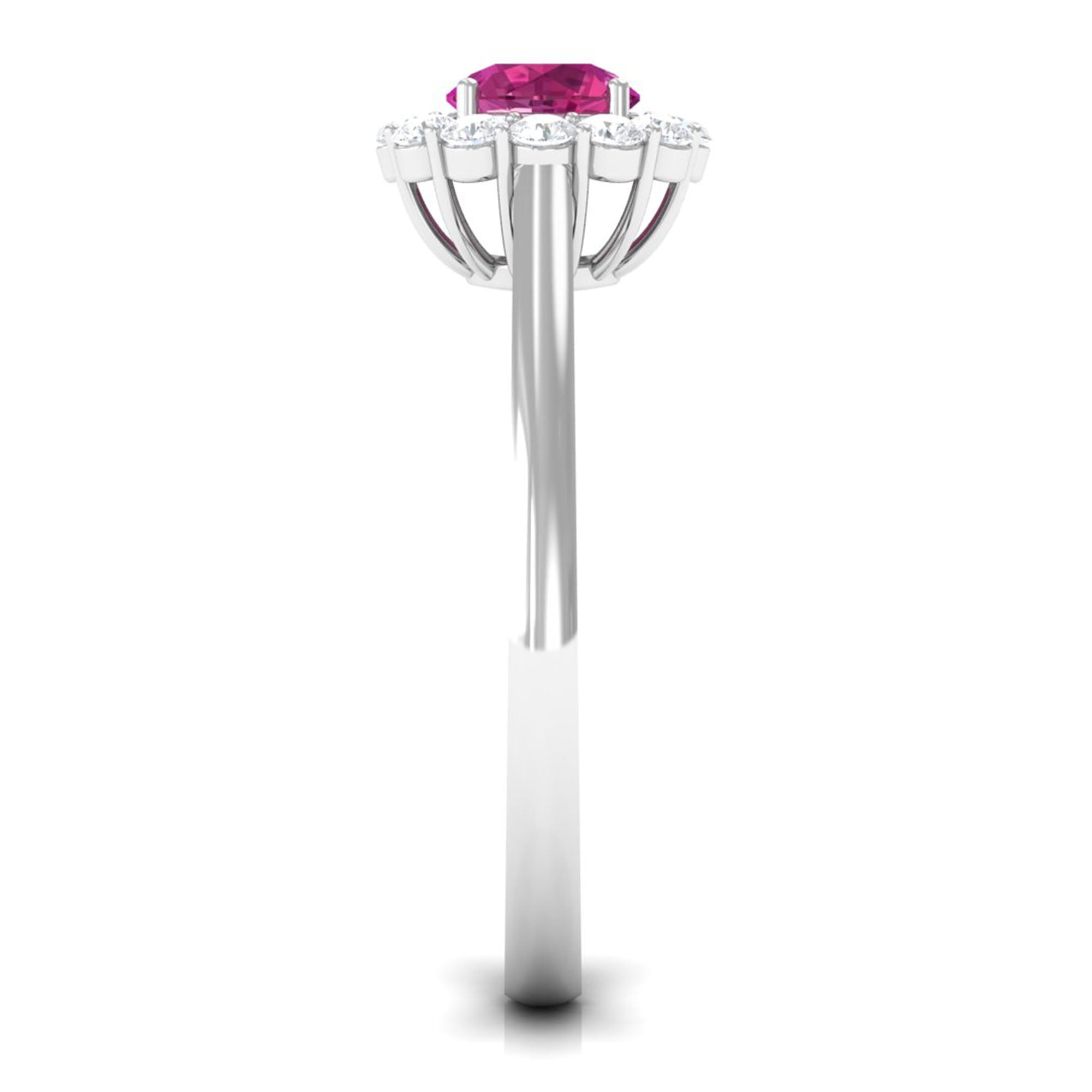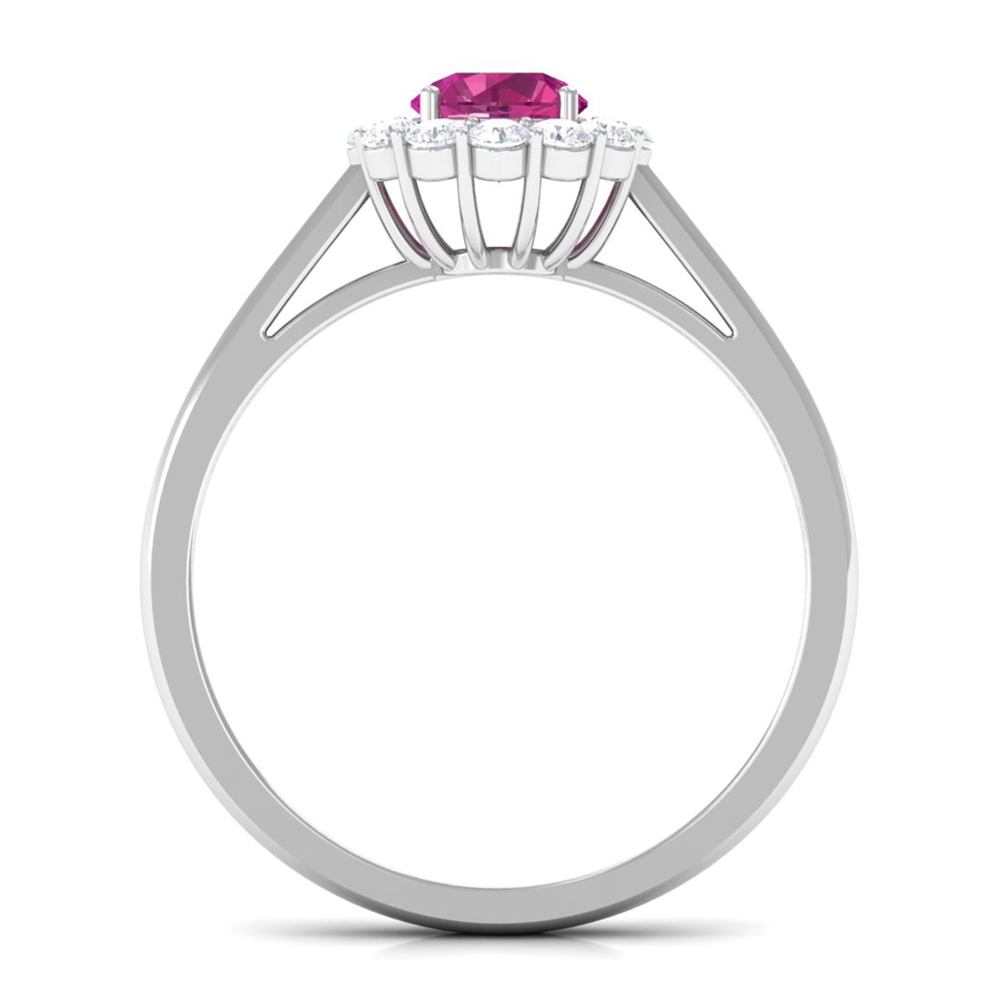 0.75 CT Pink Tourmaline and Diamond Floating Halo Engagement Ring