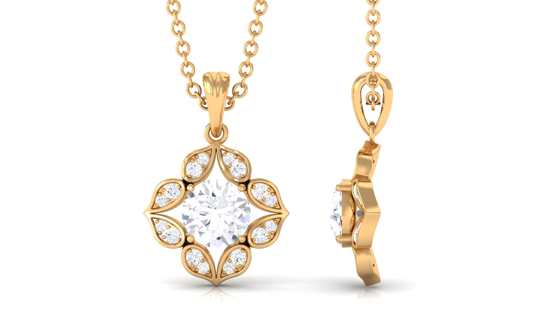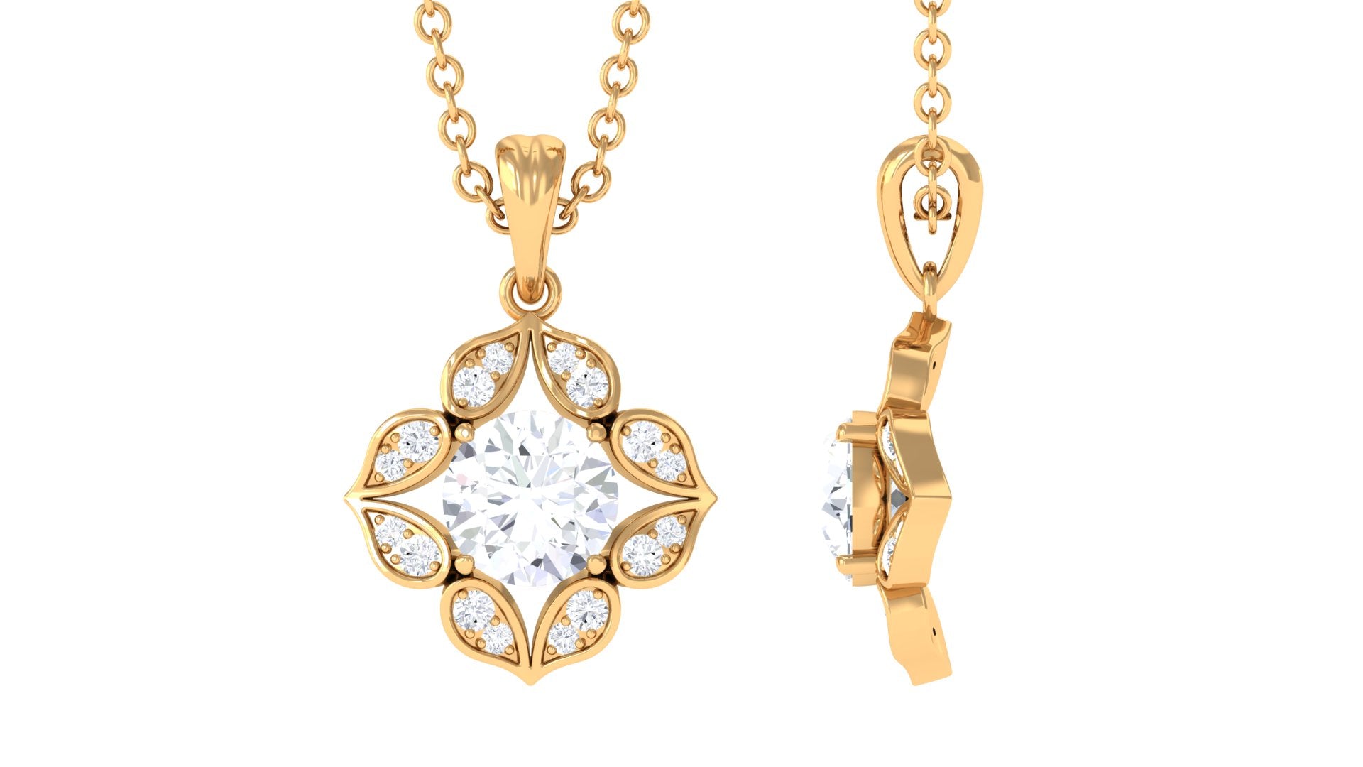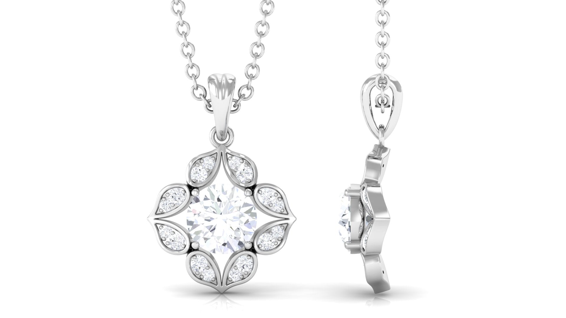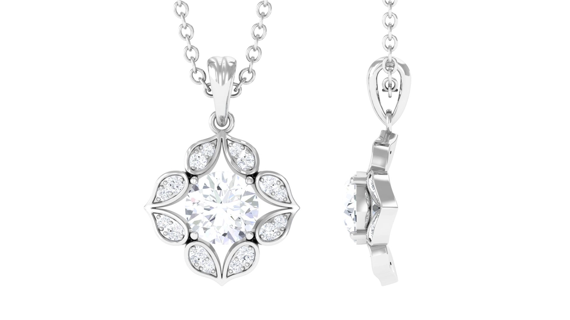 Enhance your charm with our Round Cut Moissanite Floral Inspired Pendant. A beautiful choice for a woman, especially for bridal occasions.