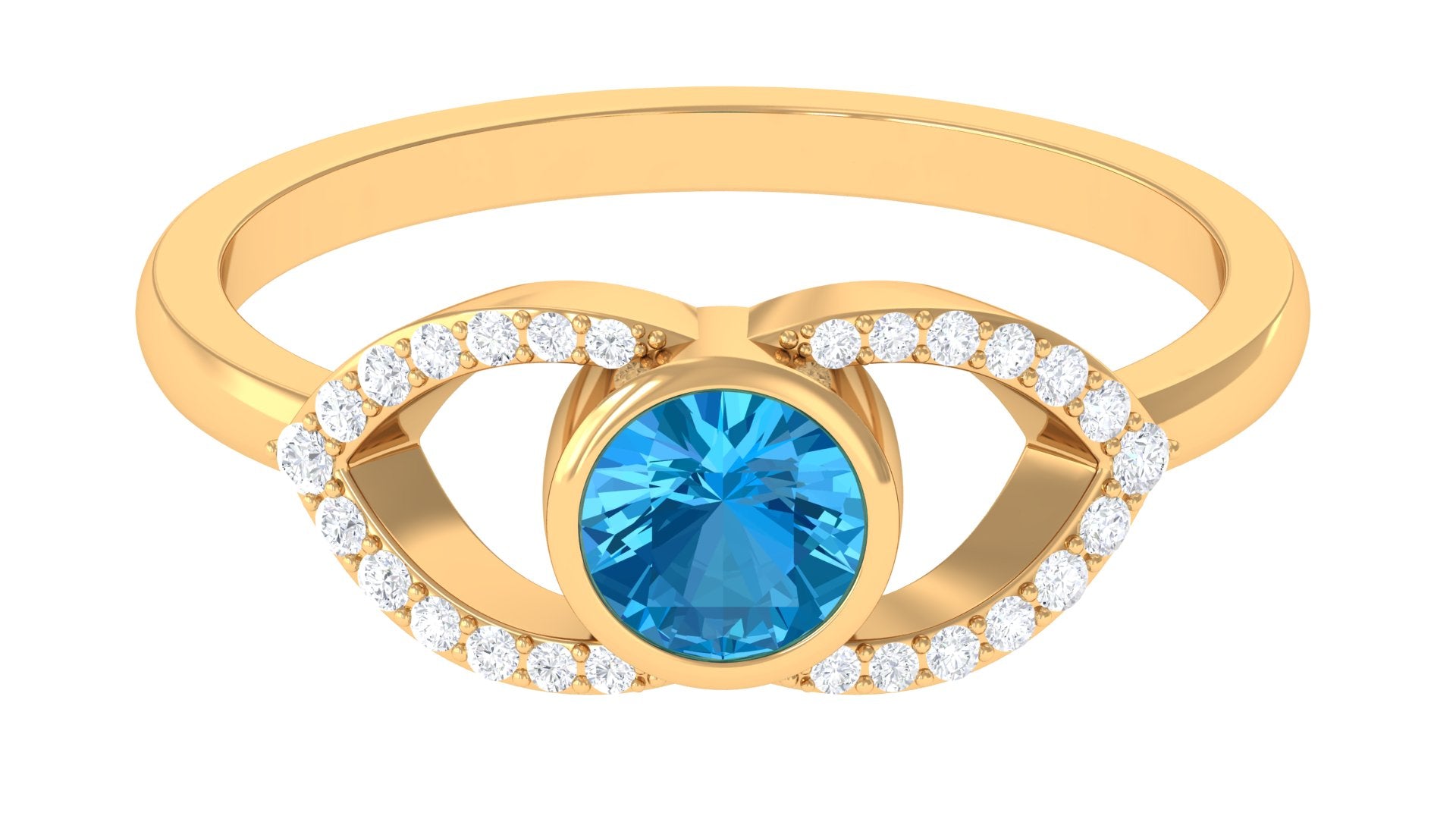 0.75 CT Swiss Blue Topaz Solitaire Ring with Diamond Accent