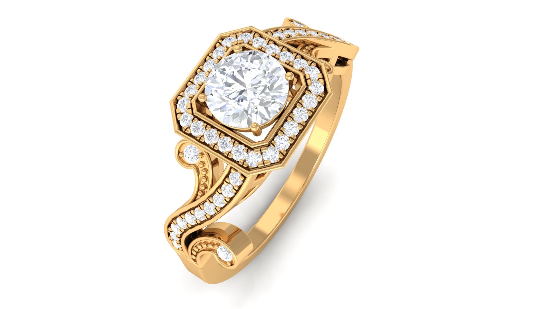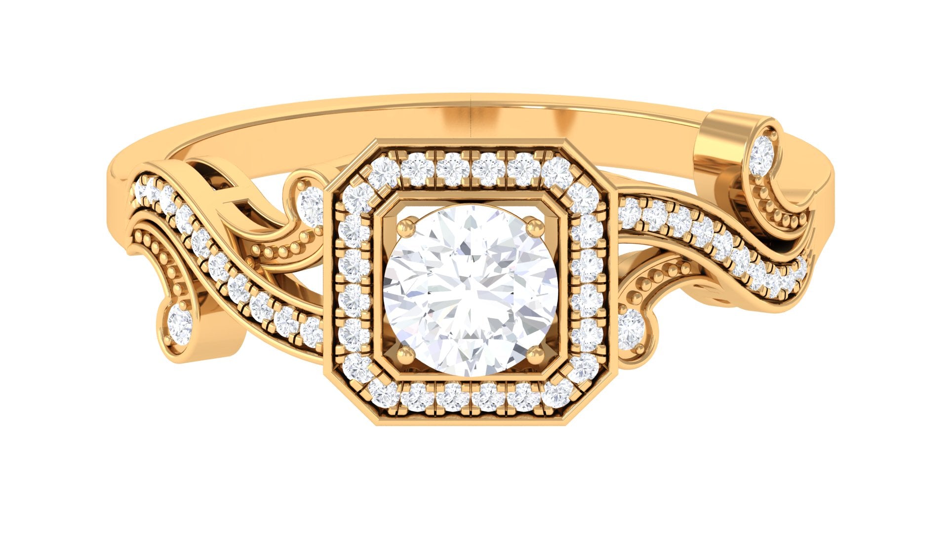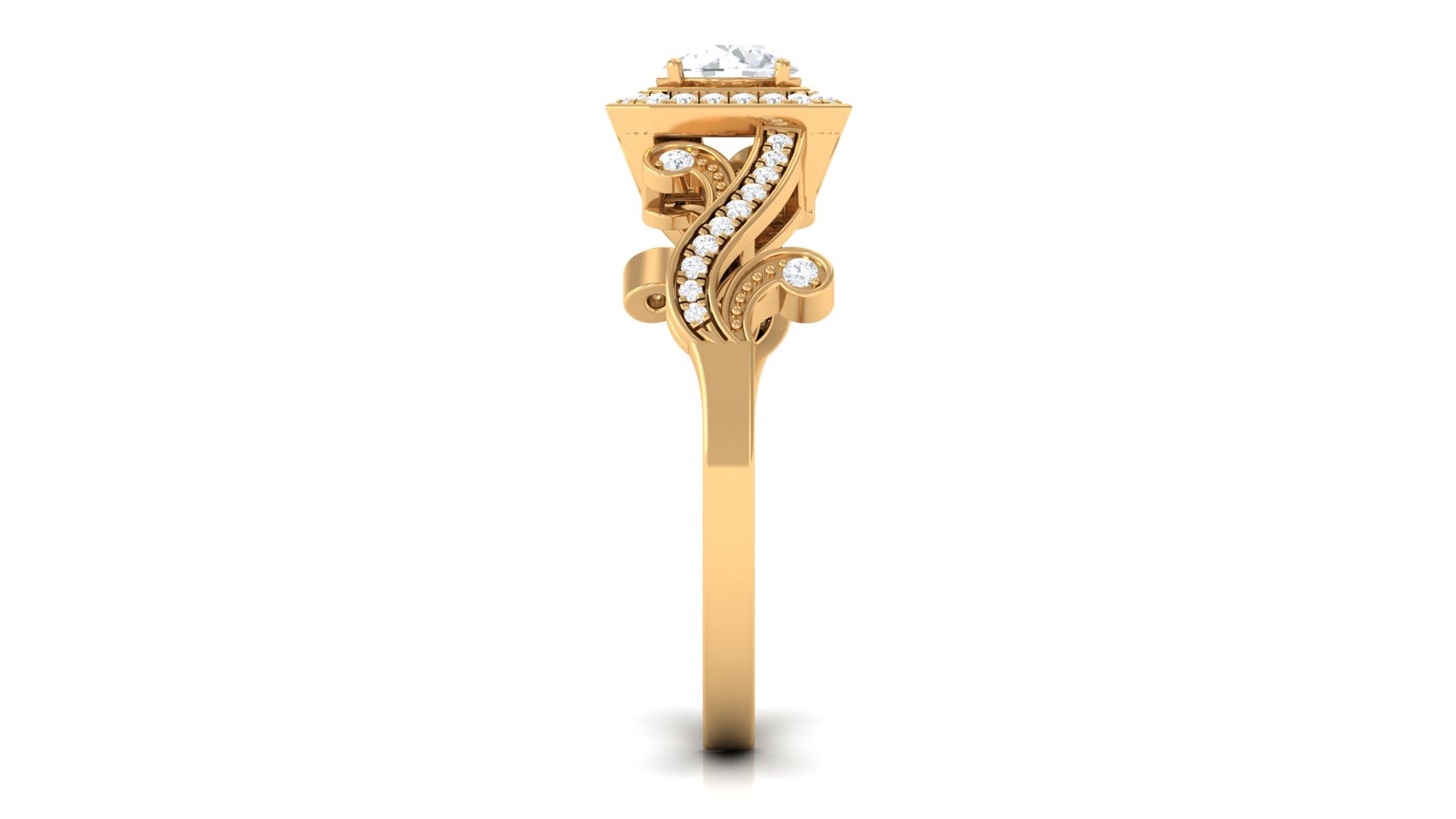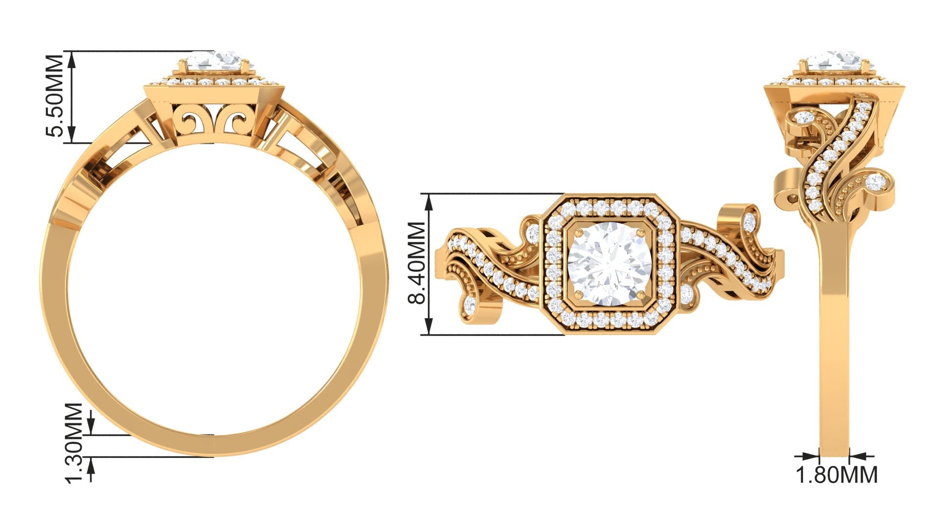 Tell her how much you adore her by surprising her with this dazzling Antique Engagement Ring on the special day. Features Round Cut Zircon in the center in Prong Setting along with Zircon Side Stones which enhance the beauty of the ring. Crafted with Solid Gold, this Zircon Engagement Ring will give her a heartwarming look.