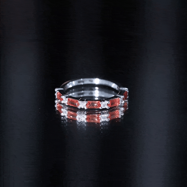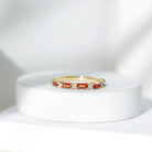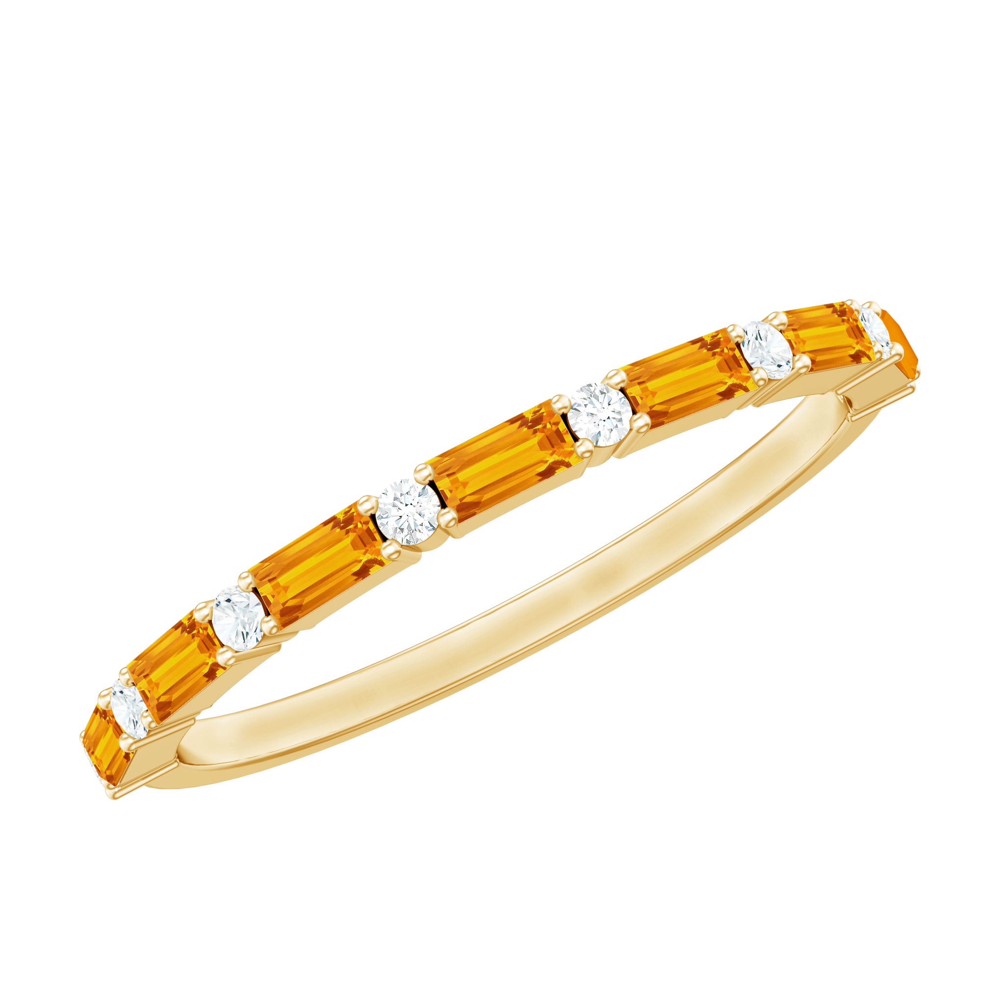 Gift your Mom this beautiful Eternity Stackable Ring on Mothers Day embellished with Baguette cut lab created Orange Sapphire and Round Diamonds are set on the Half Band in a Prong Setting. The sleek design makes it a versatile piece, ideal for stacking with other rings or wearing on its own as a statement of elegance. This Orange Sapphire Ring comes with a certificate of authenticity, a timeless choice for a wedding band, anniversary gift, or a special gesture of love, this sapphire and diamond ring will remain as enduring as the bond it represents.